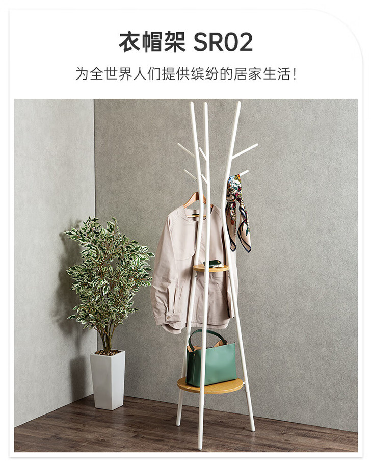 衣帽架 SR02 浅棕色白色 / 中棕色黑色