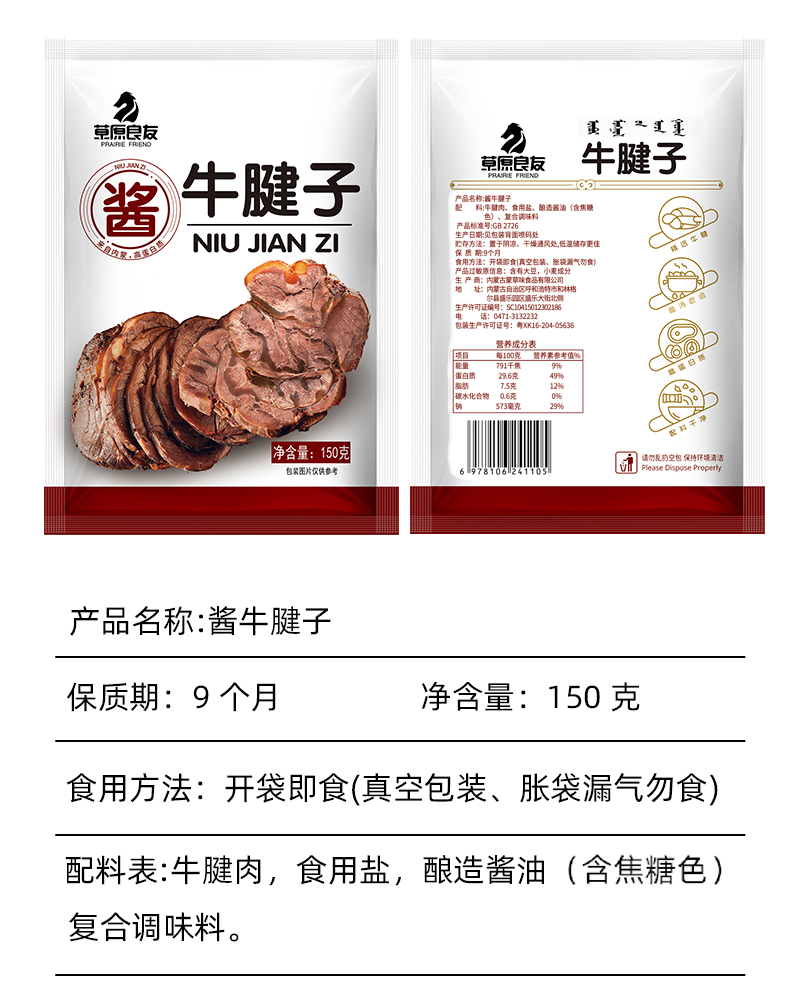 【精选牛腱】草原良友 酱牛腱 150g/包 配料干净