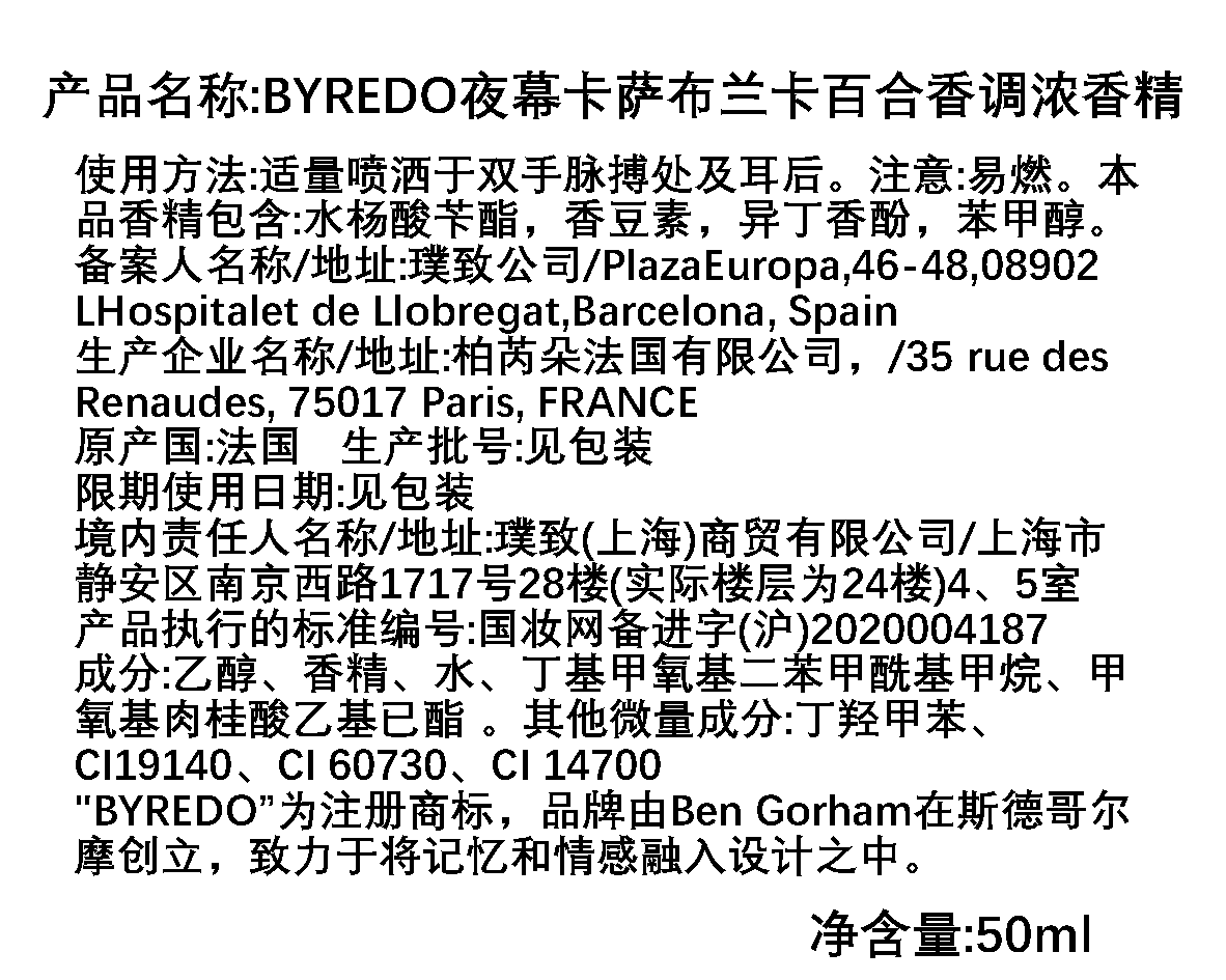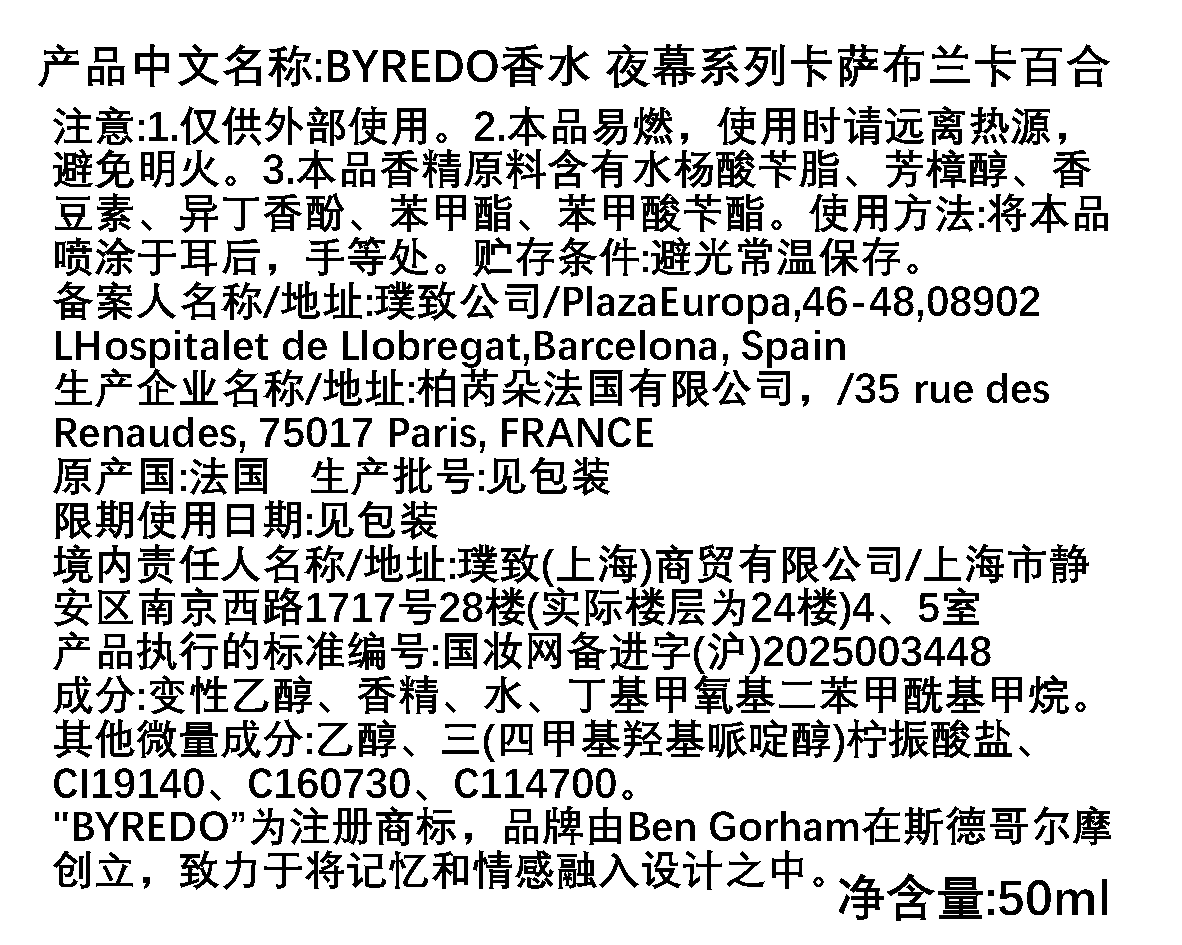 BYREDO百瑞德/柏芮朵 夜幕CASABLANC LILY/卡萨布兰卡百合香水