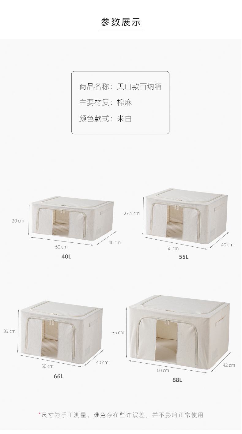 【66L 1个/2个/5个可选】娜家优质天山棉麻百纳箱