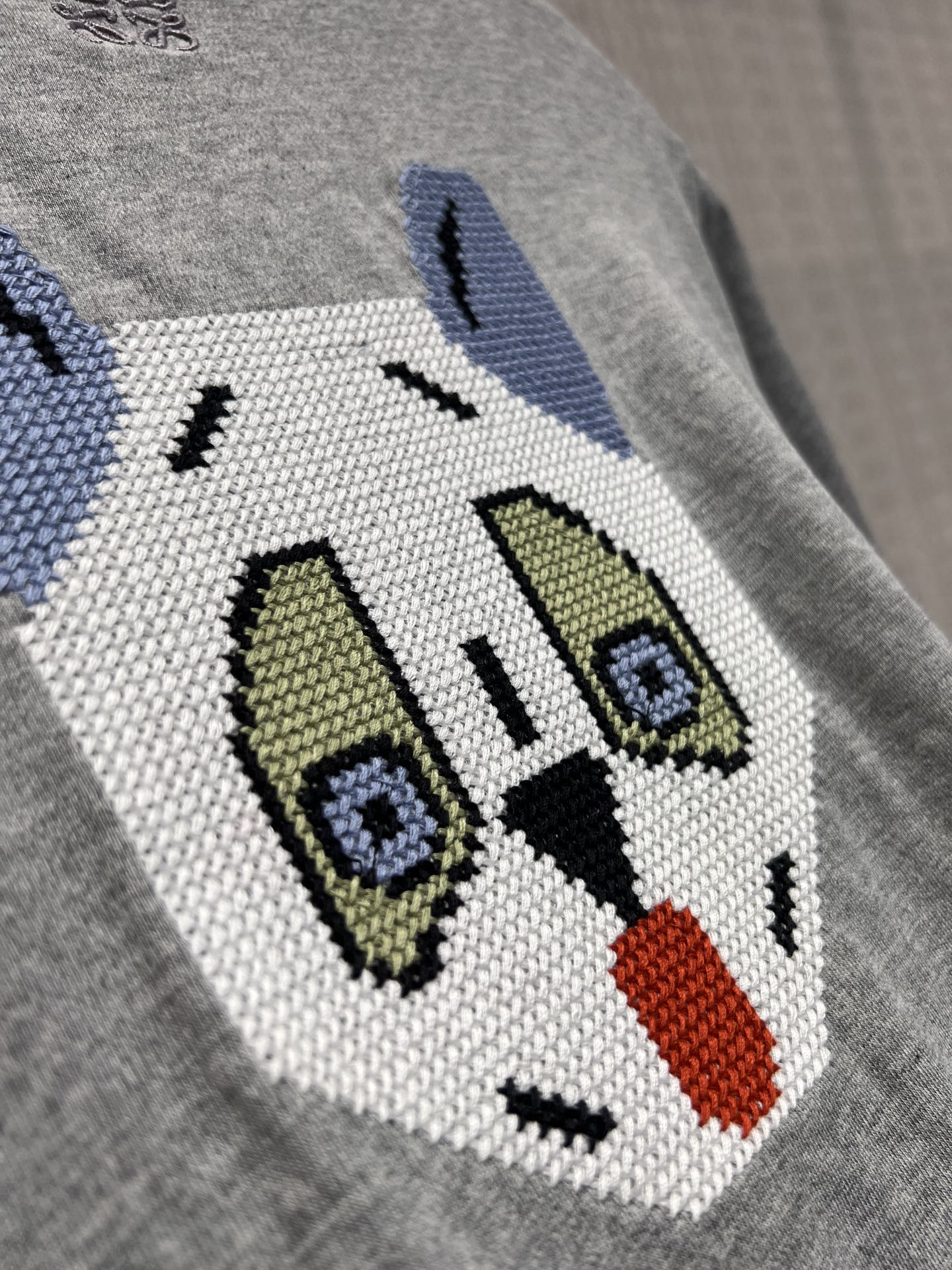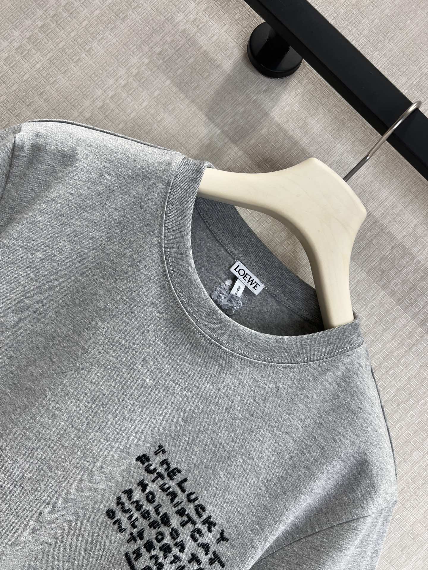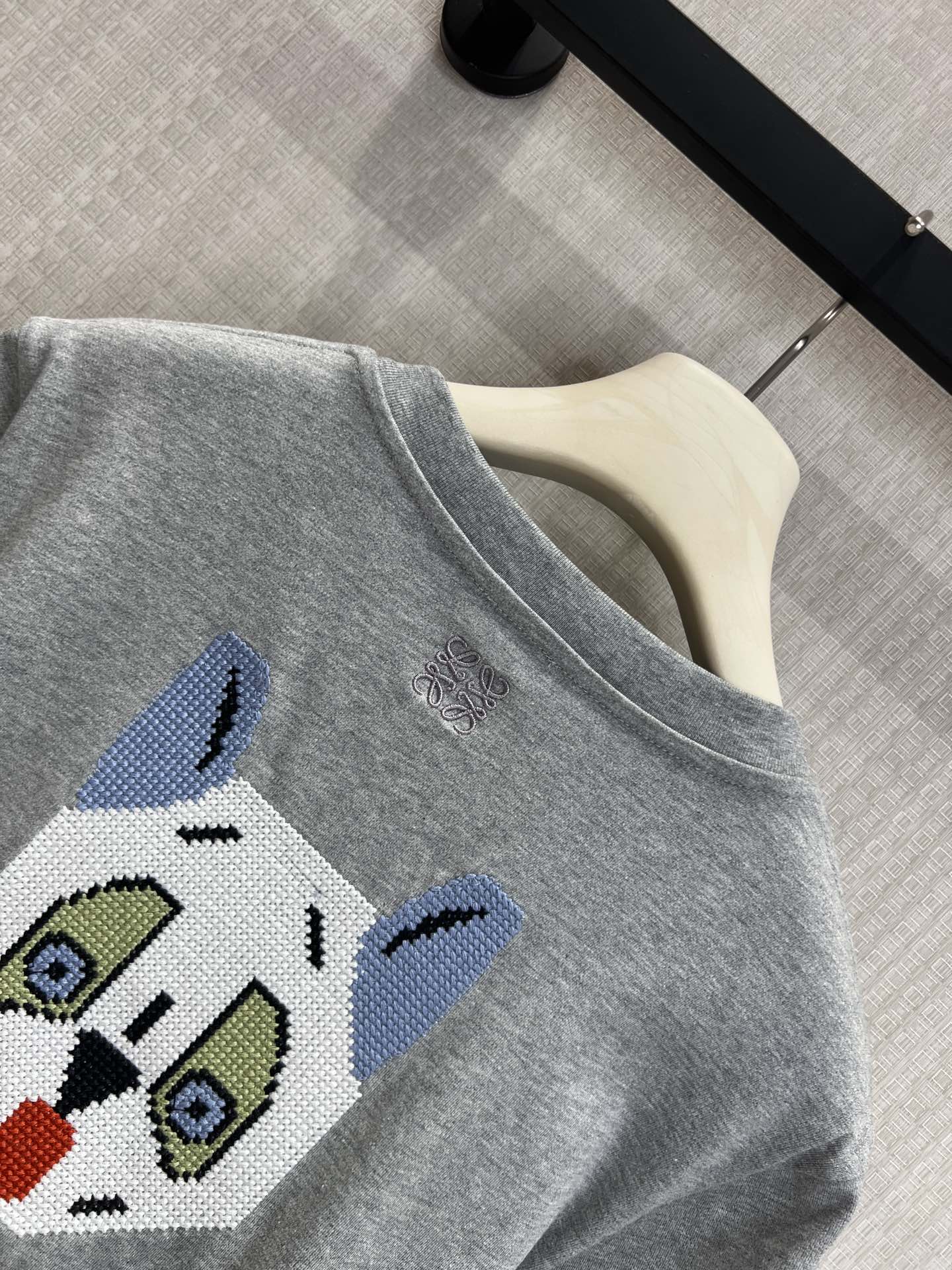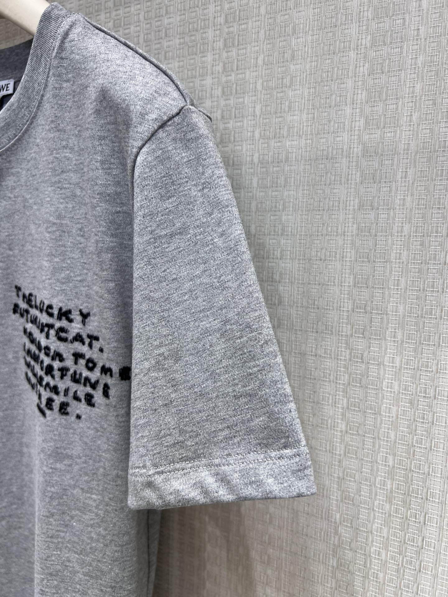 Loe* x Louis Wain联名新款 刺绣猫咪灰调短袖T恤丨⚠独家yb开发!顶级高版出品!版型是不挑人的微宽松款,软乎乎的棉质面料贴肤又透气,正面是手写体英文字母刺绣,随性又有细节;后背的像素风猫咪刺绣是灵魂亮点——Louis Wain标志性的萌系猫脸,用细密绣线拼出复古像素感,蓝耳+圆眼+红舌的配色鲜活灵动,自带吸睛属性~现货发售S/M/L