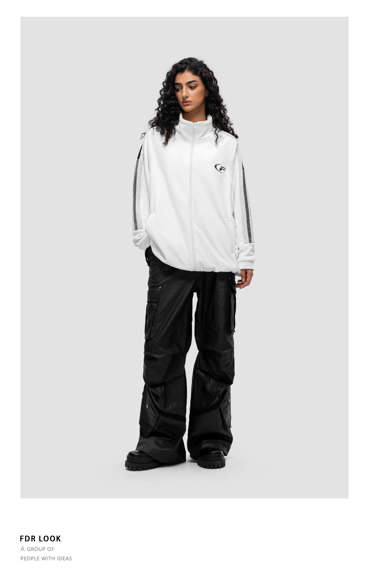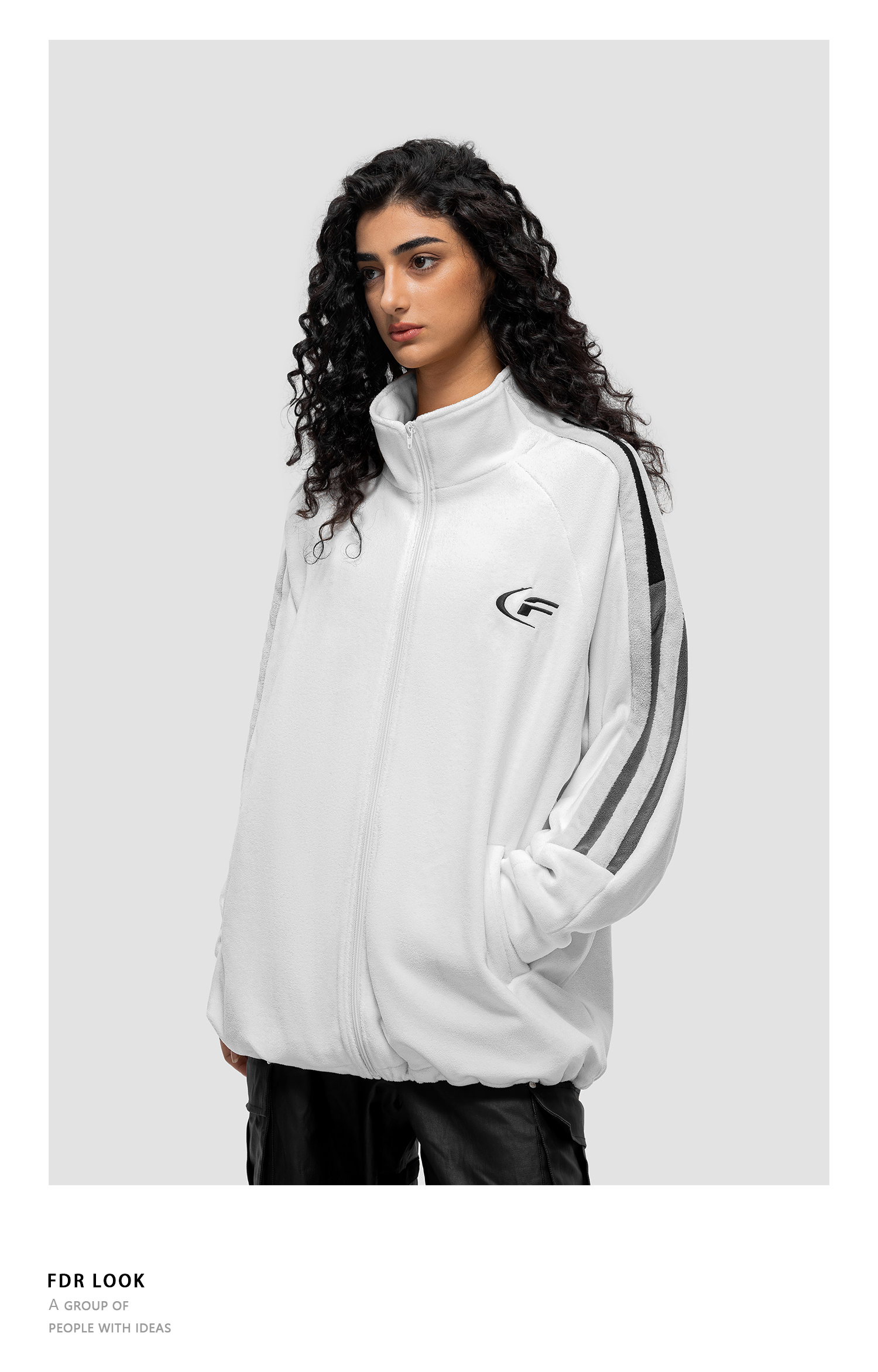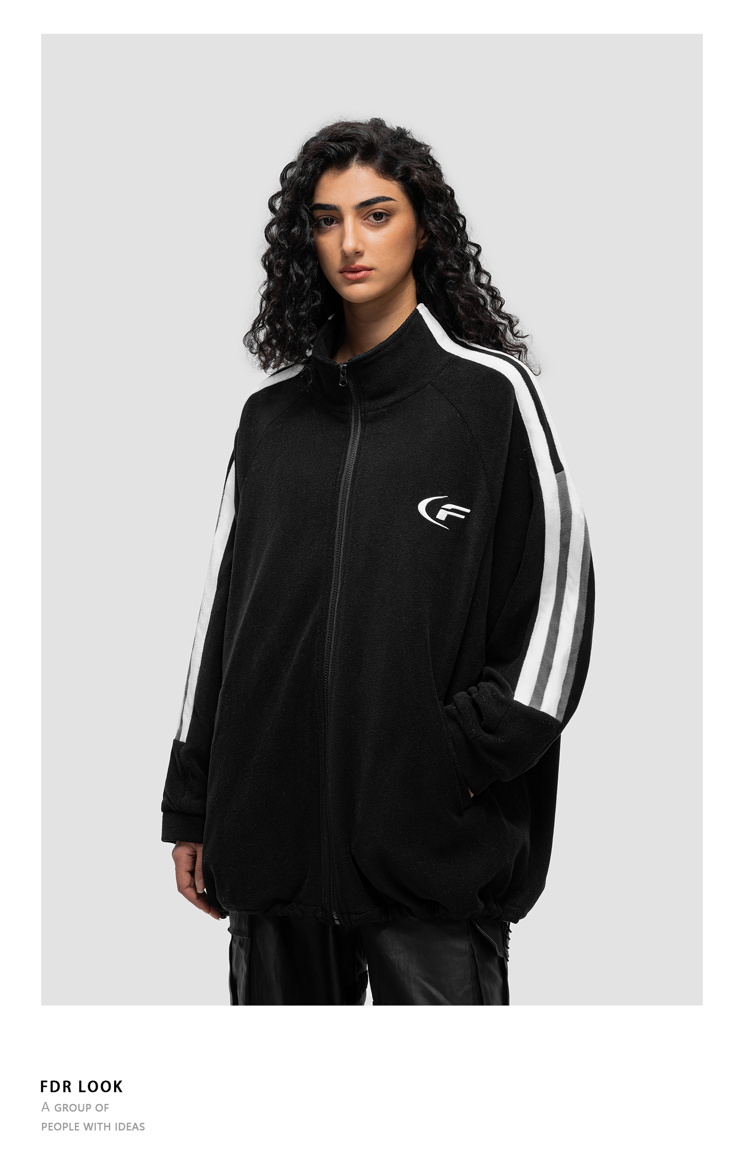 FDR官方店 斜拉链短款翻领夹克外套男女秋季潮牌情侣宽松休闲上衣
