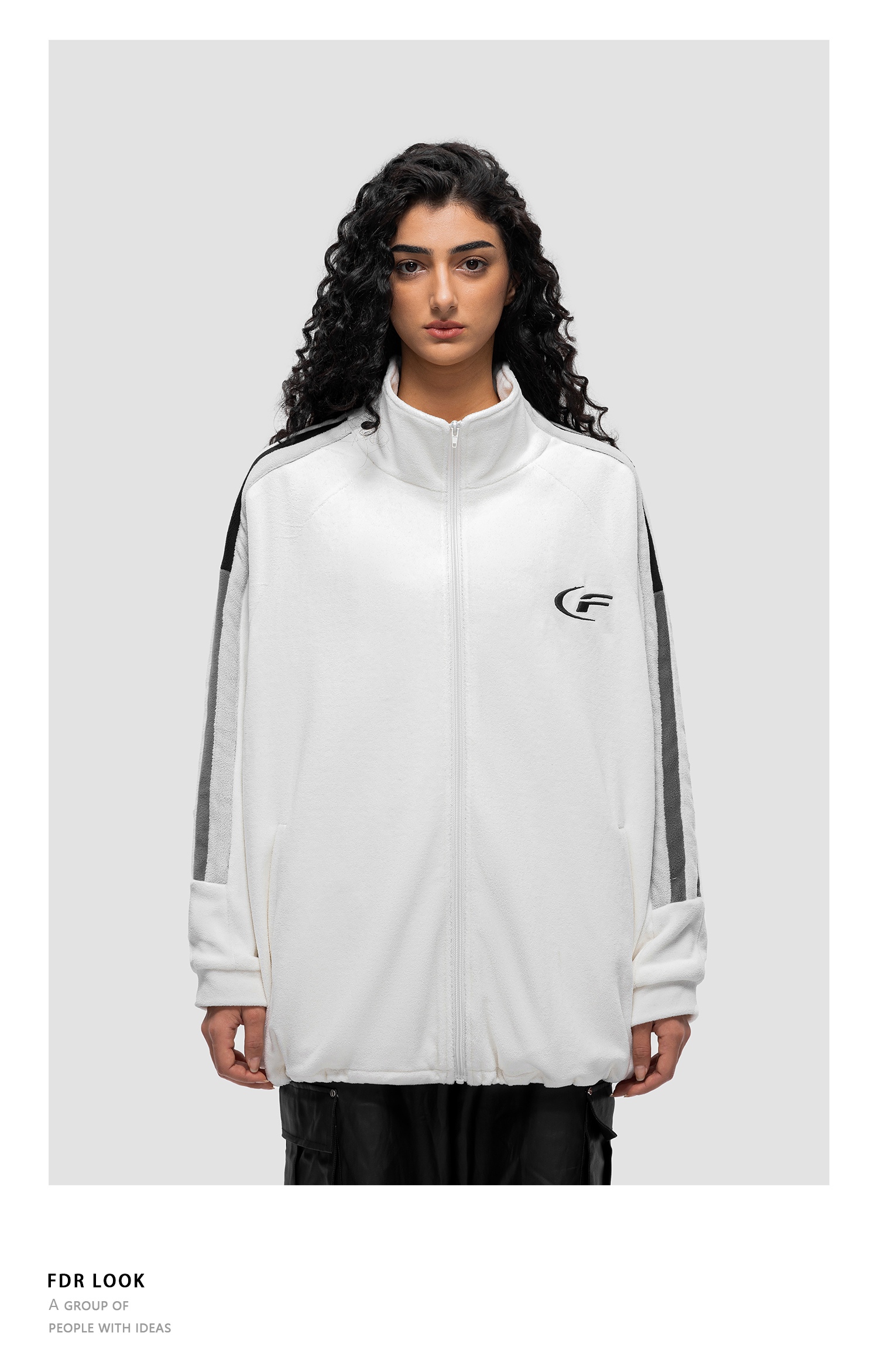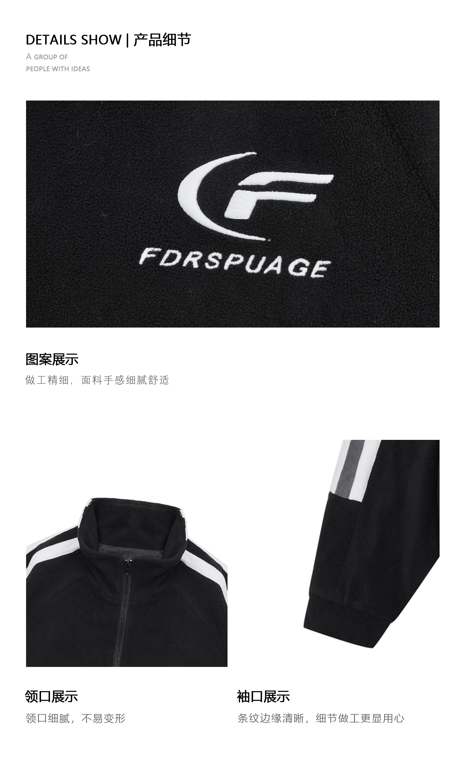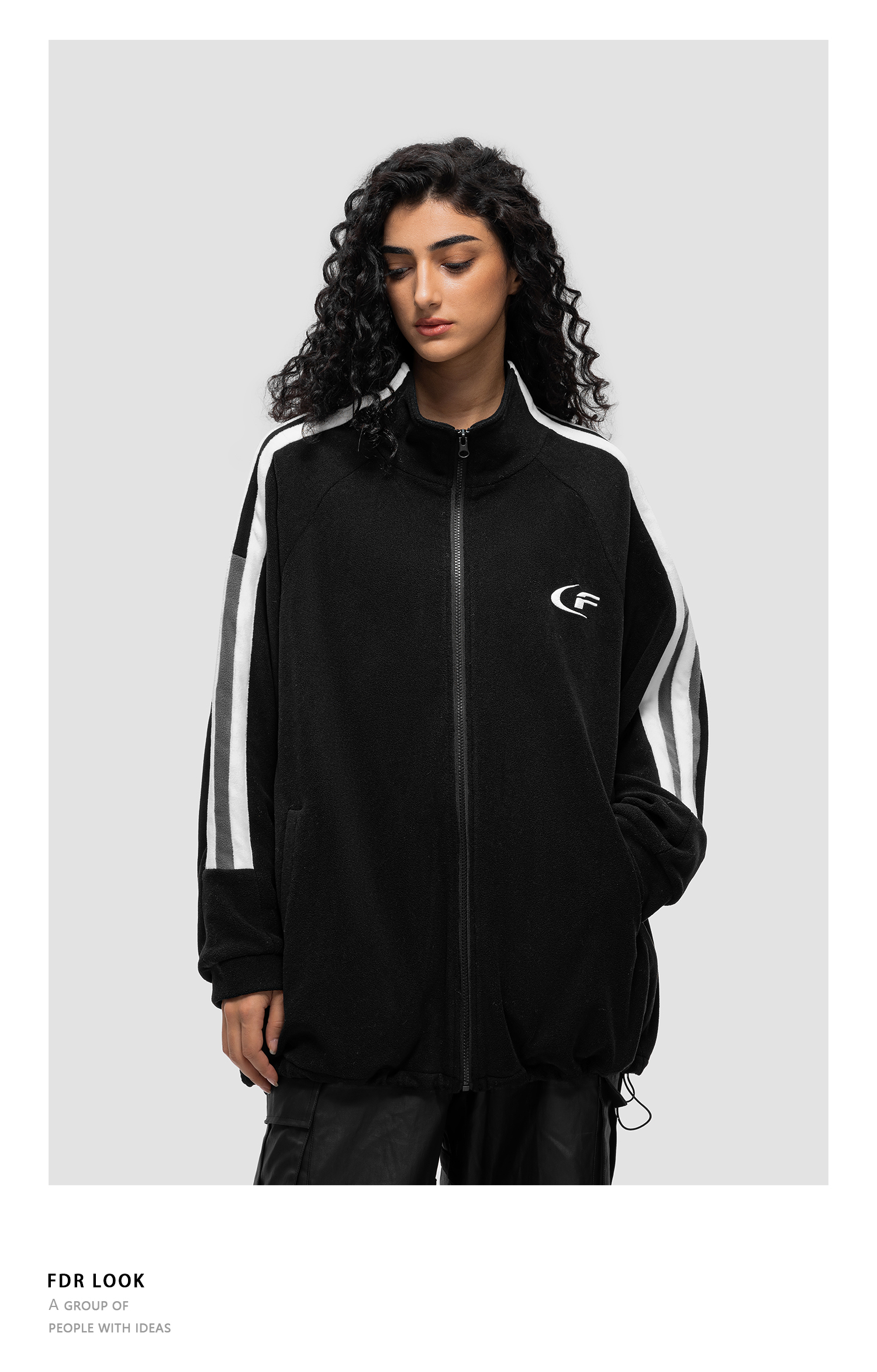 FDR 国潮条纹摇粒绒夹克外套男女秋冬季加厚美式情侣上衣棉衣棉服