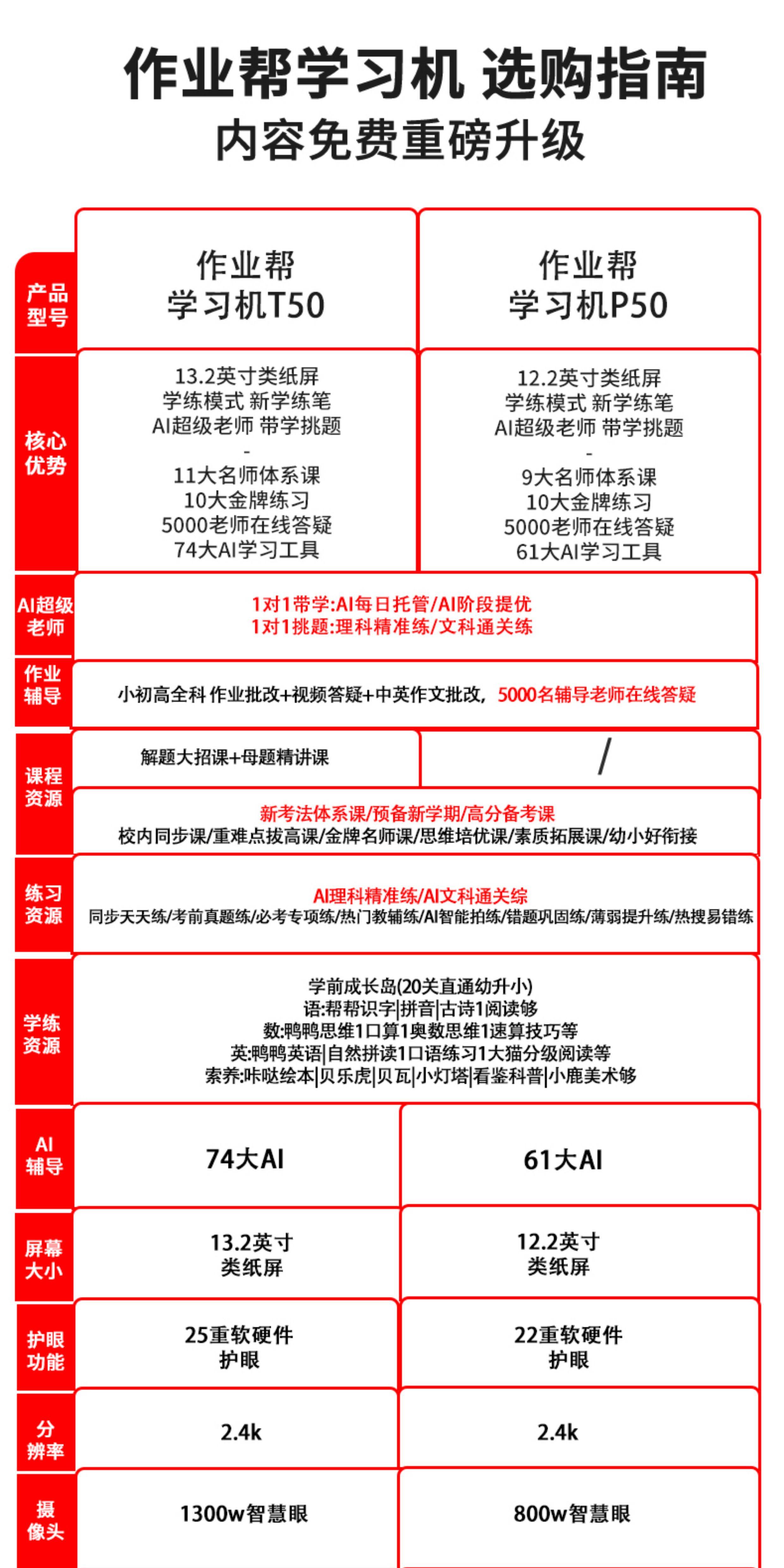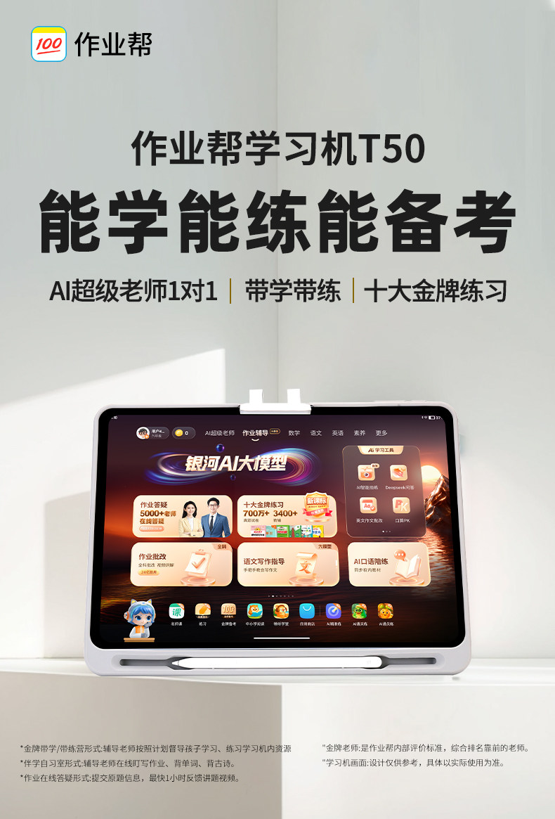 【下单请填写真实姓名和准确收货地址】作业帮AI学习机T50 学练一体机小学初高中通用儿童早教机专用 该产品不支持七天无理由 赠品:保护套+笔+支架