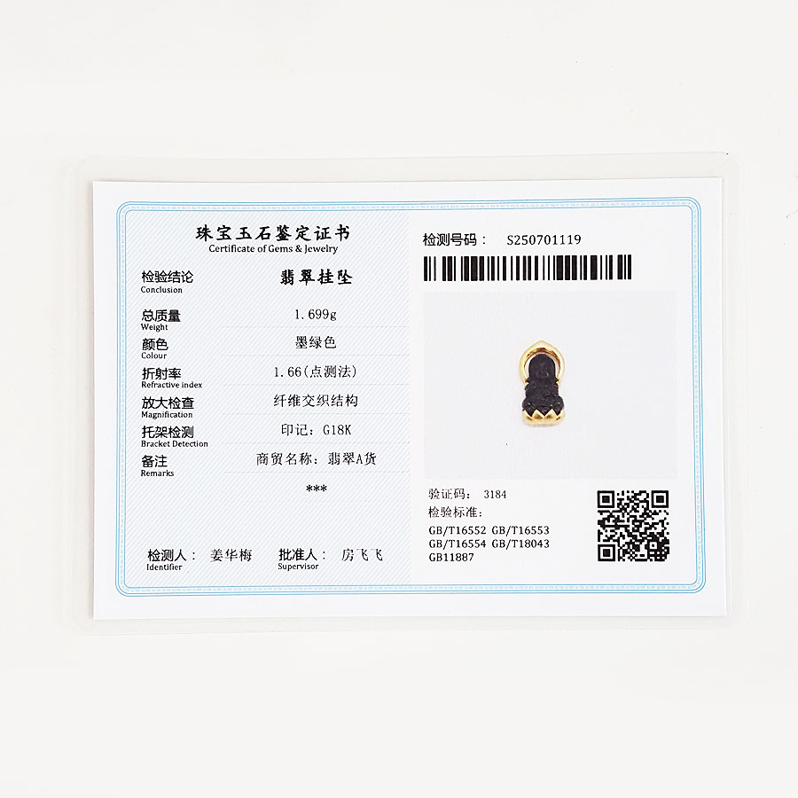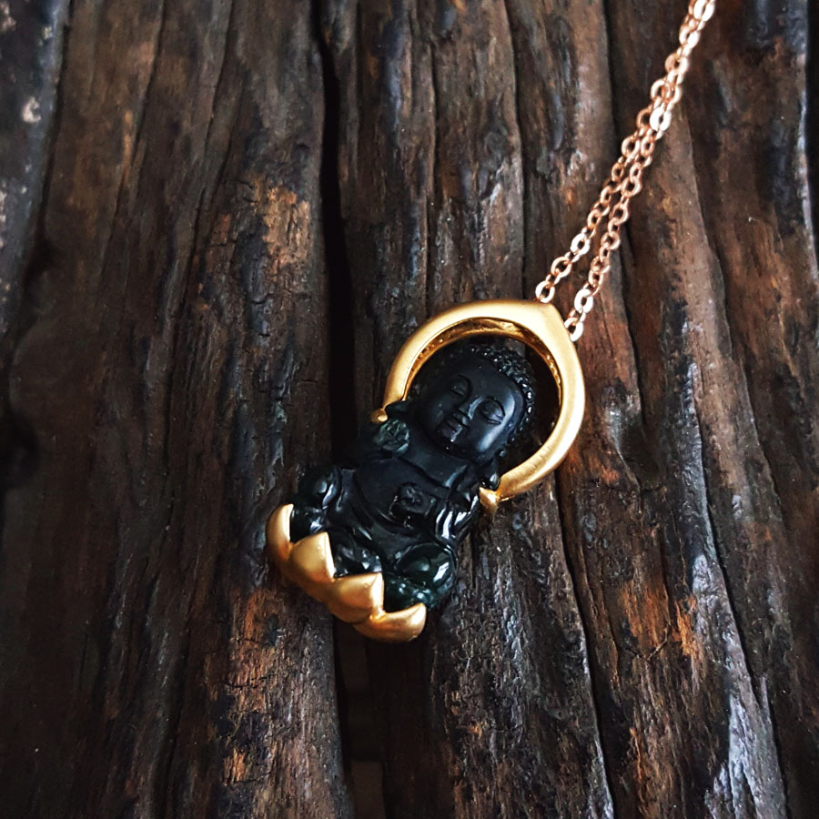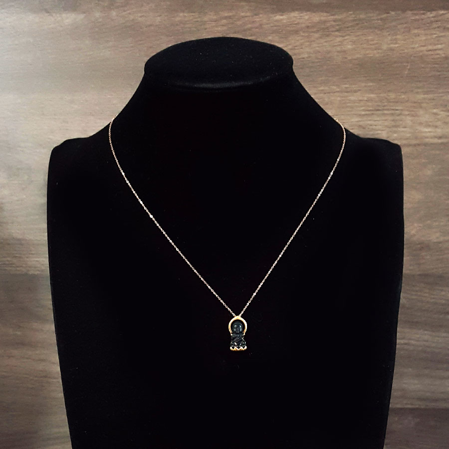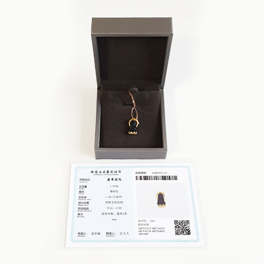 【天然正品】A货翡翠AU750黄金镶天然细腻冰种宝宝佛墨翠吊坠项链19.2*10.0*4.7MM(戒圈可改)链长:45CM(长度可调节)300126NJM04