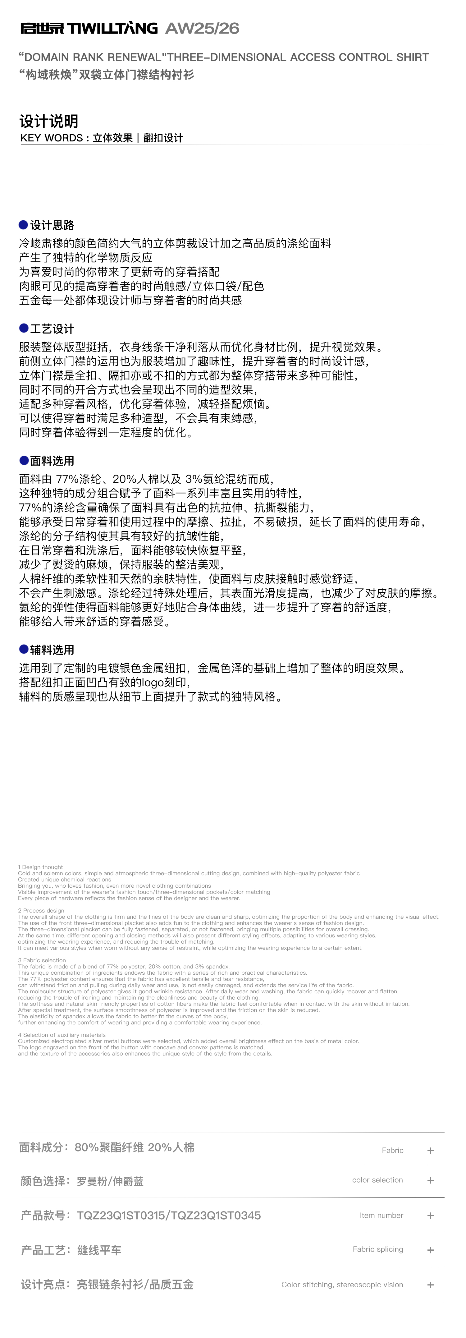 启世录TIWILLTANG“境异拟象”抗皱透气异形长袖衬衫套装