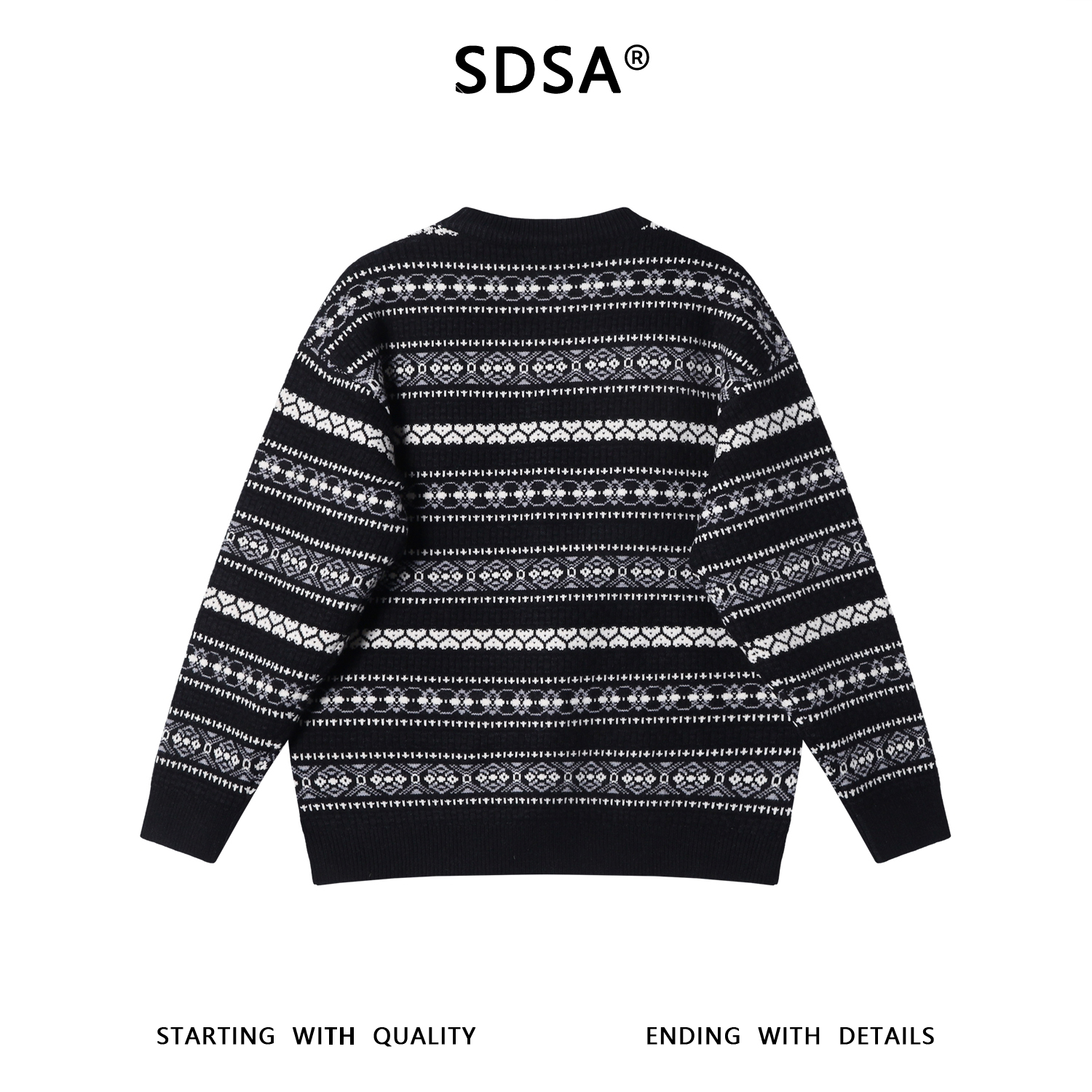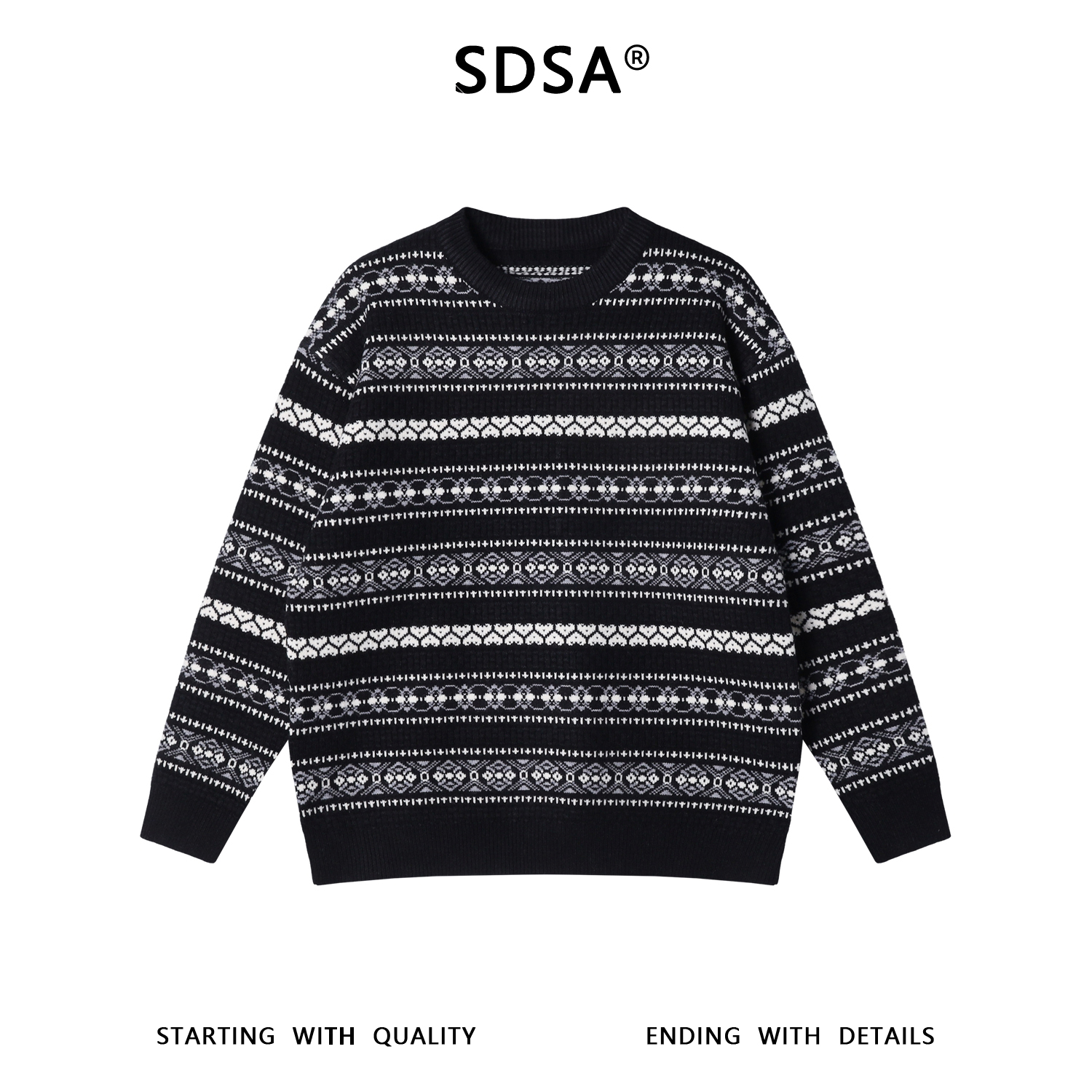 88088SDSA男士秋冬新款痞帅男装潮牌撞色提花条纹圆领毛衣宽松百搭上衣