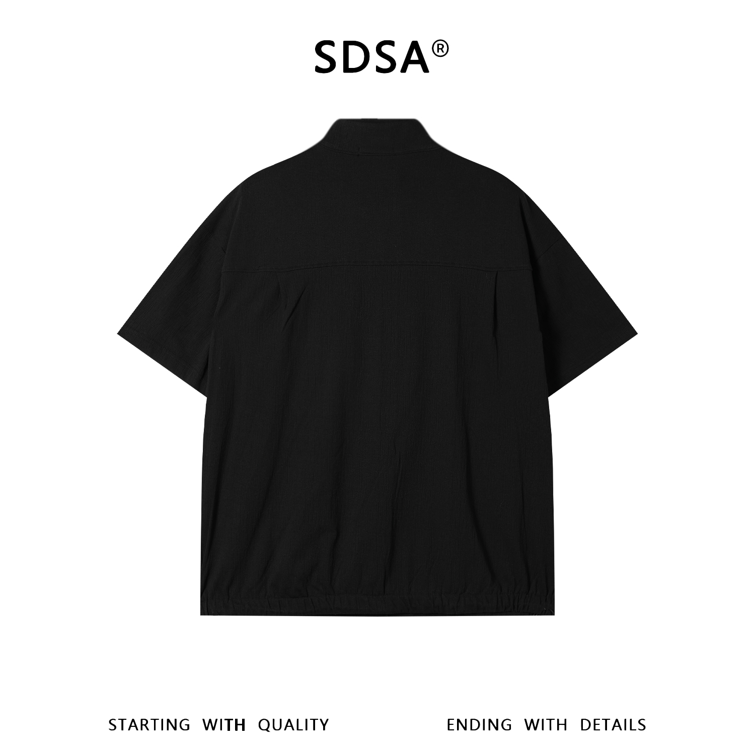 SDSA男装2026新款轻奢韩版半拉链立领短袖T恤百搭下摆松紧设计