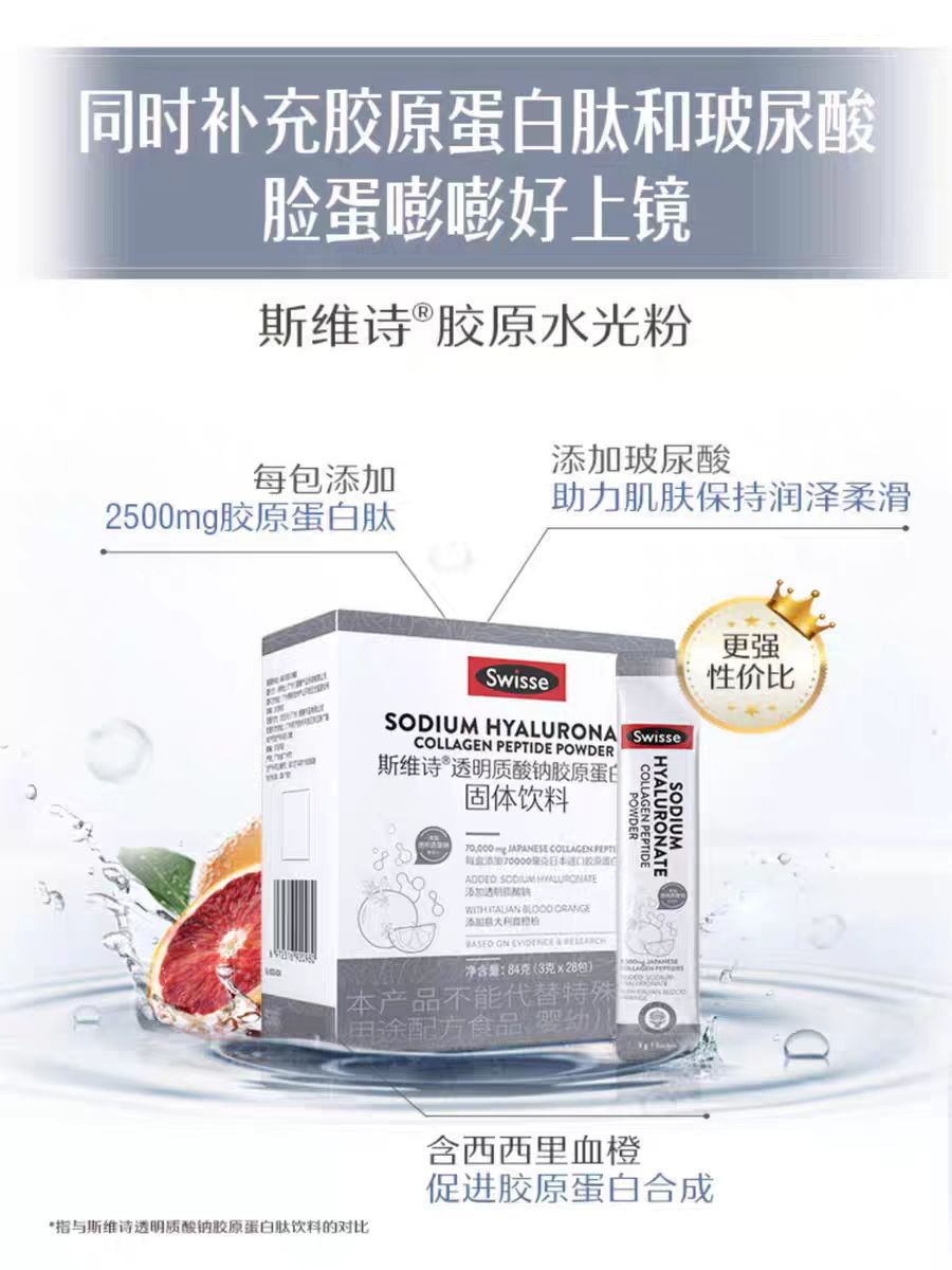Swisse斯维诗透明质酸钠胶原蛋白肽水光粉28袋 含 一盒装