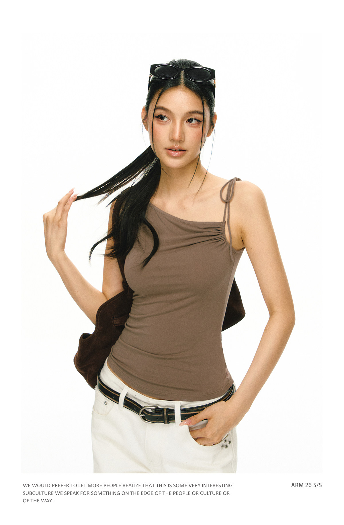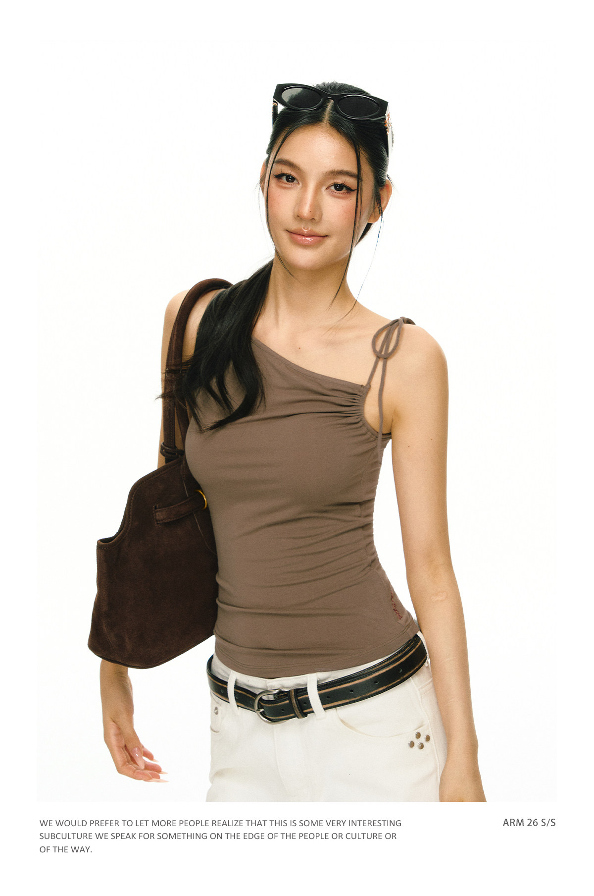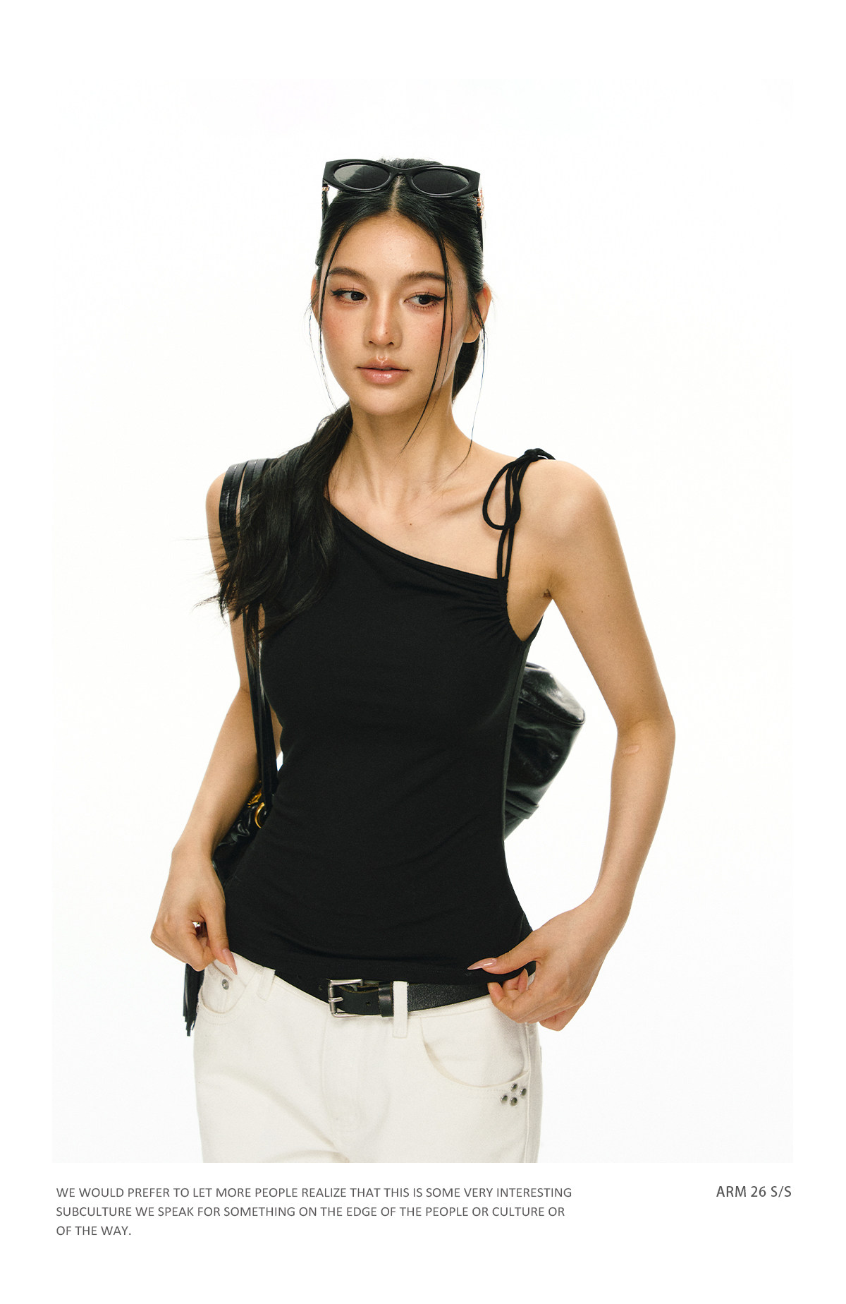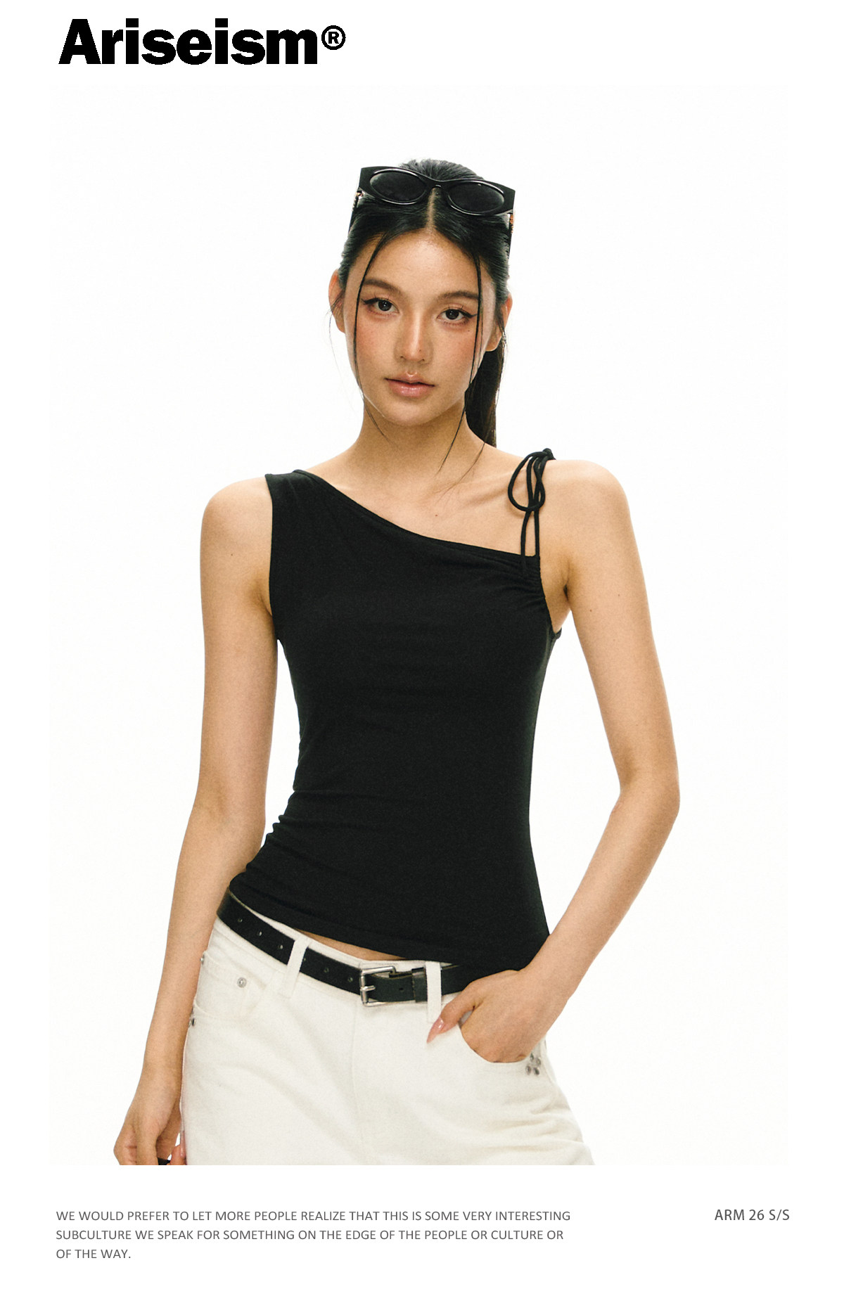 Ariseism 美式复古斜肩绑带吊带女夏季新款外穿上衣