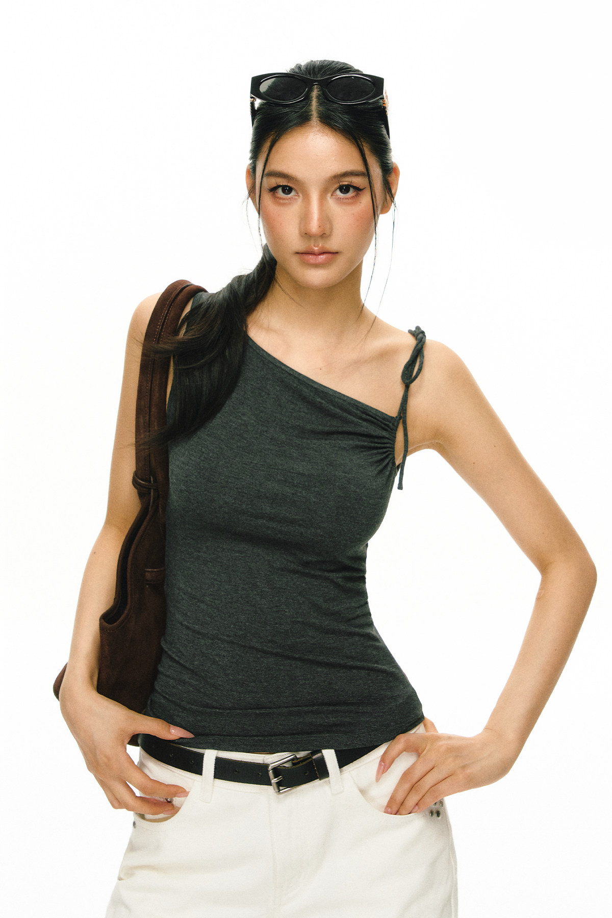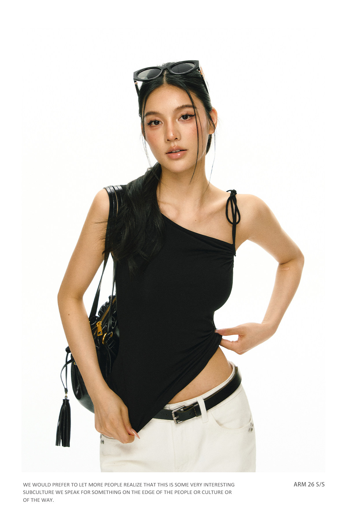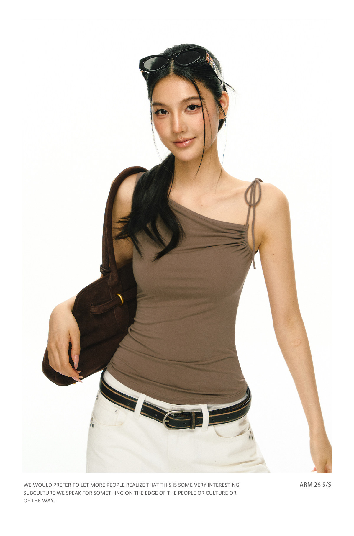 Ariseism 美式复古斜肩绑带吊带女夏季新款外穿上衣