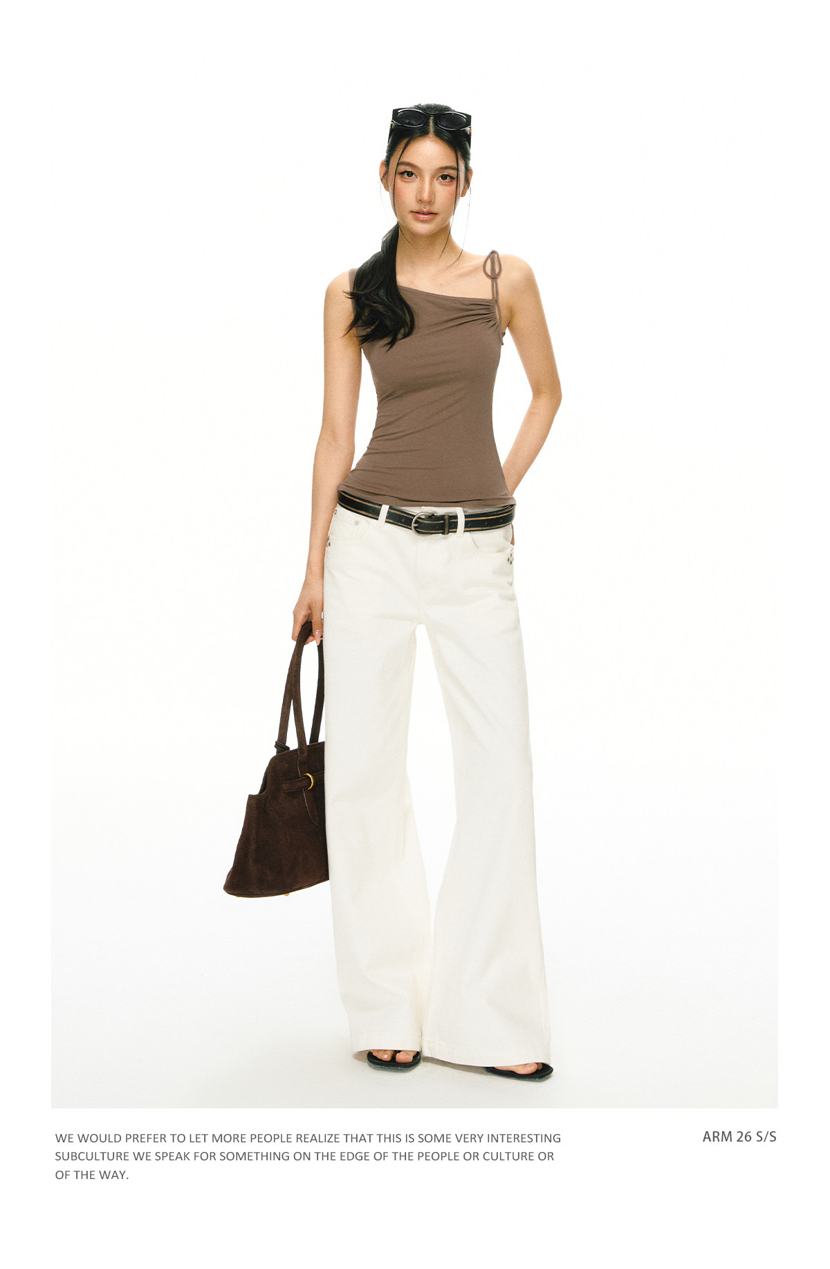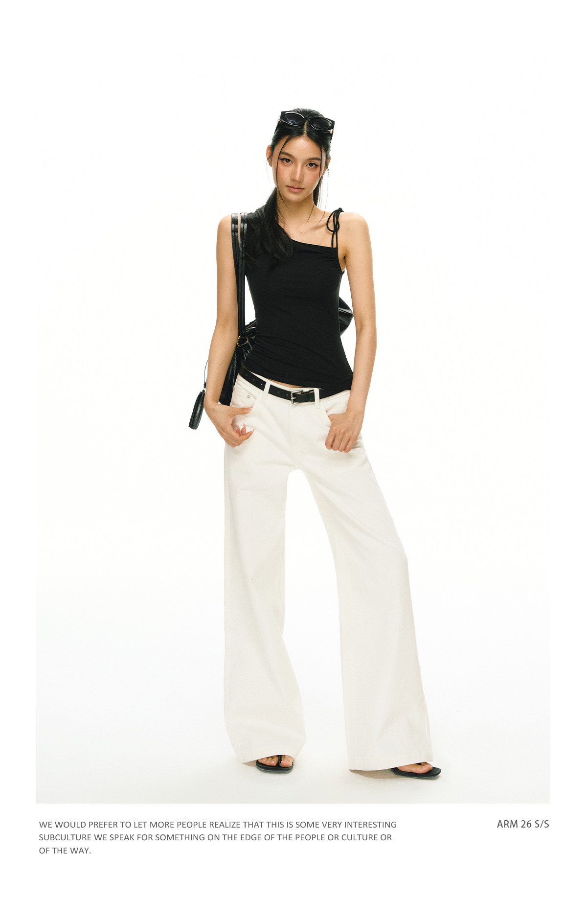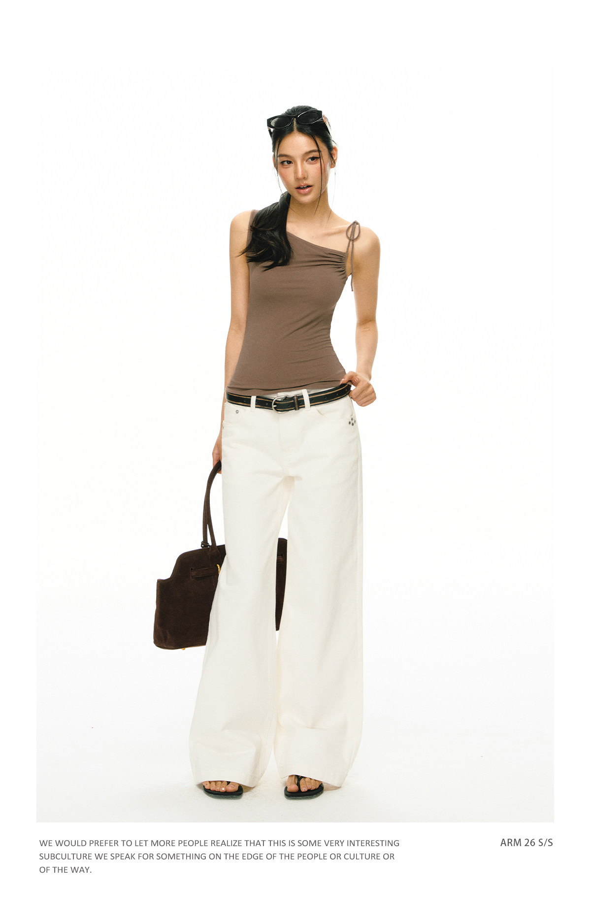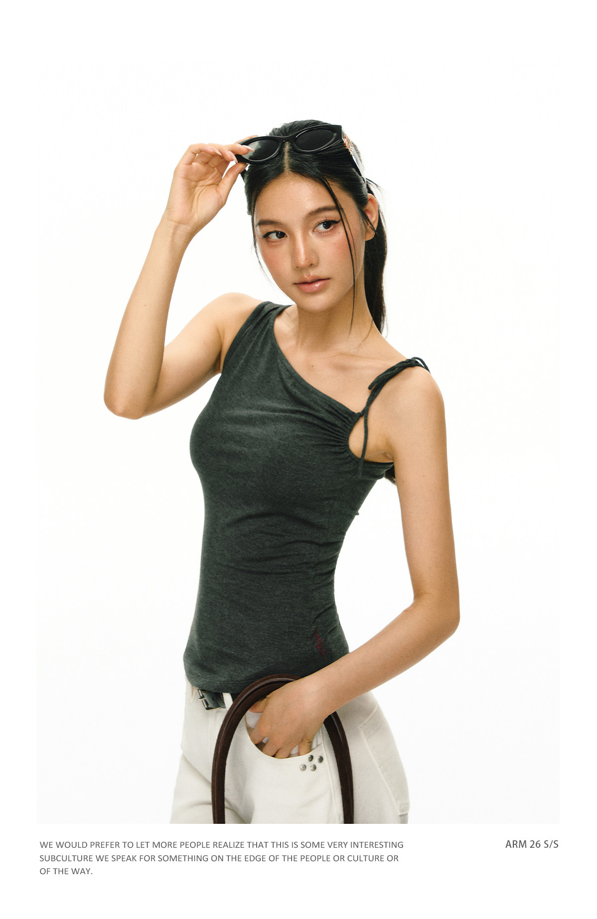 Ariseism 美式复古斜肩绑带吊带女夏季新款外穿上衣