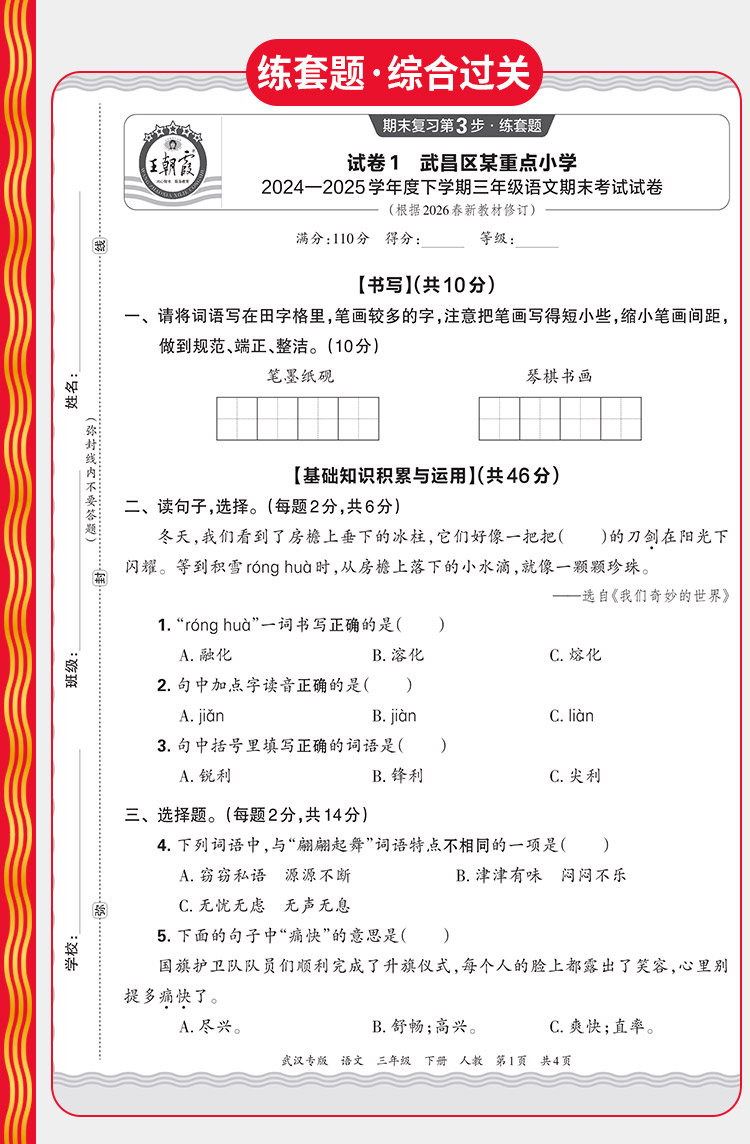 【武汉专版】2026下册新品王朝霞武汉期末真题精编小学1-6年级语数英武汉专版