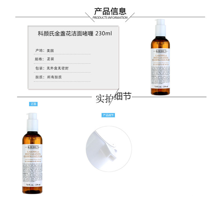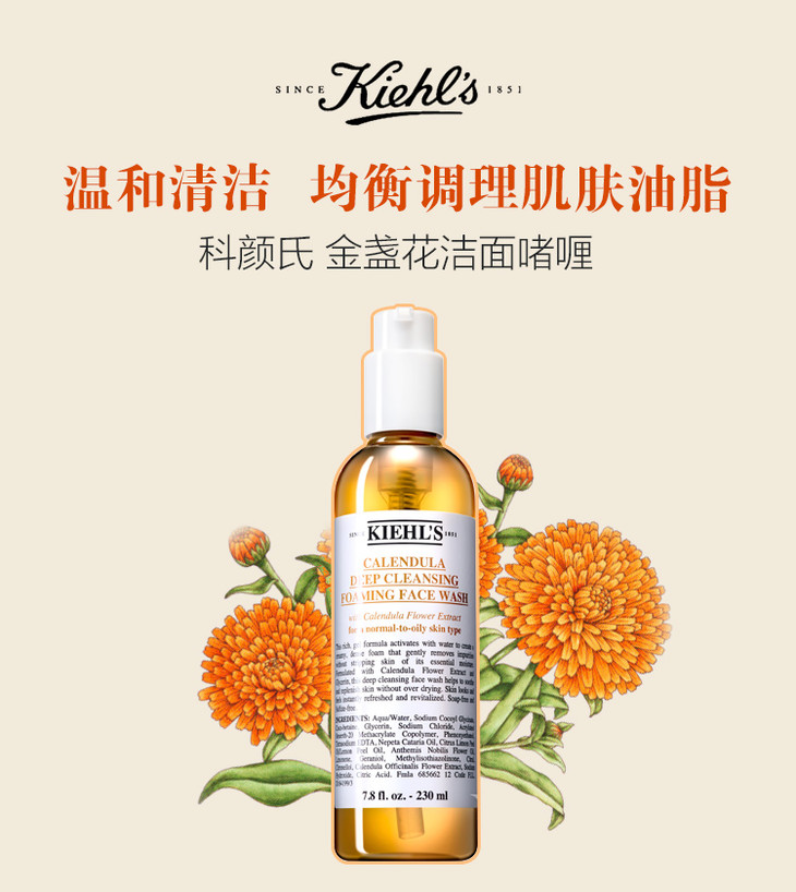Kiehl's科颜氏金盏花深层洁面泡沫230ml