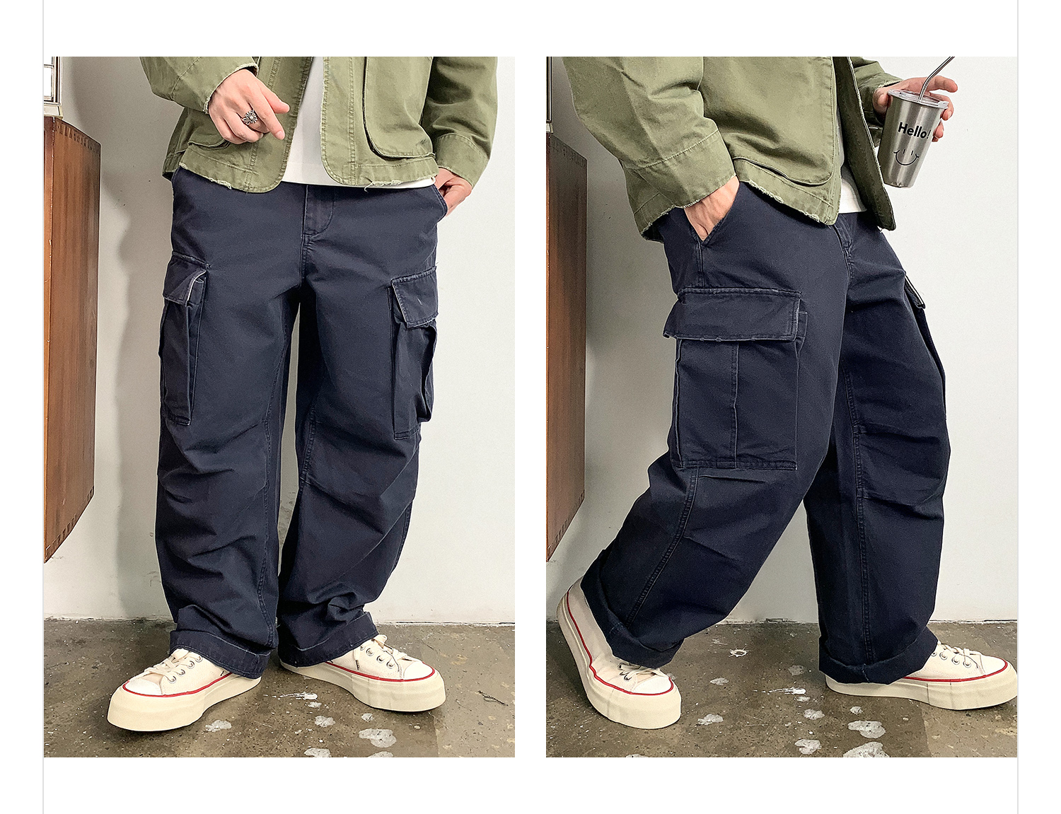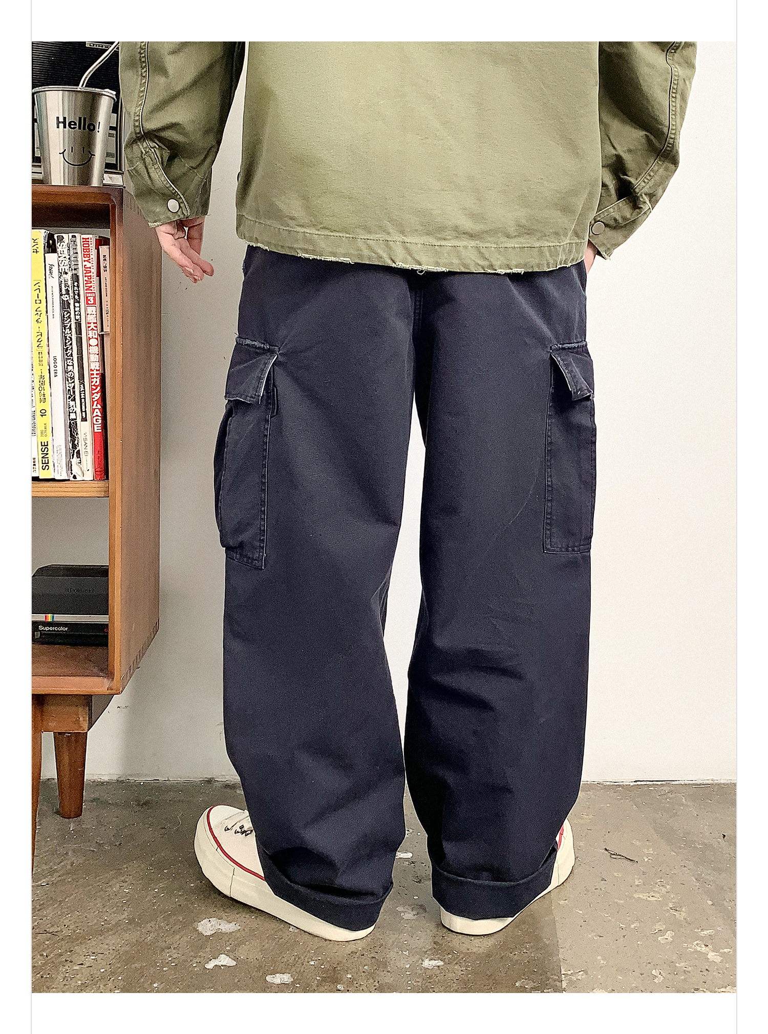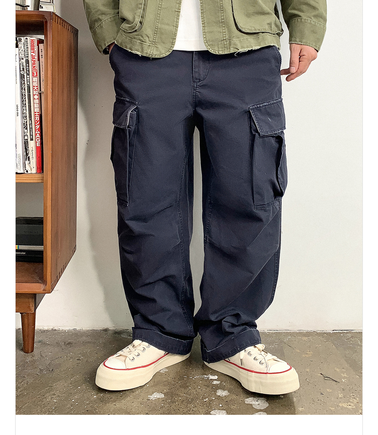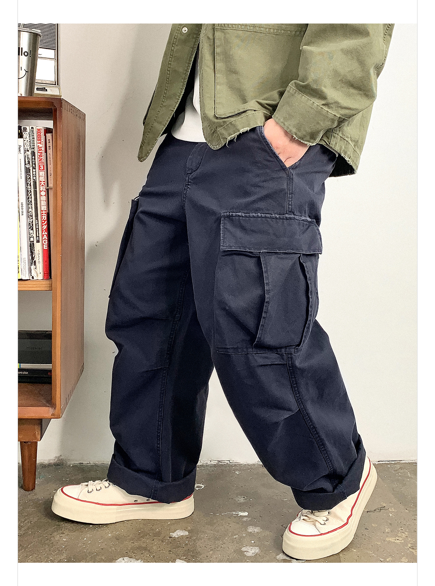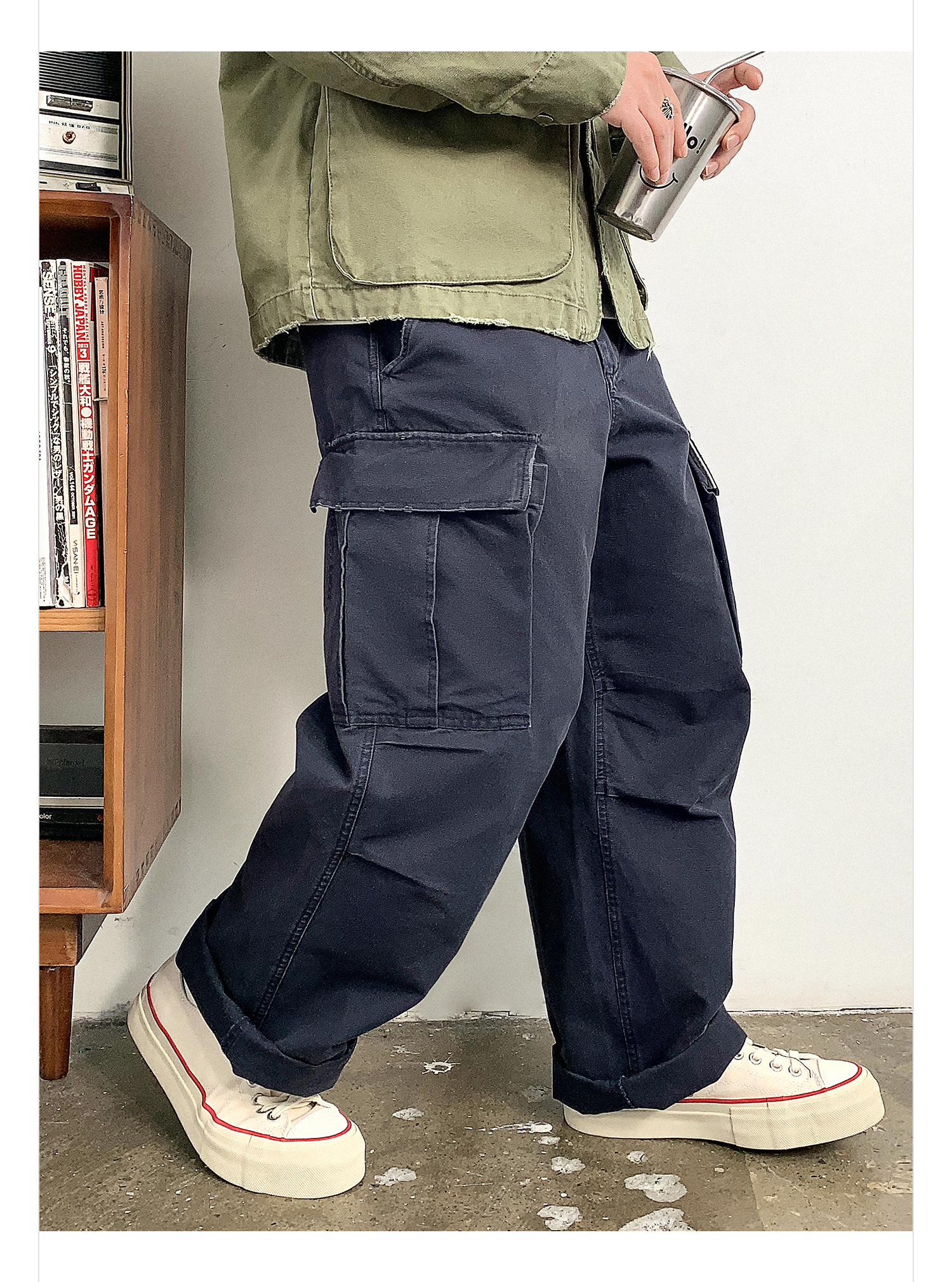 徐太浪缉明线拼接口袋工装裤男秋冬纯棉宽松直筒休闲裤灰蓝色长裤