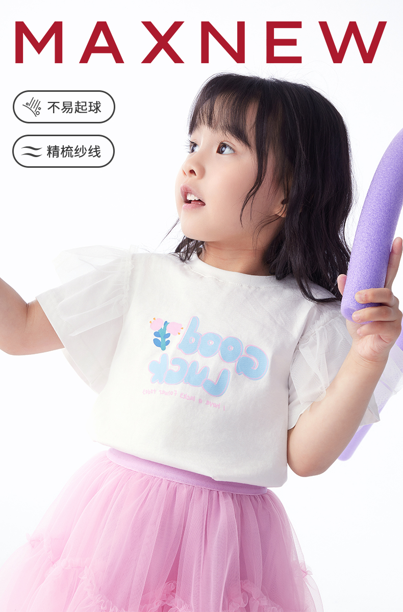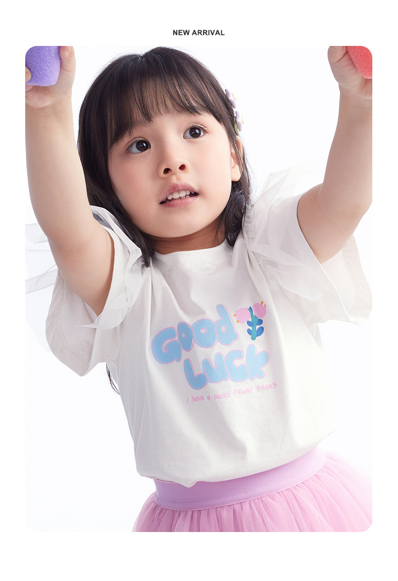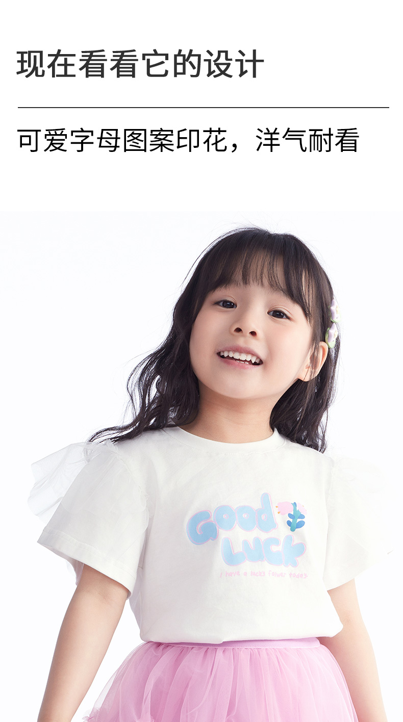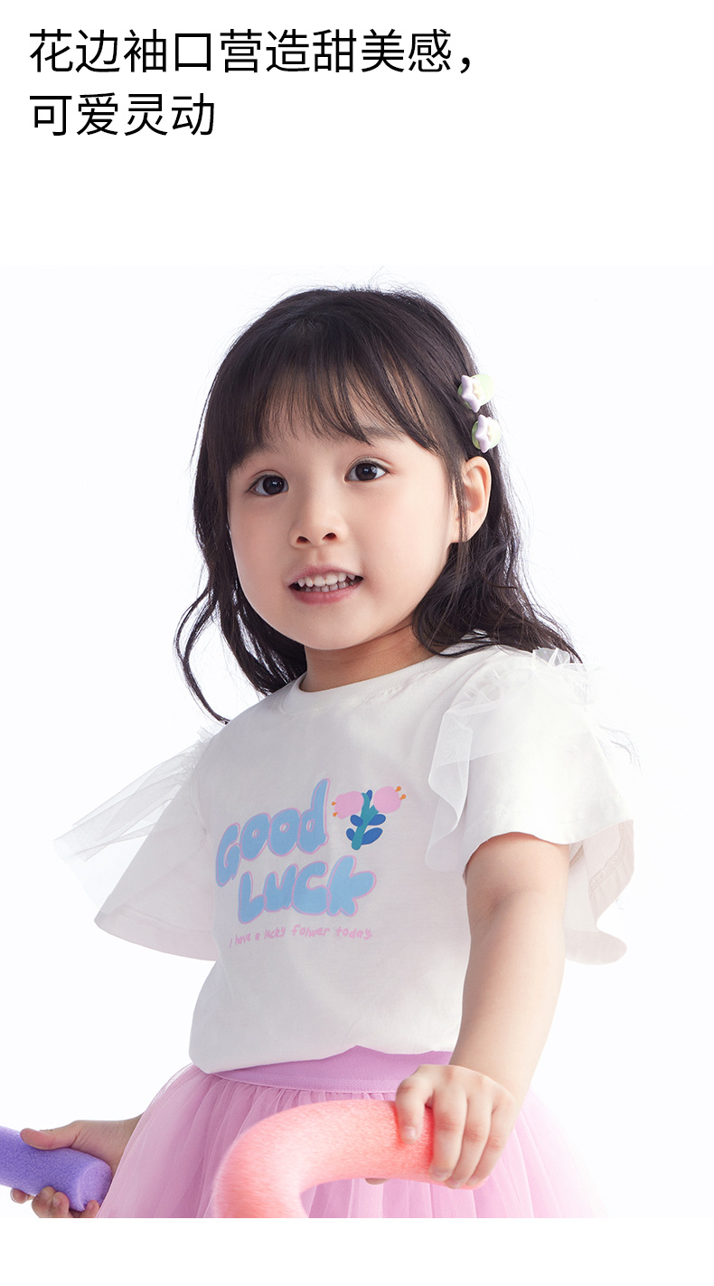 【T恤】 小童舒爽亲肤云感棉花边袖可爱印花T恤 1N2351206