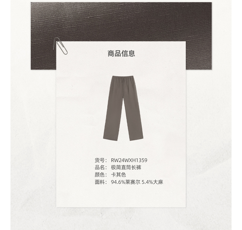 ROMI STUDIO“轻松随性”莱赛尔混纺高腰系带直筒休闲裤RW24WXH1359