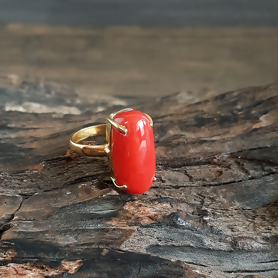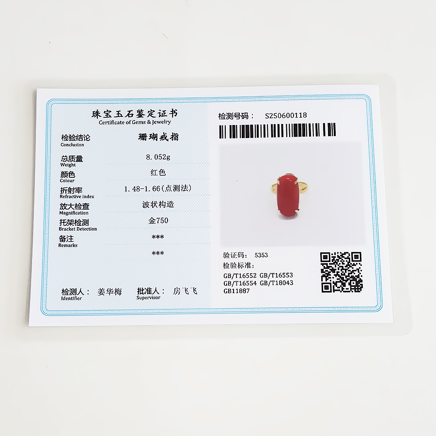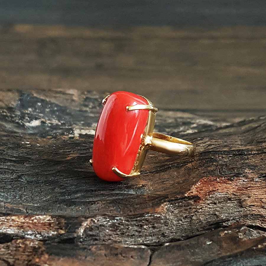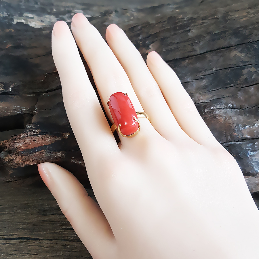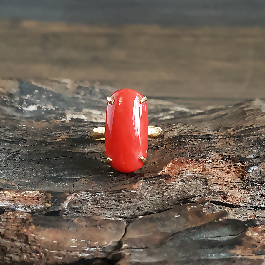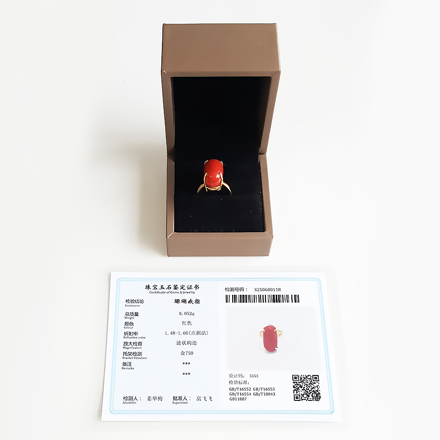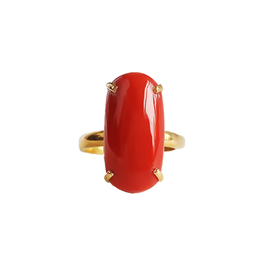 名称 | AU750黄金镶天然沙丁红珊瑚戒指 |