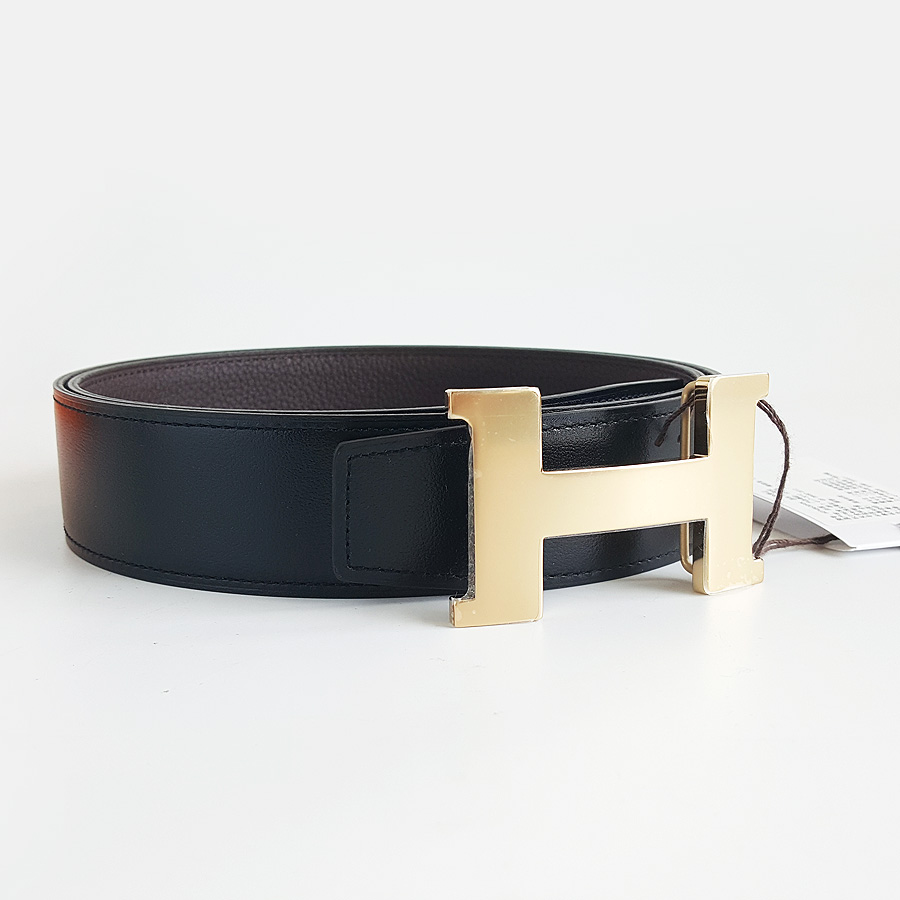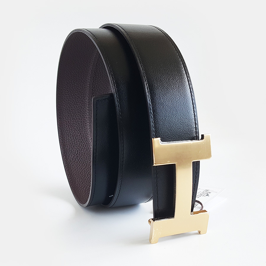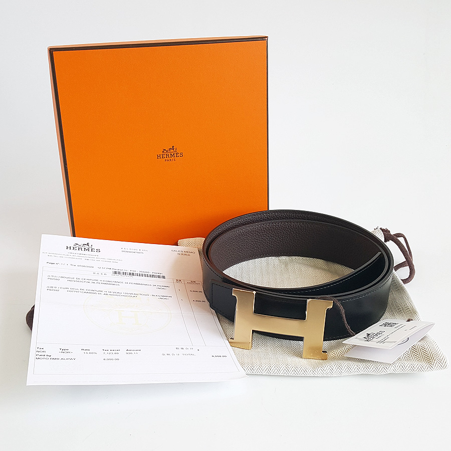 【全新】Hermes爱马仕全新黑棕拼色Constance康康H金扣3.8厘米双面腰带 170724NJS24