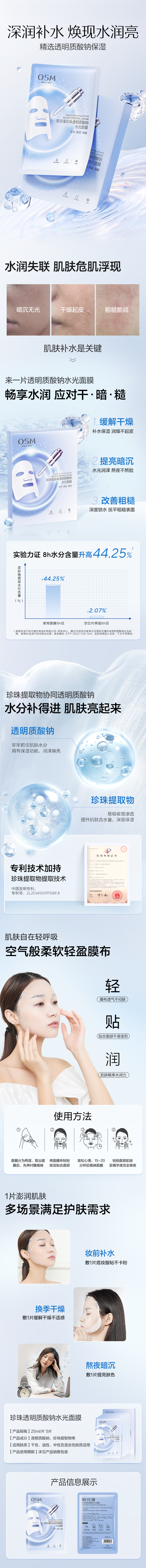 【到手30片】欧诗漫珍珠透明质酸钠水光面膜5片*6盒