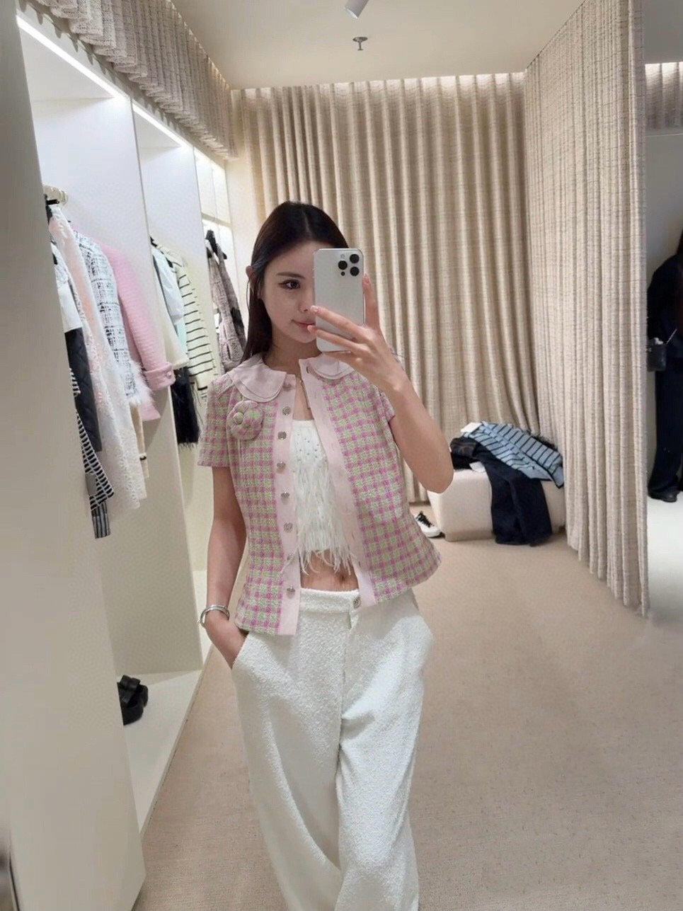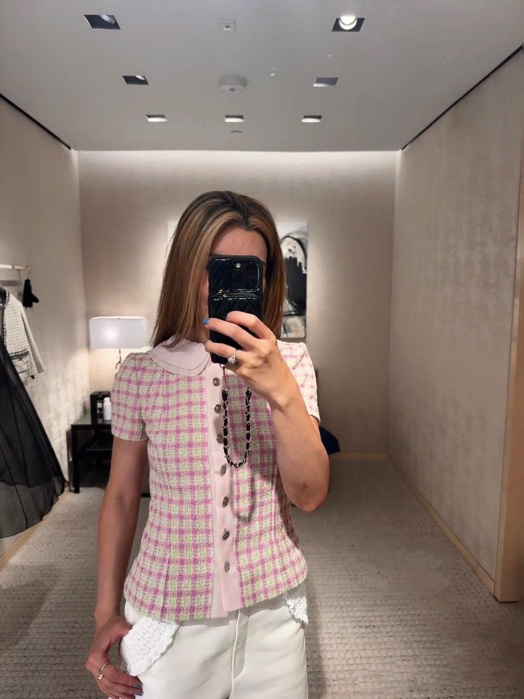 CHANEL 香奈儿25早春粉色格子上衣🐮