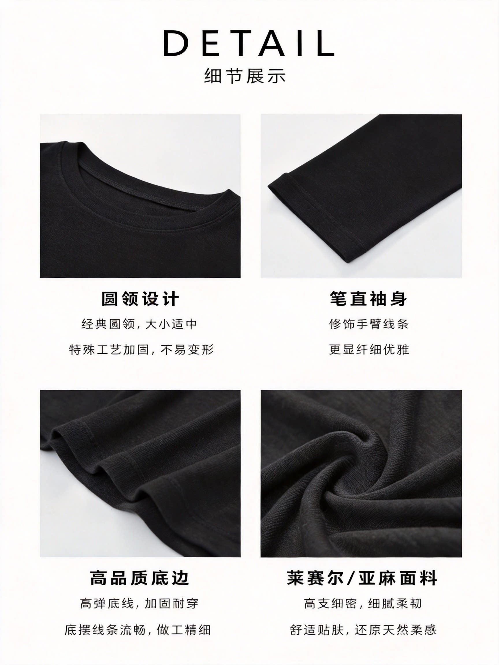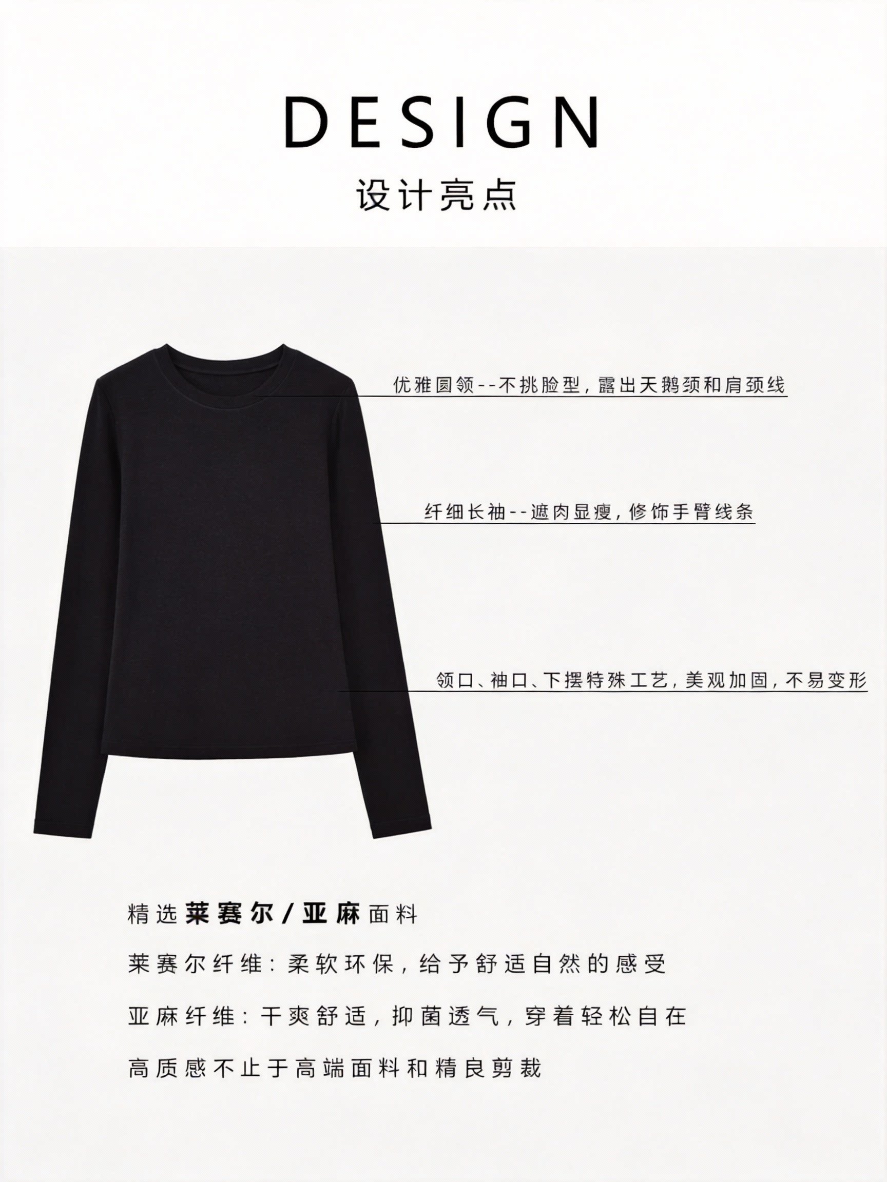 【门店同款】莱赛尔亚麻女圆领亲肤柔软休闲百搭长袖T恤1Q1222201