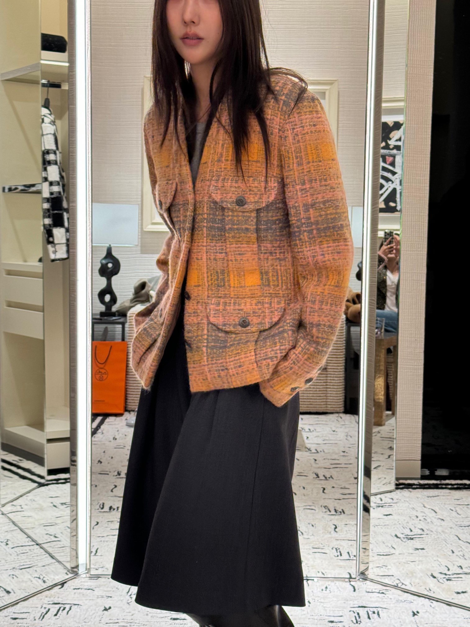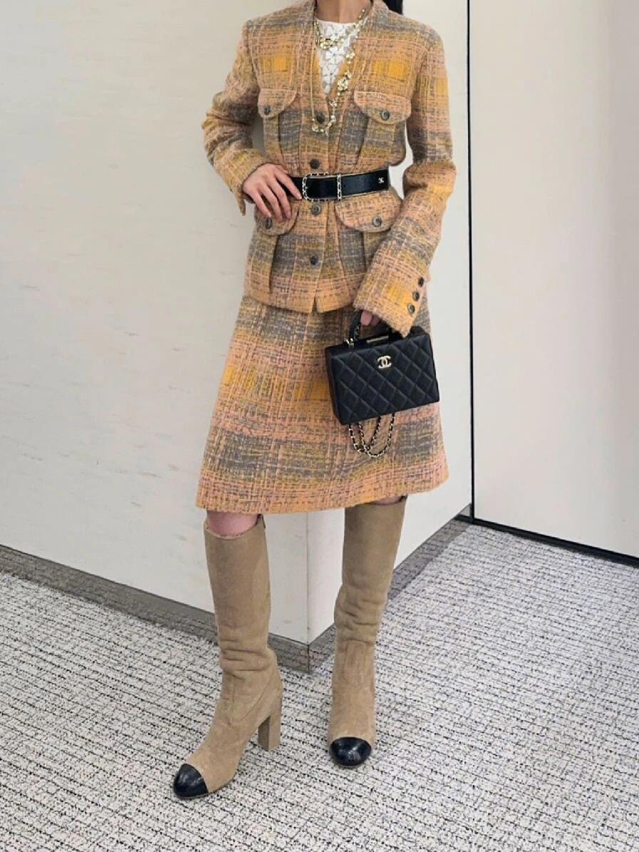 Chane* 24K秋冬新款 橘色落日粗花尼外套丨⚠独家高版出品!