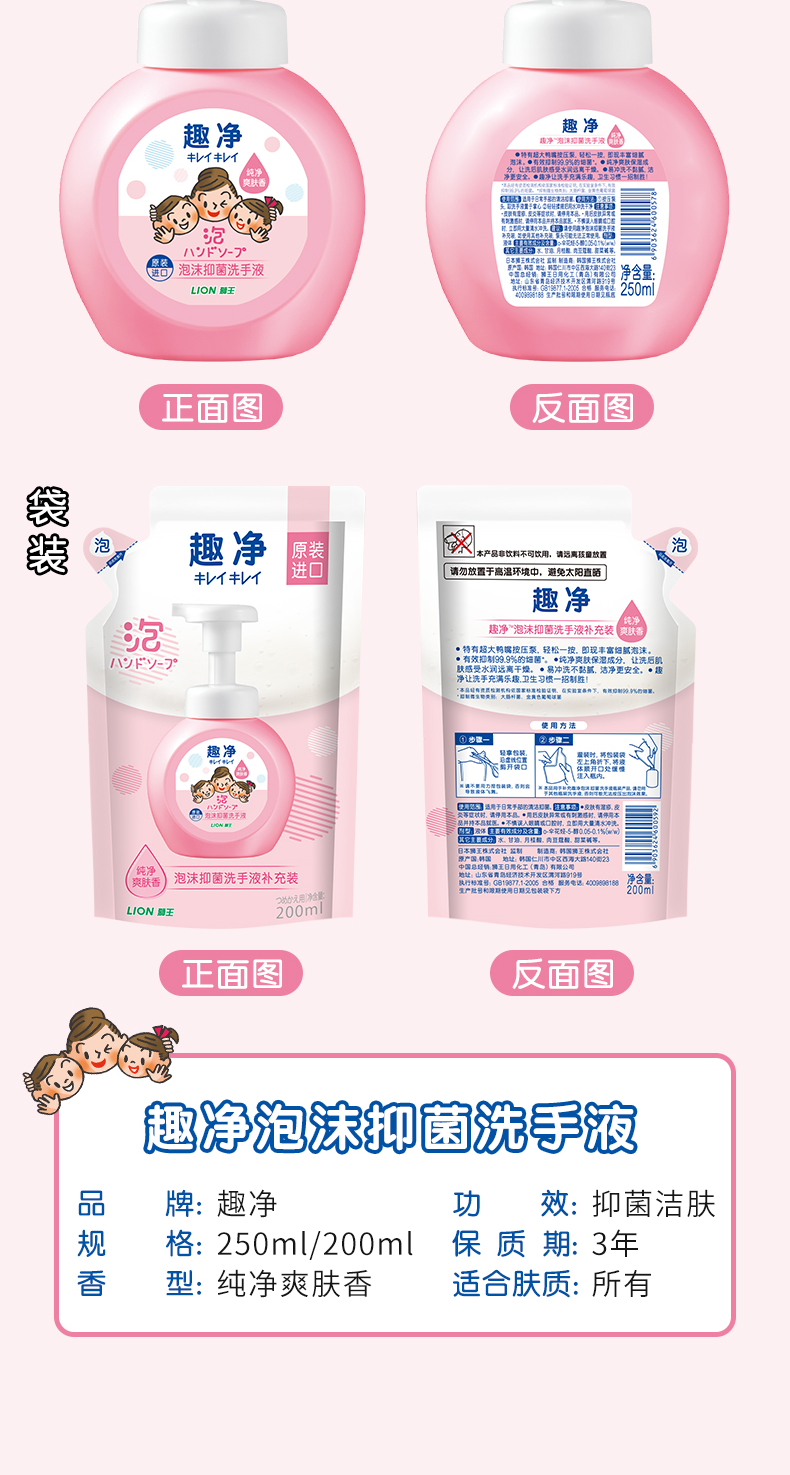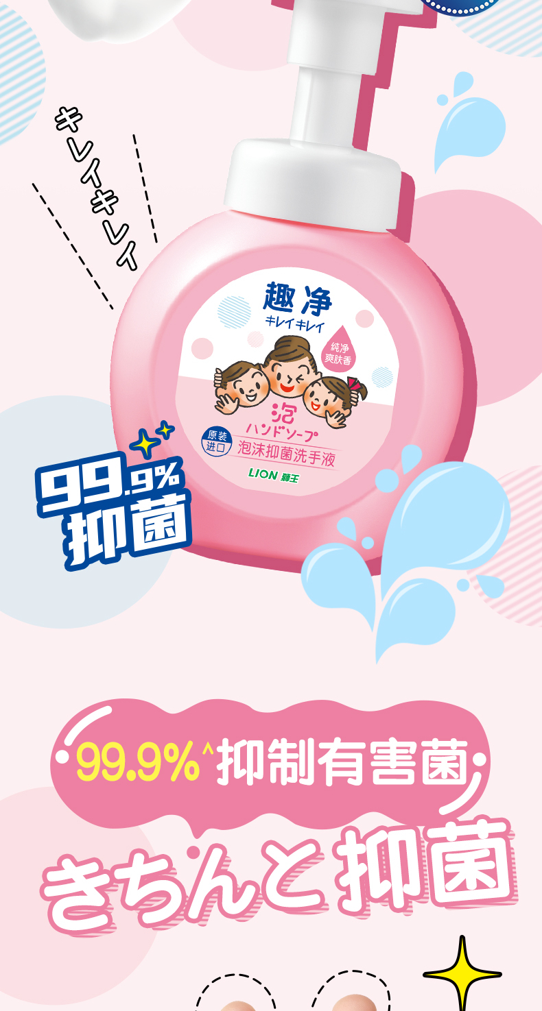 LION狮王 趣净泡沫抑菌洗手液 250ml*1瓶+200ml*2袋