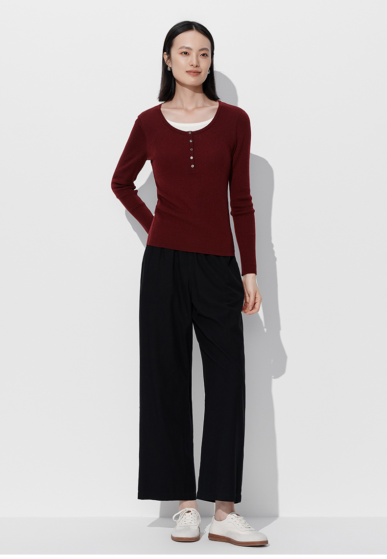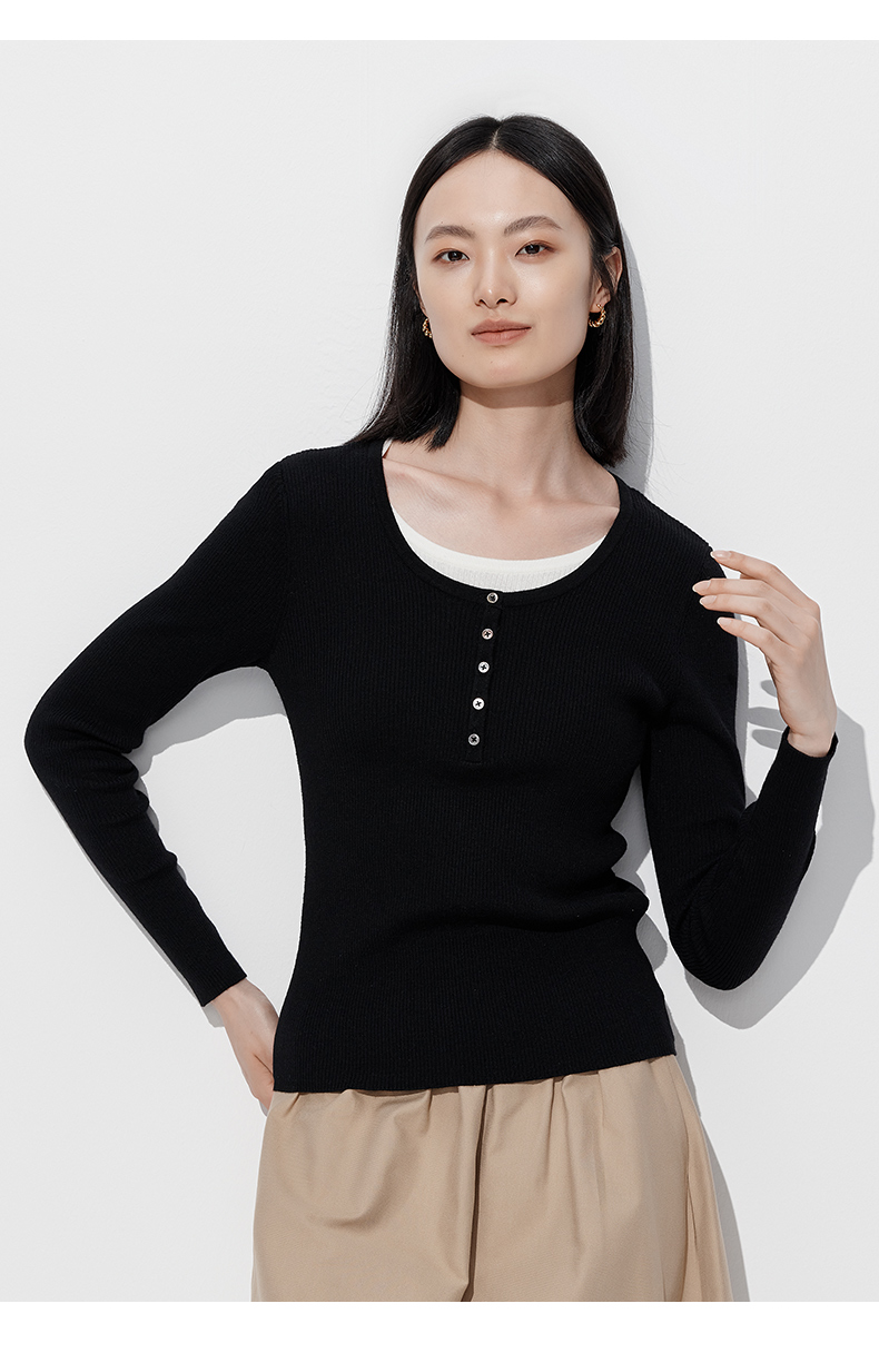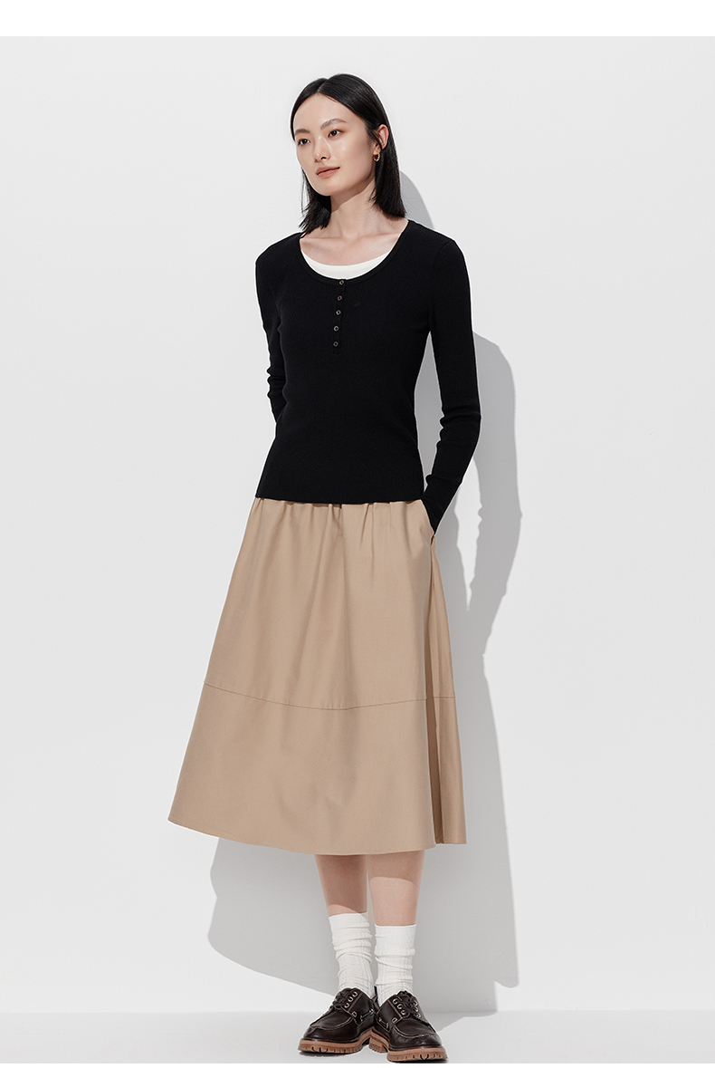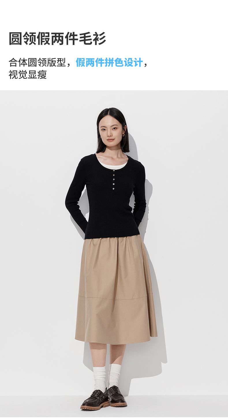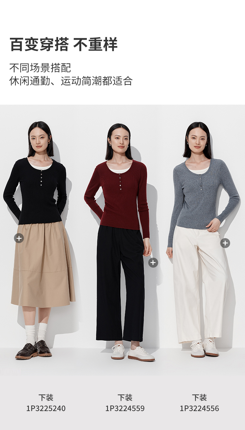 【门店同款】极简风全棉女180G重磅柔软圆领百搭长袖T恤1Q1222207
