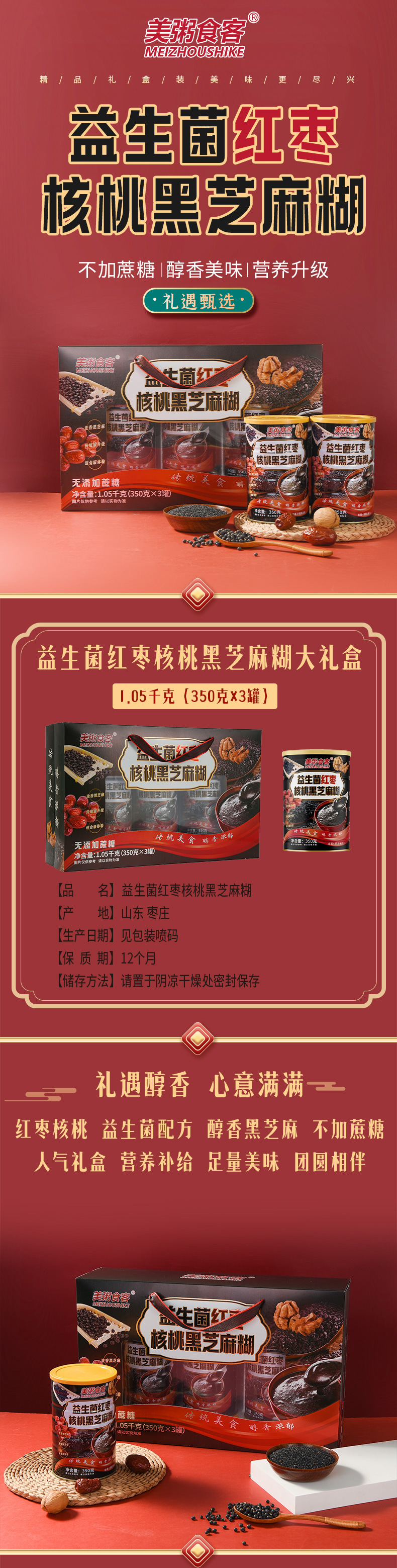 美粥食客 益生菌红枣核桃黑芝麻糊礼盒 350gx3罐 礼遇醇香 心意满满 不加蔗糖 醇香美味 营养升级