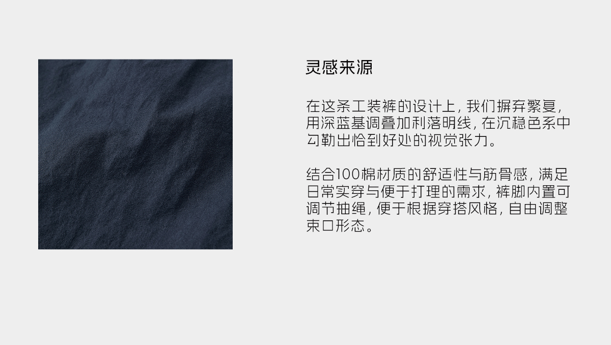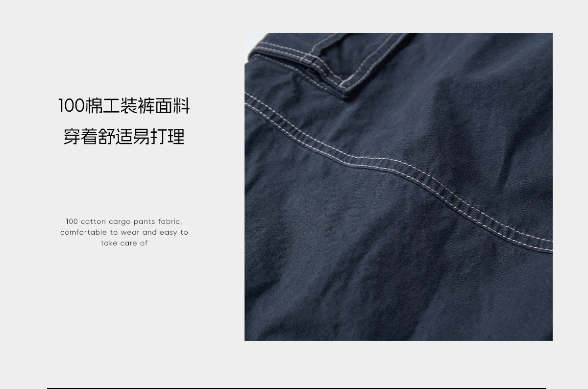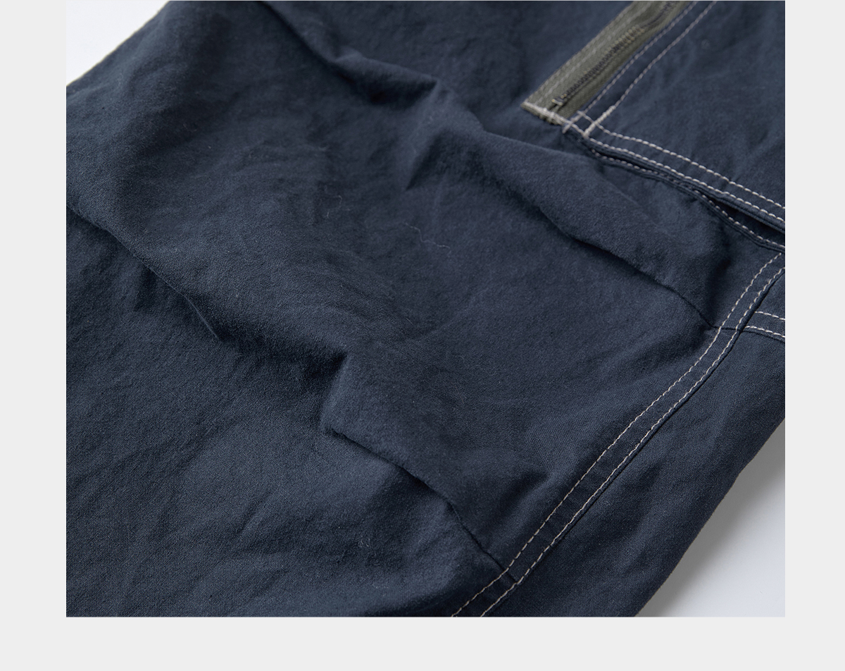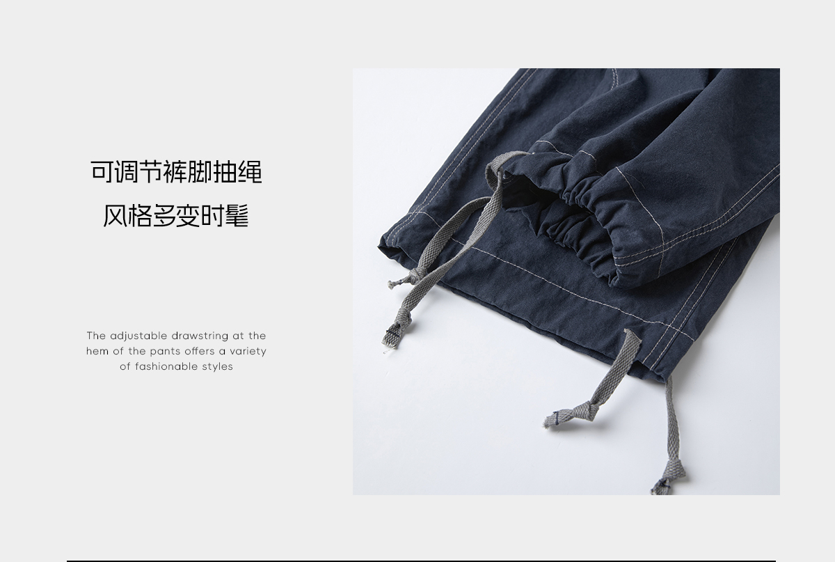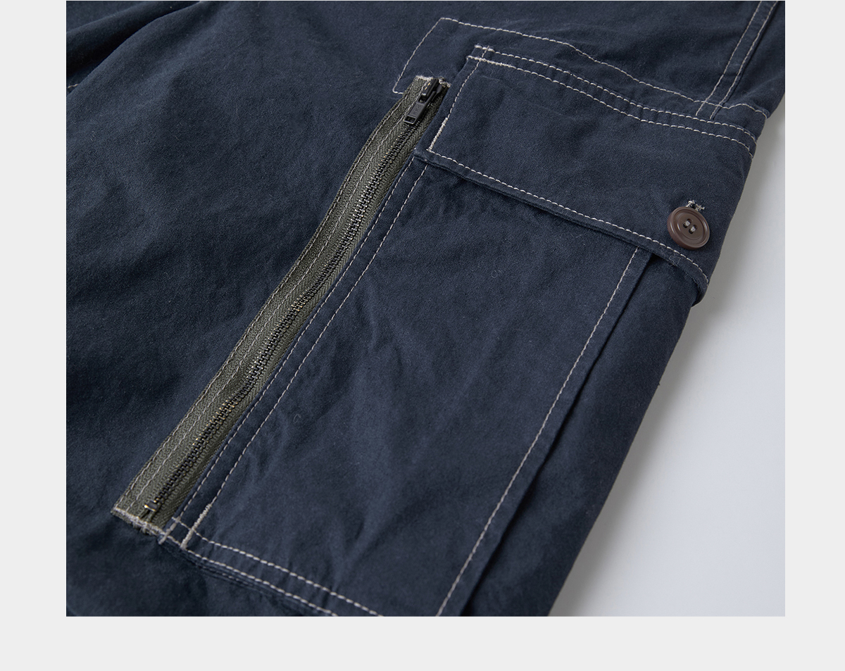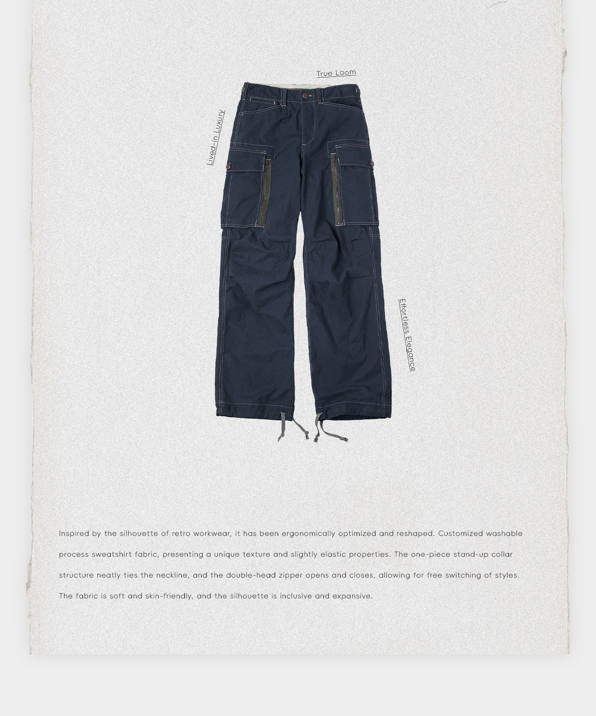 ROMISTUDIO“复古腔调”深蓝撞色明线大口袋工装休闲裤 RWCAXU5888