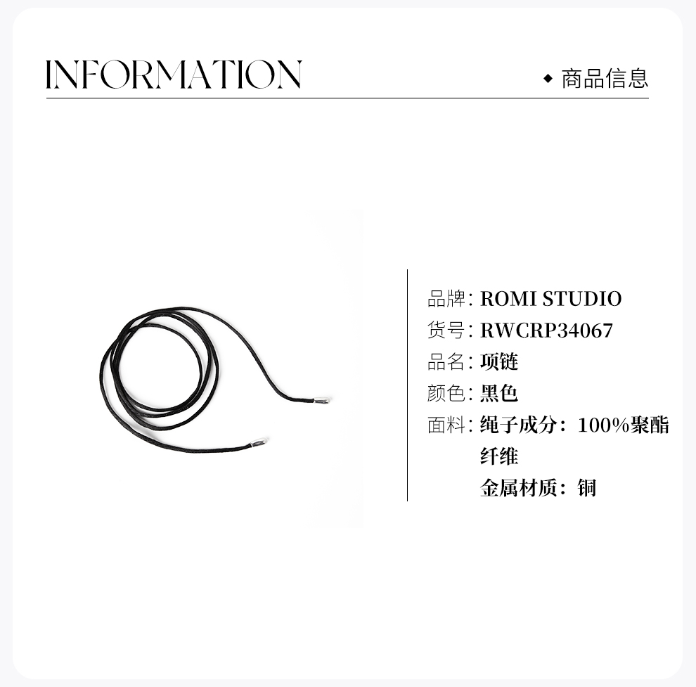 ROMI STUDIO 铜涤纶项链 简约气质可调节绑带黑绳项链 RWCRP34067【发货时间25-30天】