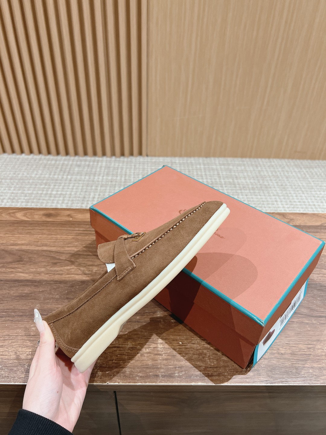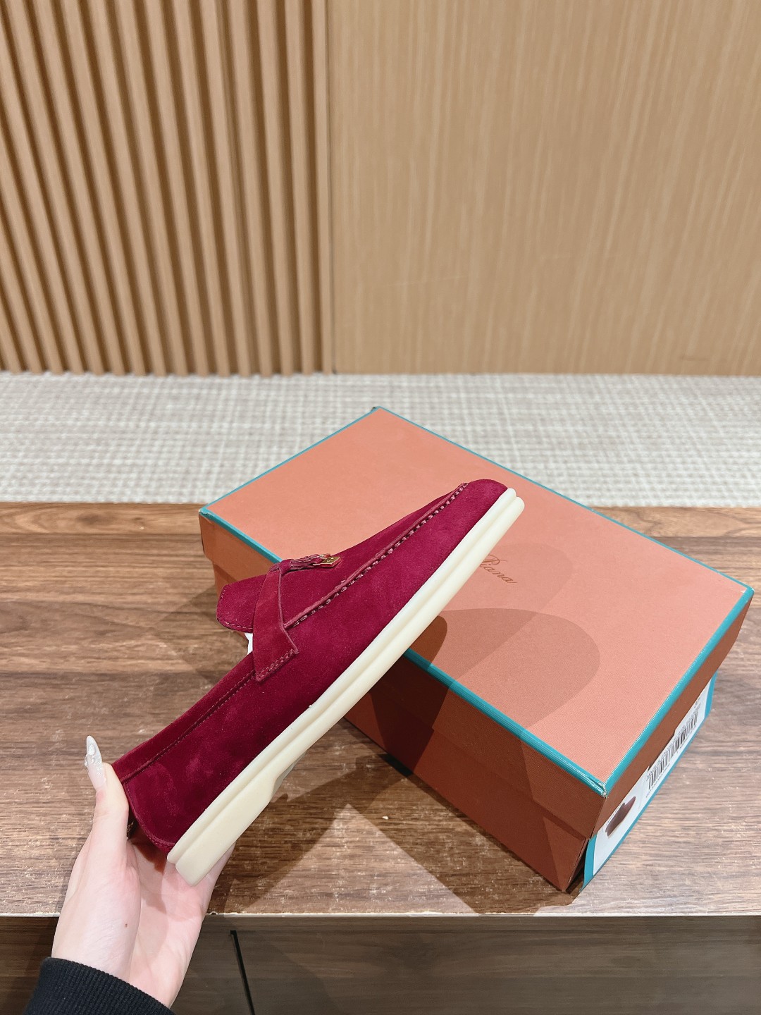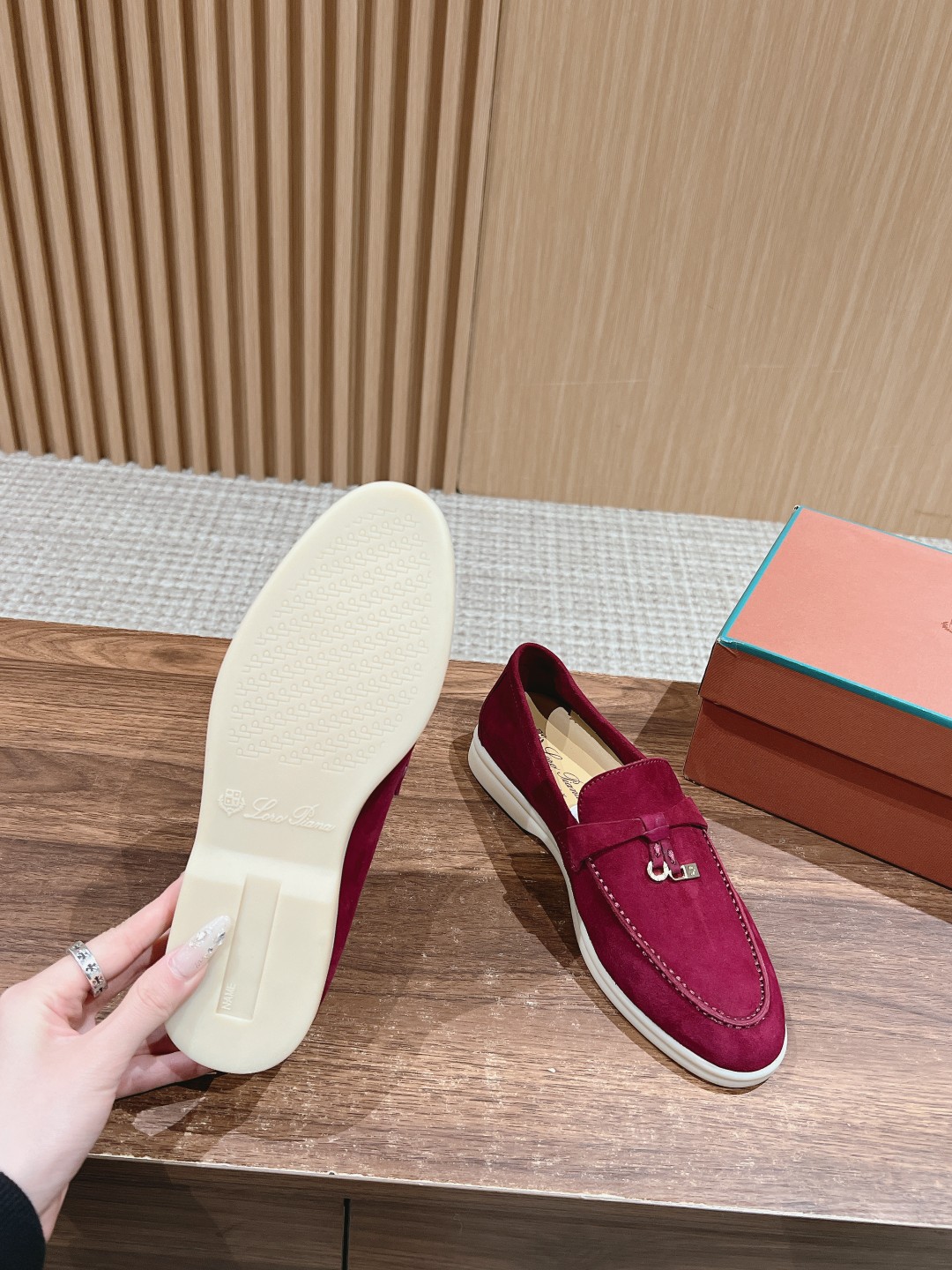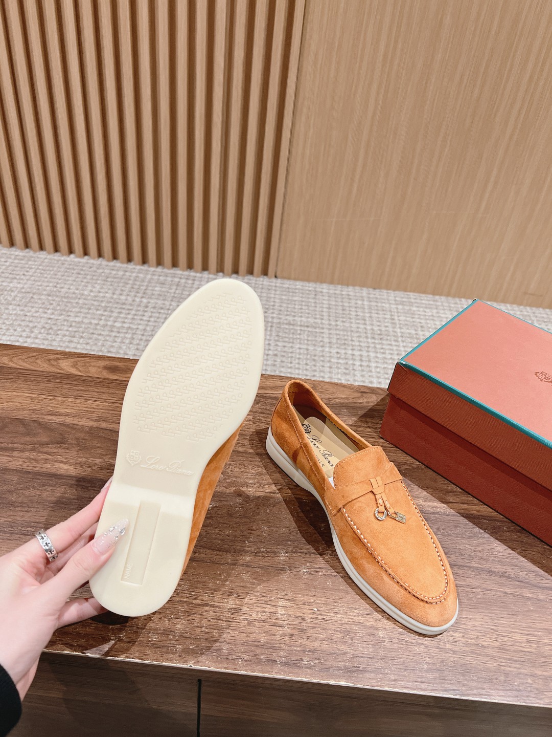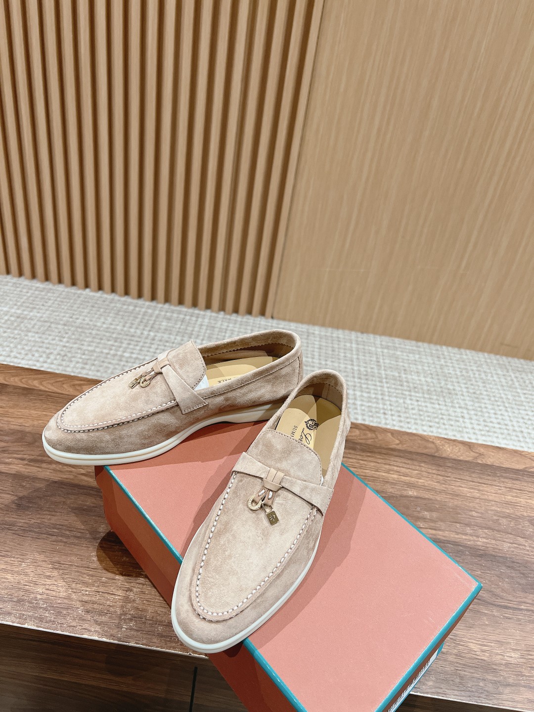 面料进口羊京,牛皮脚垫,原版开模大底,是Loro piana 所有休闲鞋履共有的特色。