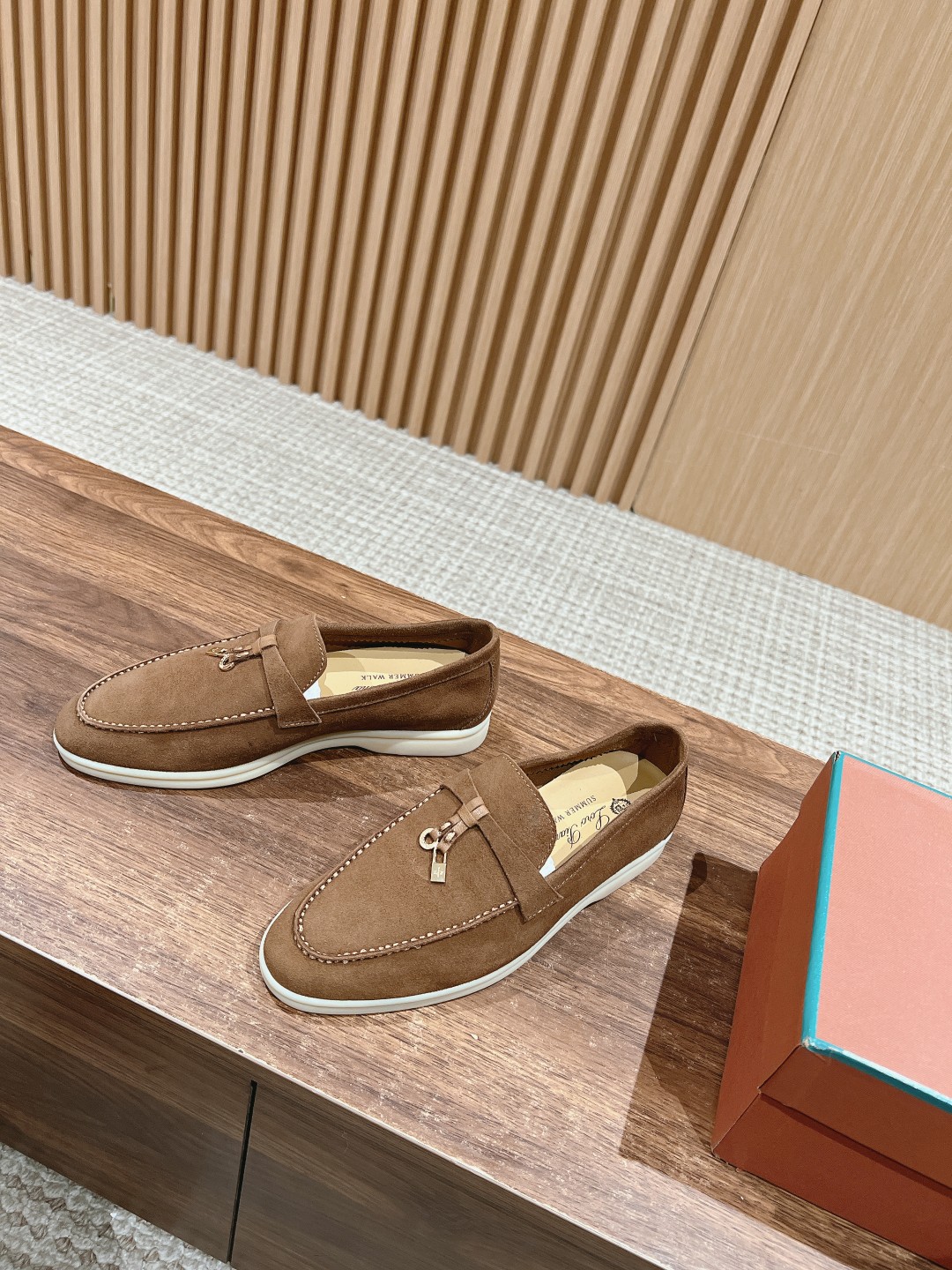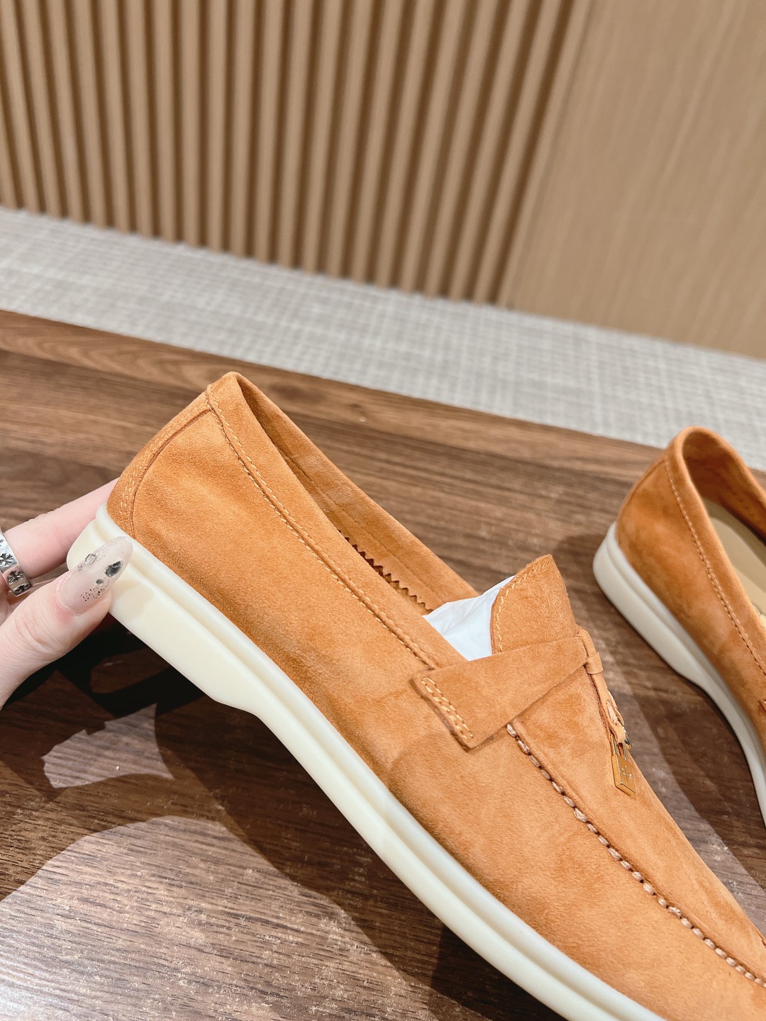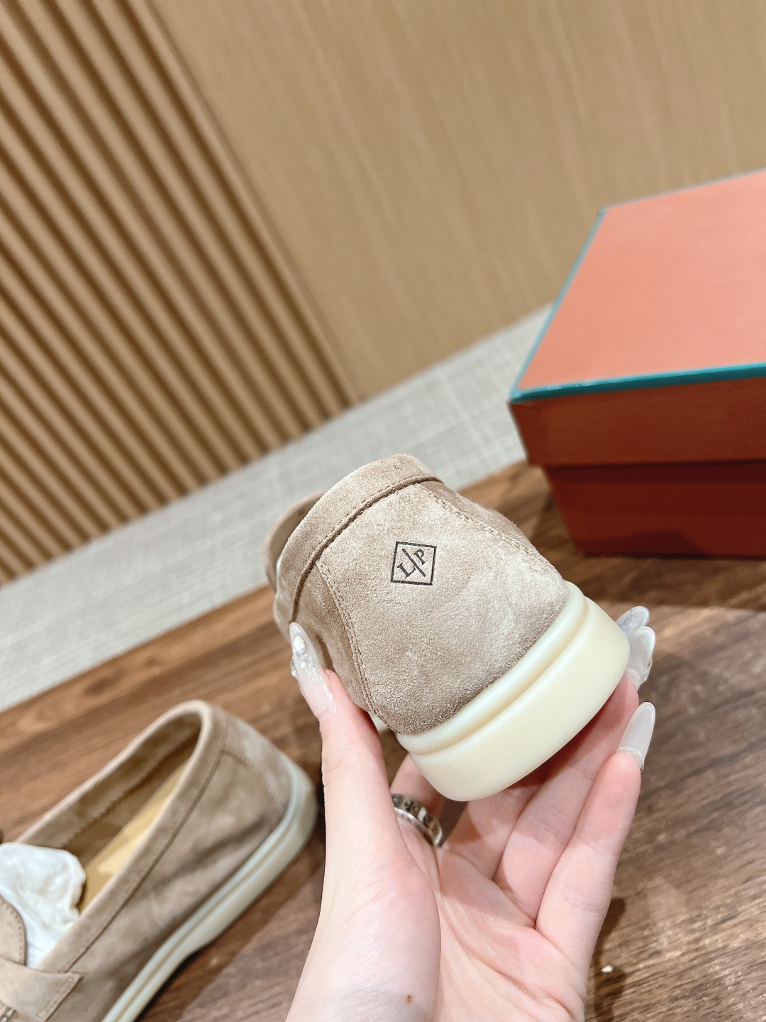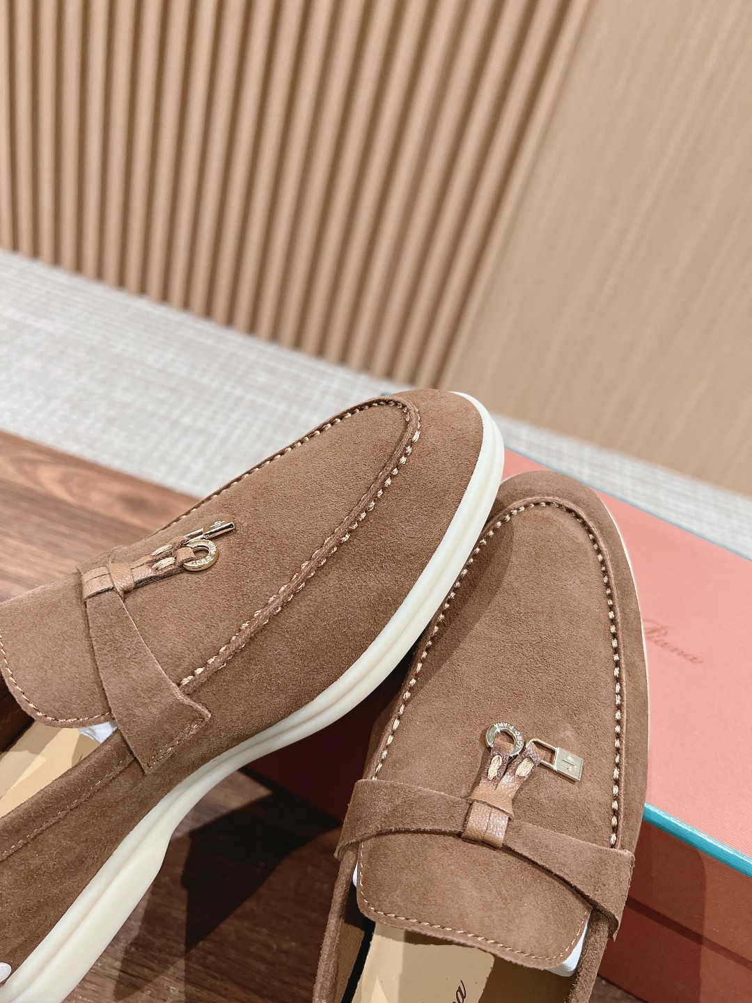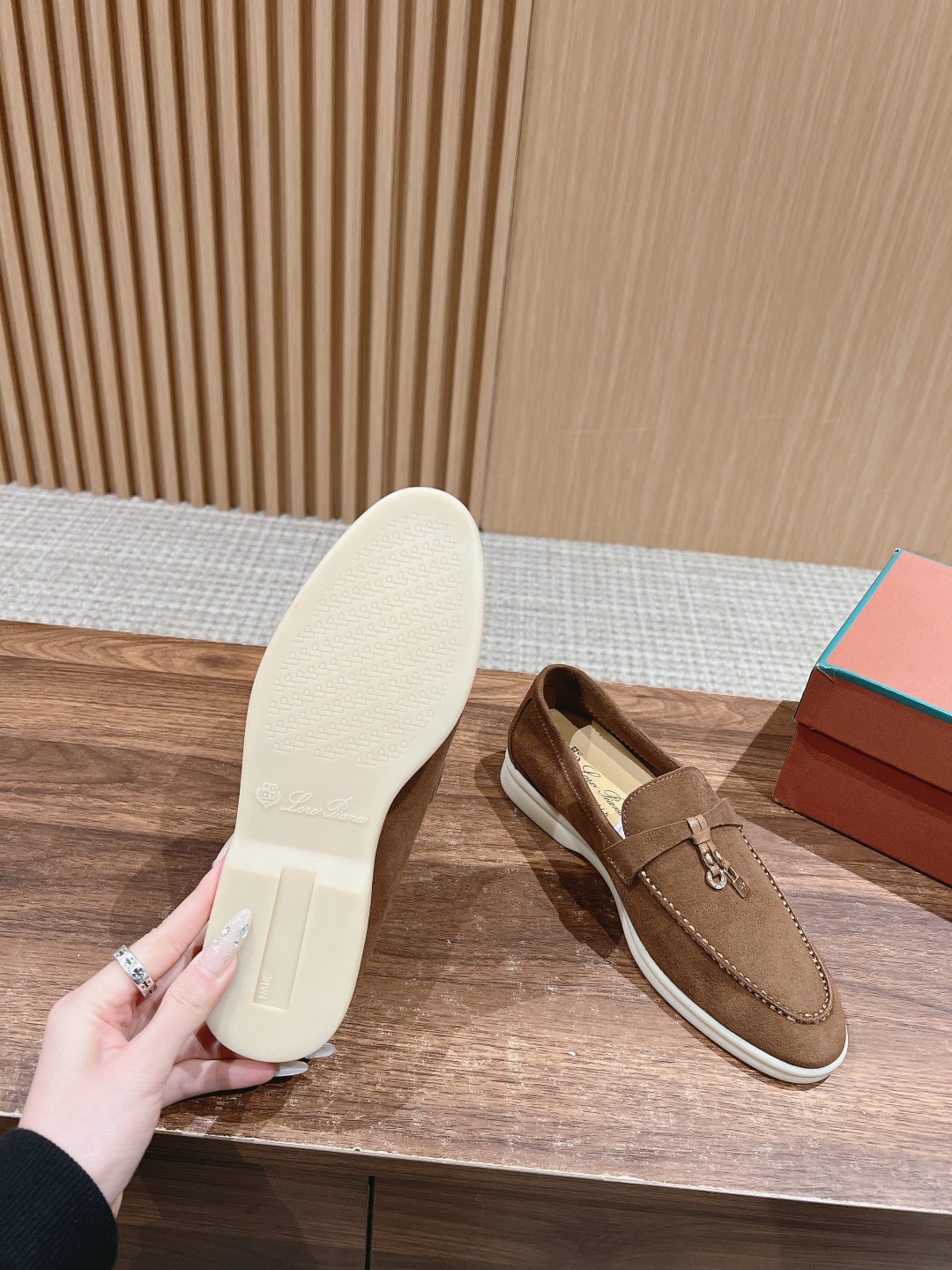面料进口羊京,牛皮脚垫,原版开模大底,是Loro piana 所有休闲鞋履共有的特色。
