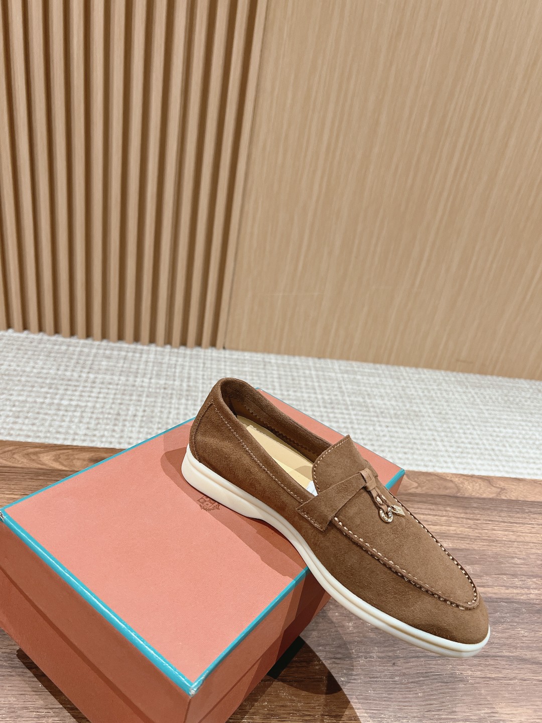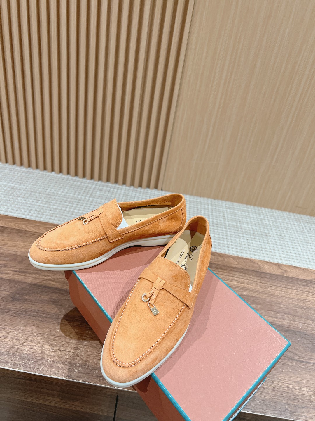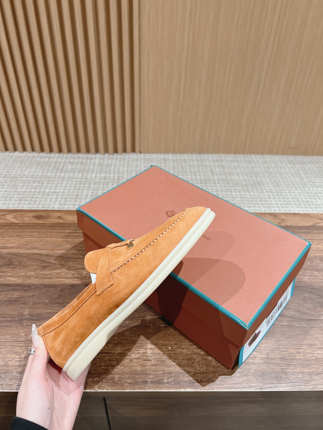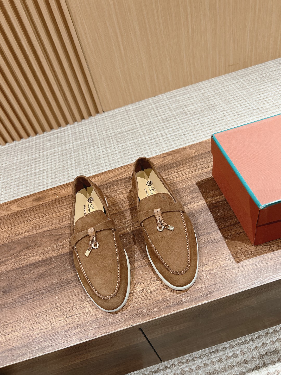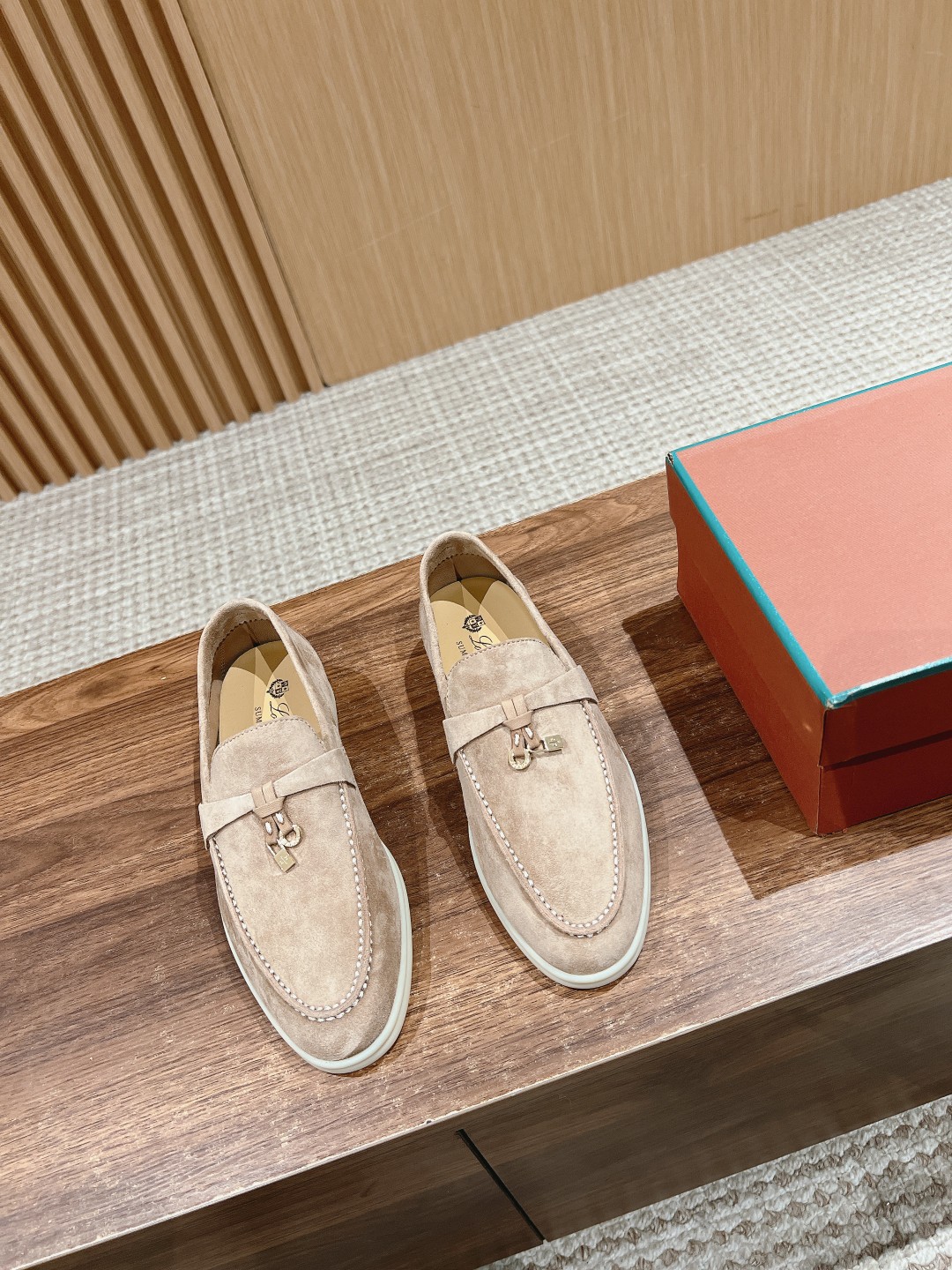 面料进口羊京,牛皮脚垫,原版开模大底,是Loro piana 所有休闲鞋履共有的特色。