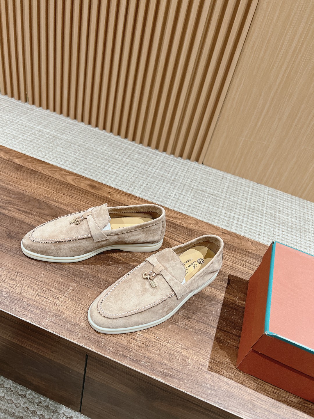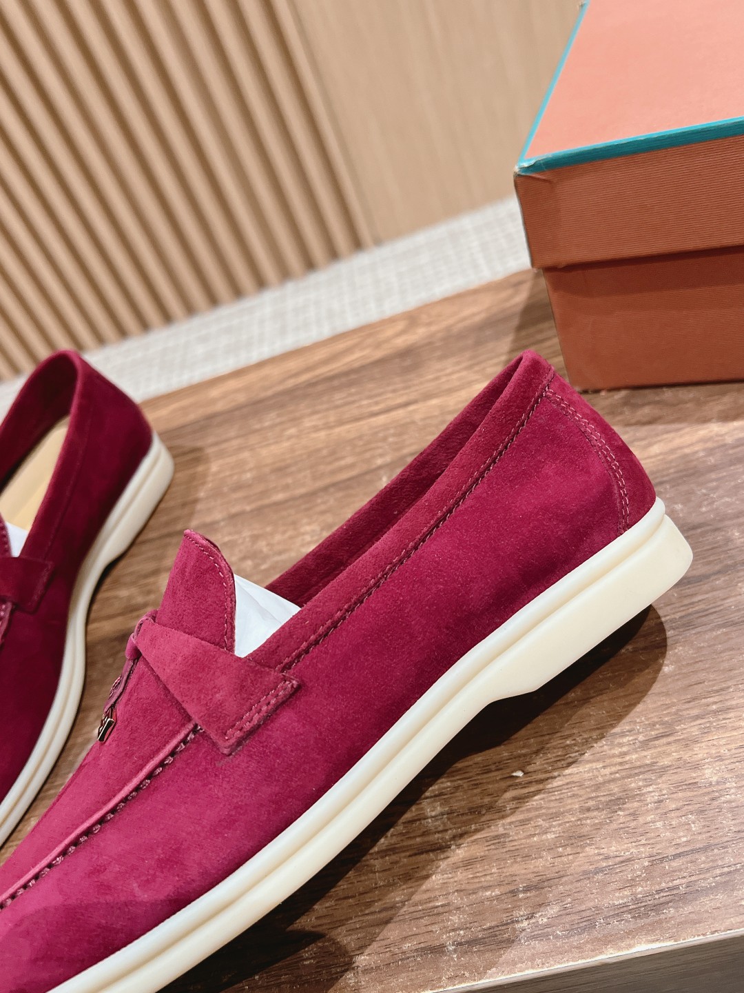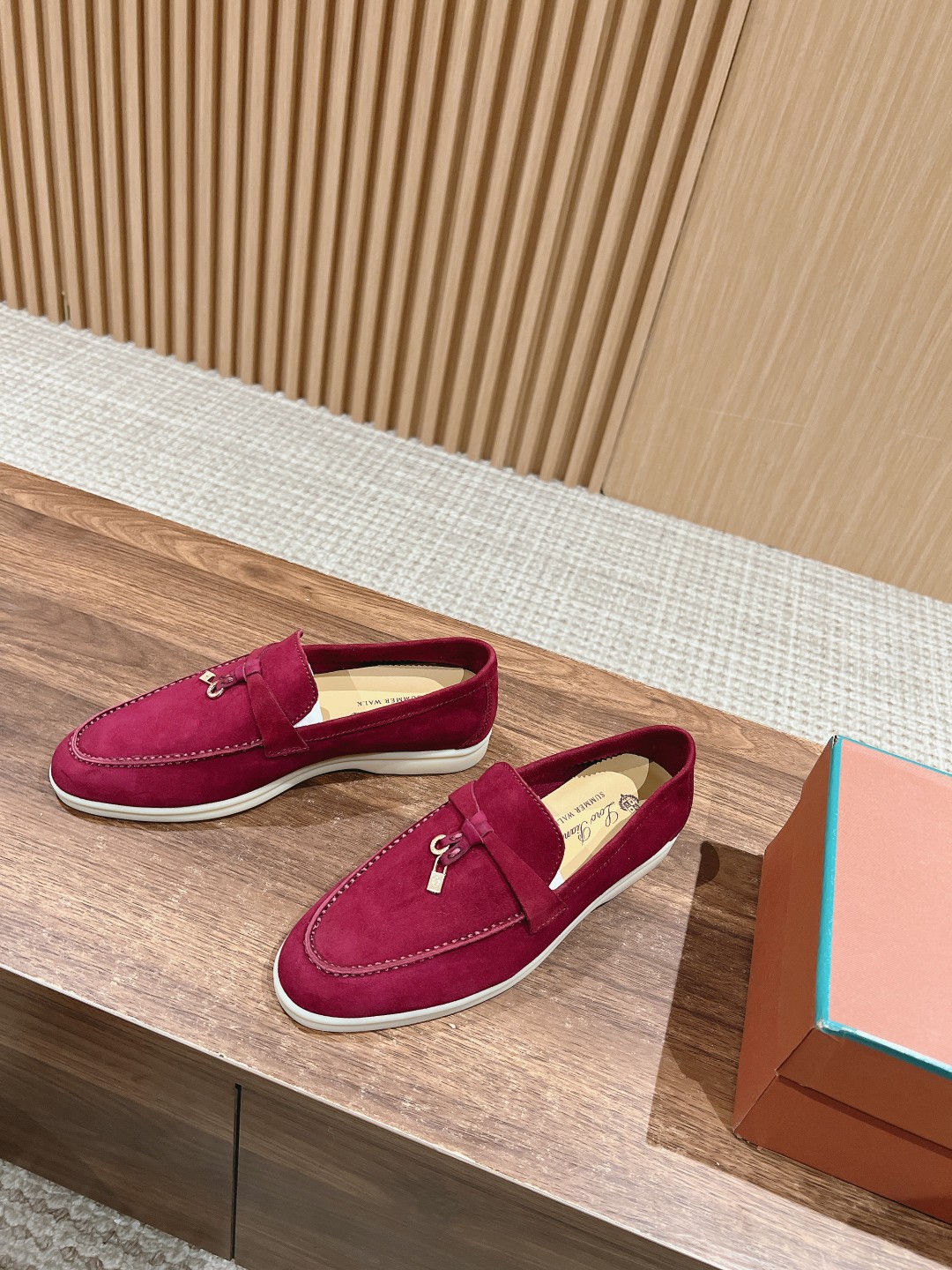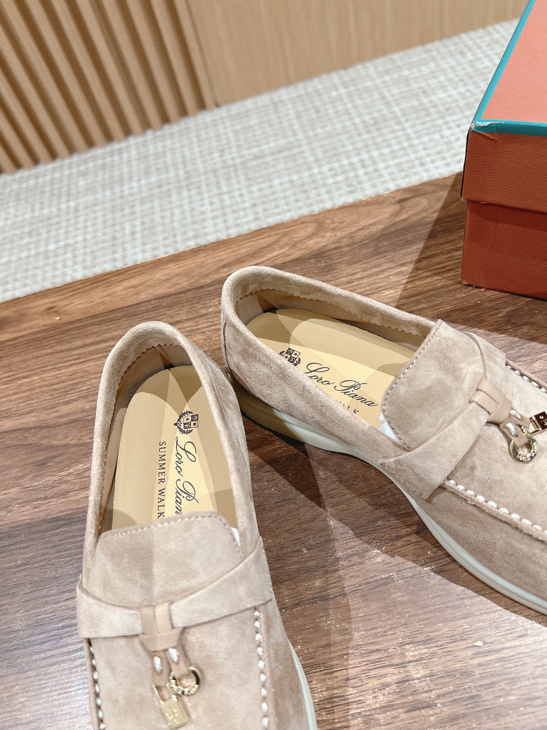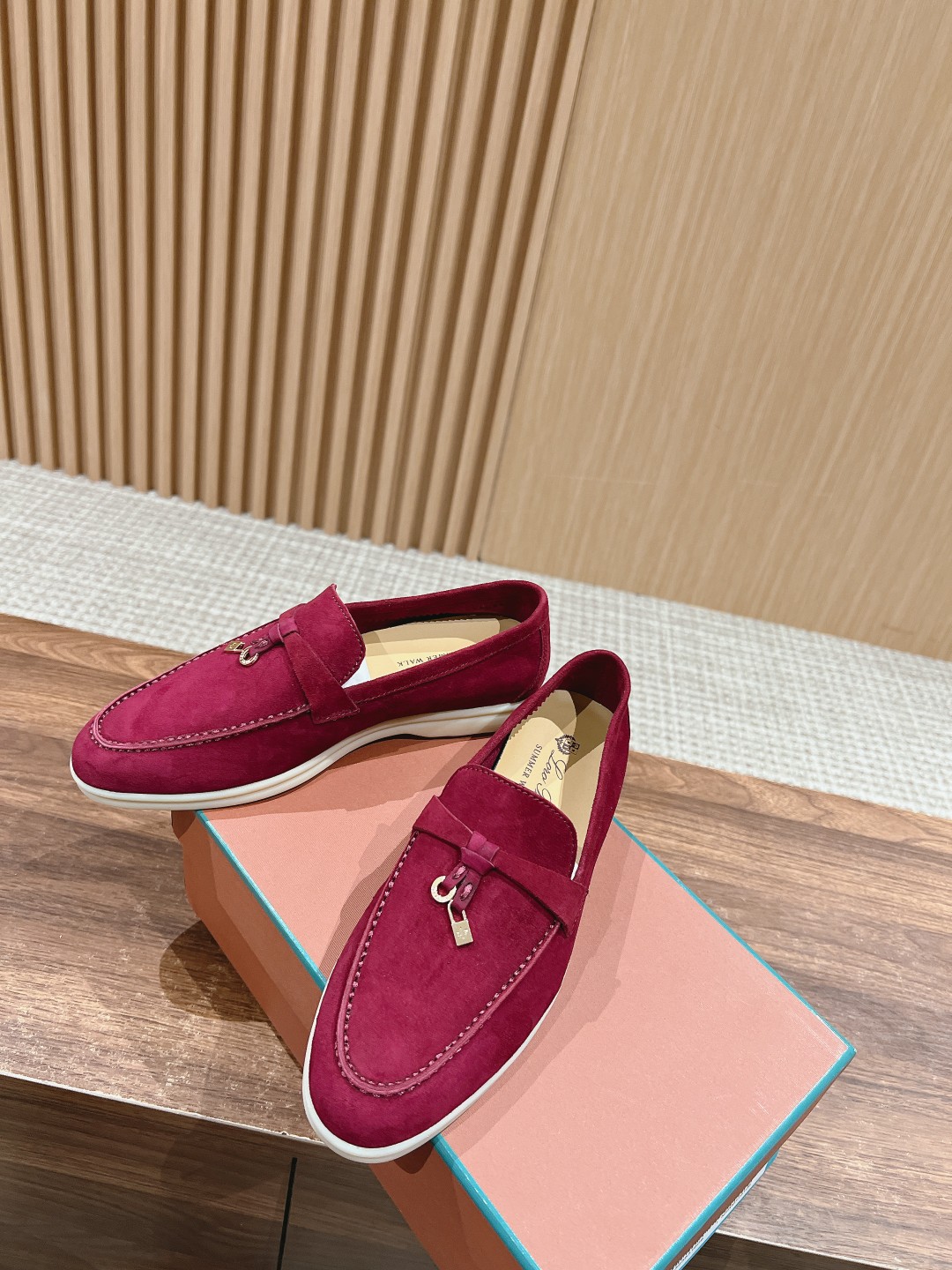 面料进口羊京,牛皮脚垫,原版开模大底,是Loro piana 所有休闲鞋履共有的特色。