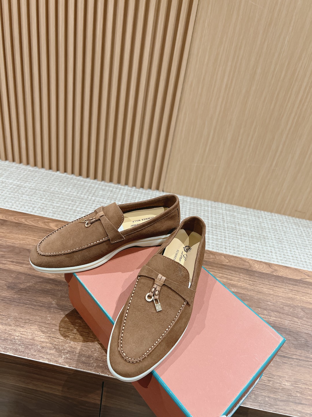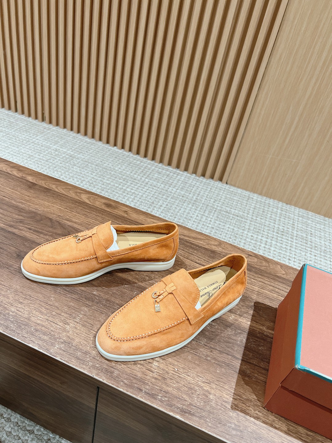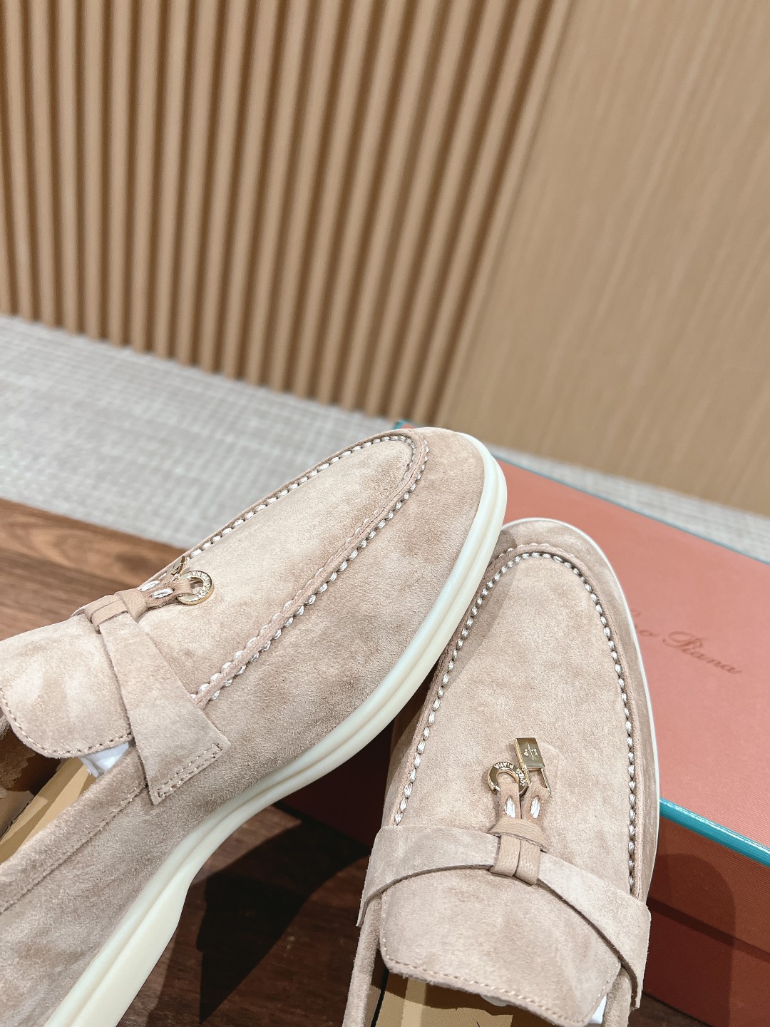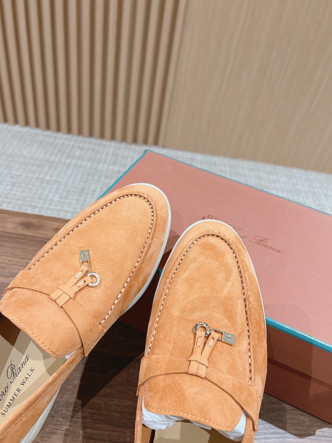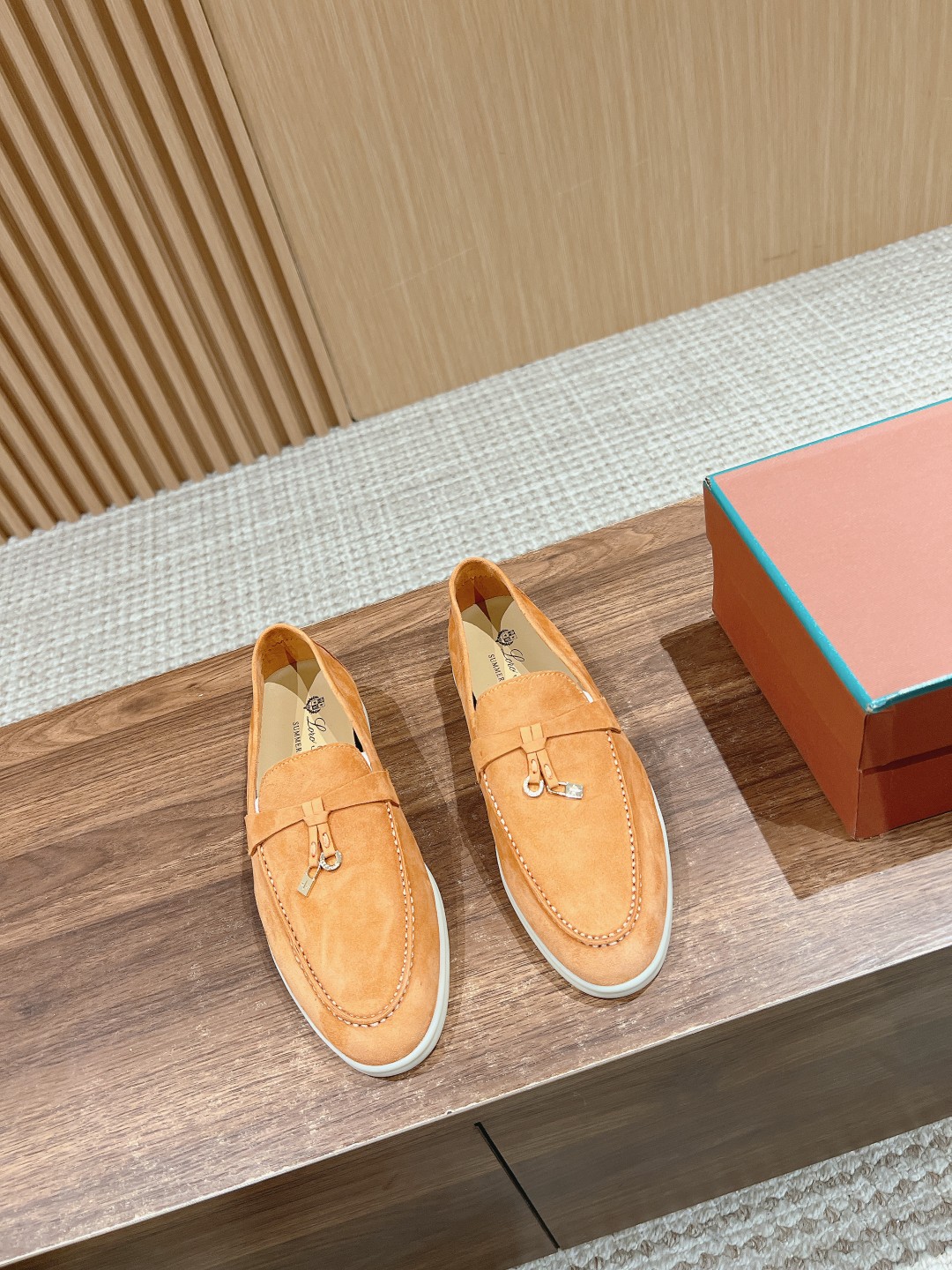 面料进口羊京,牛皮脚垫,原版开模大底,是Loro piana 所有休闲鞋履共有的特色。