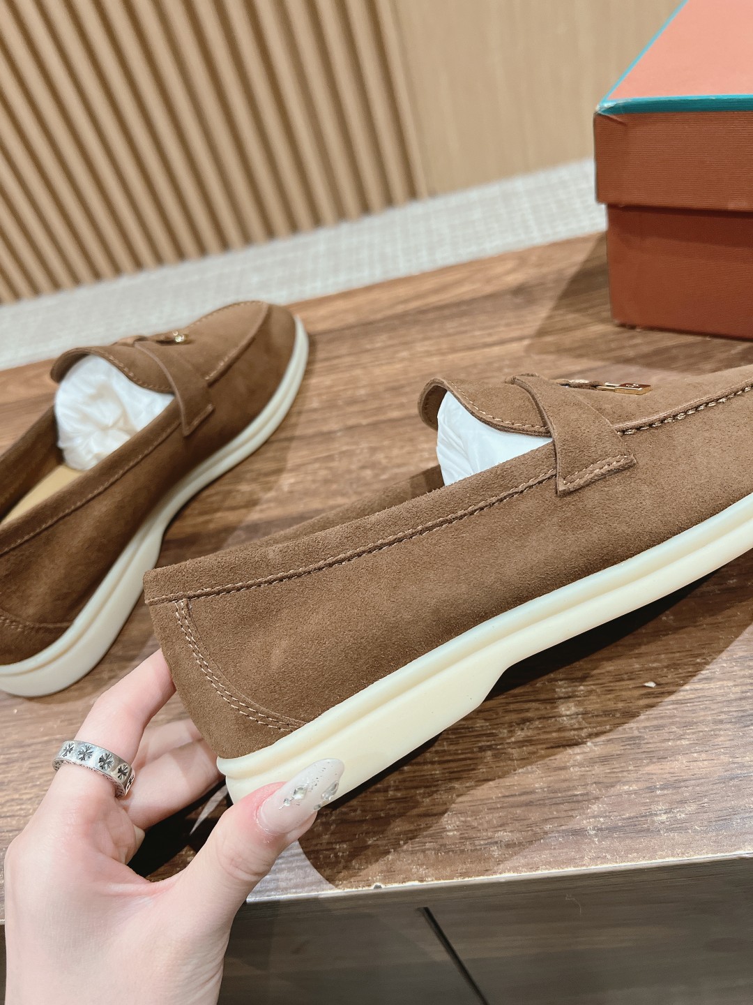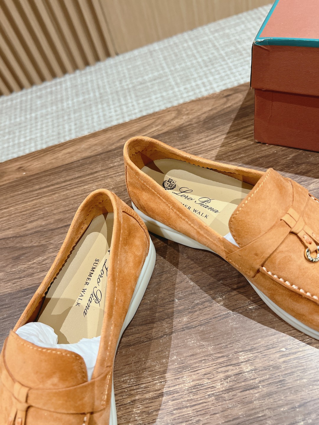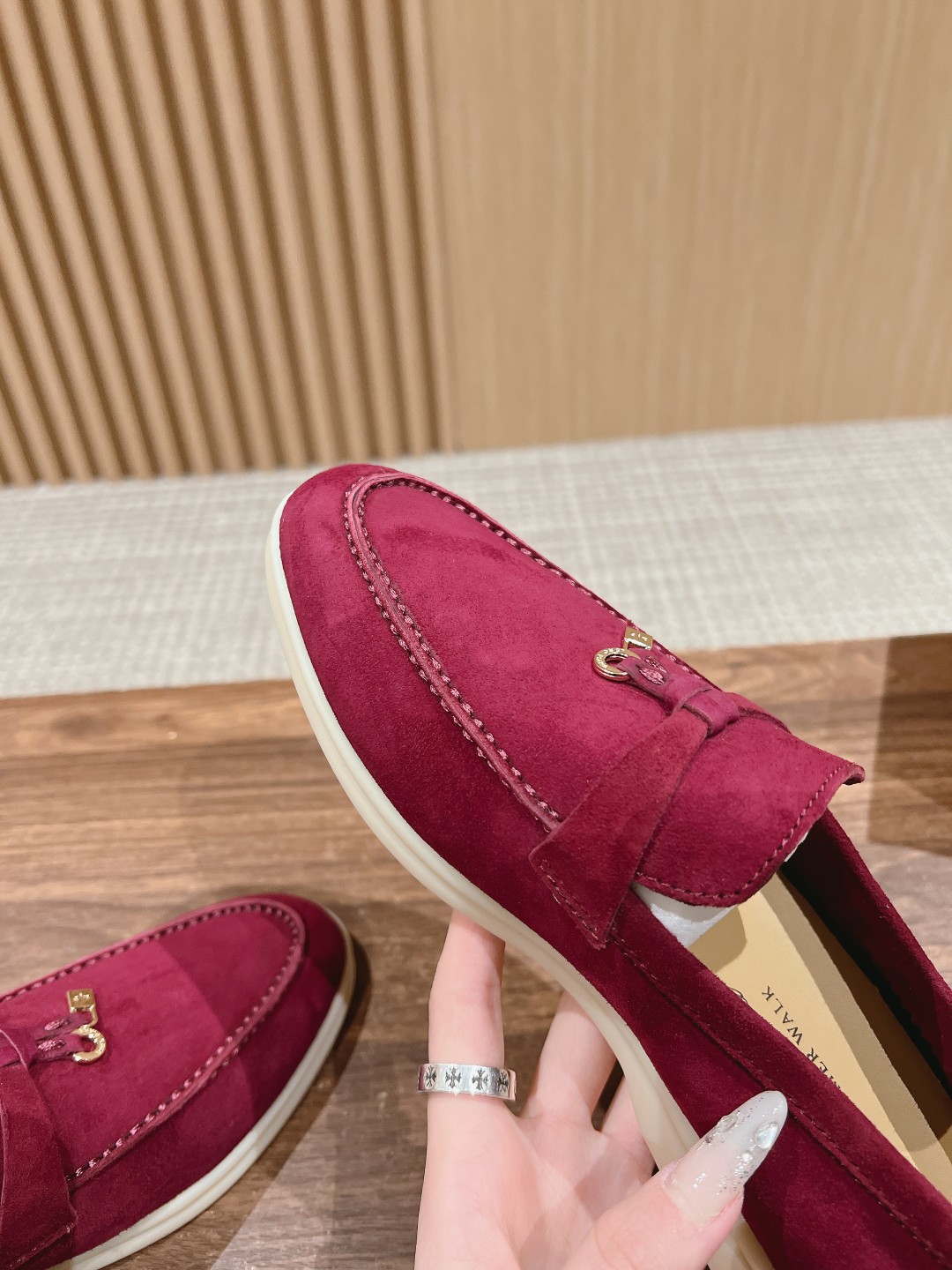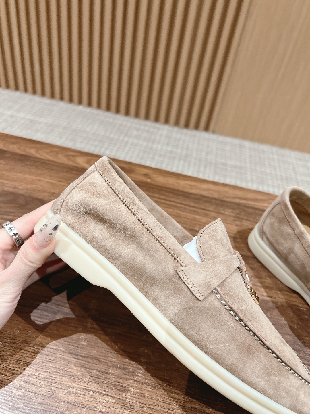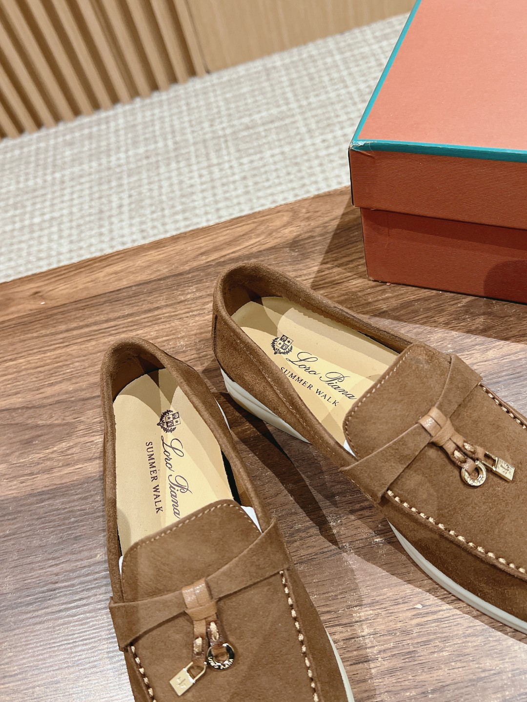 面料进口羊京,牛皮脚垫,原版开模大底,是Loro piana 所有休闲鞋履共有的特色。