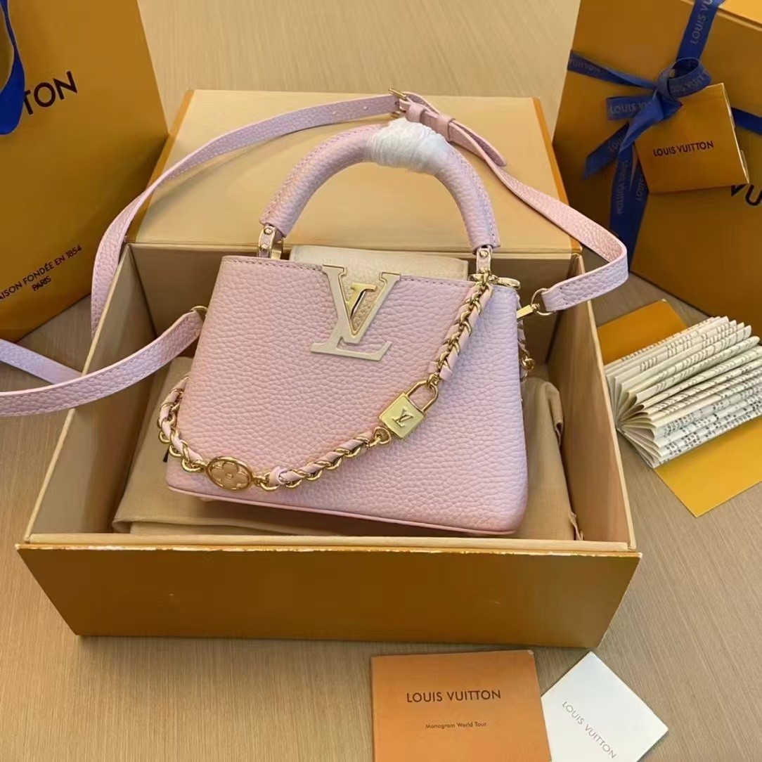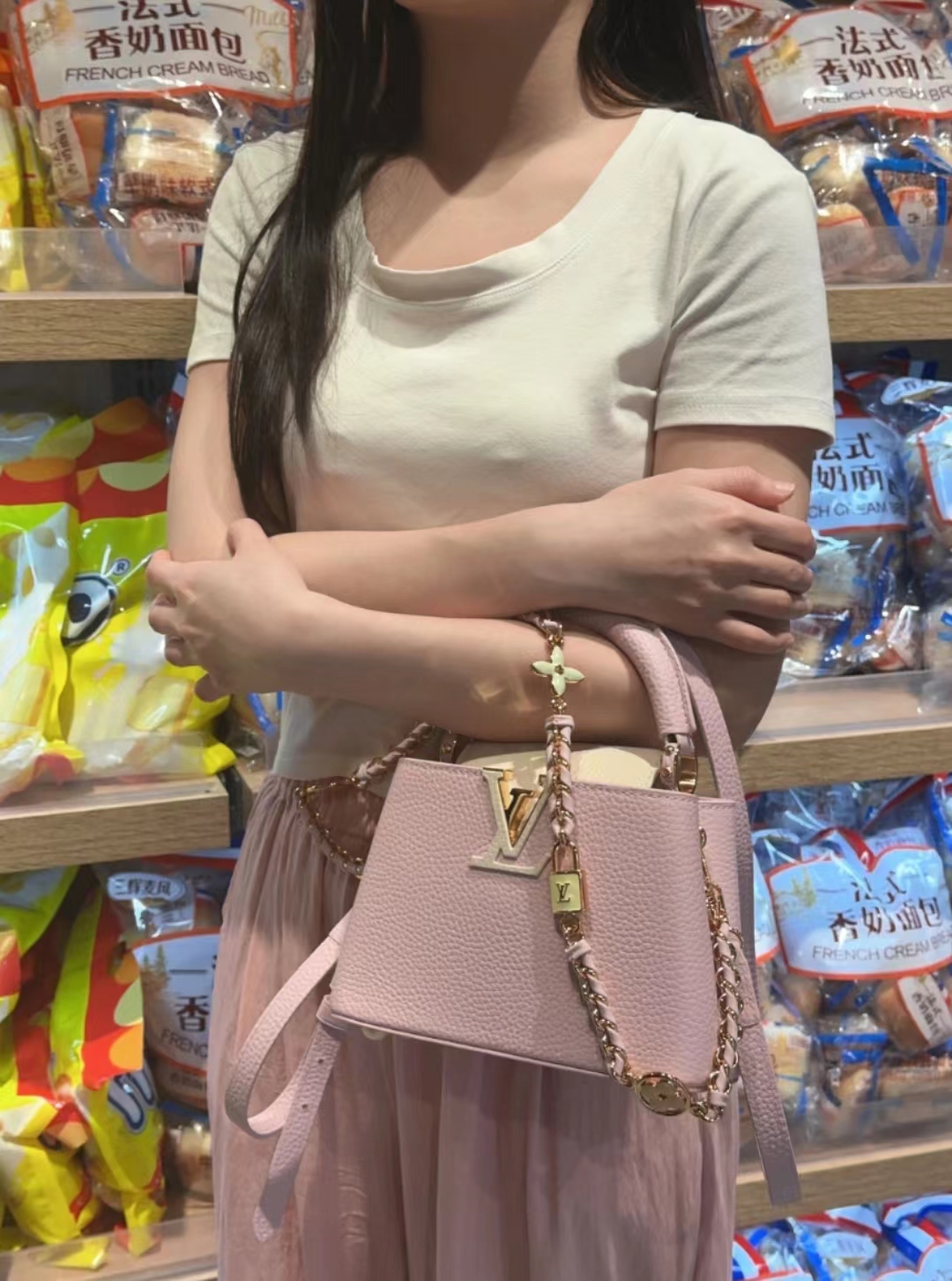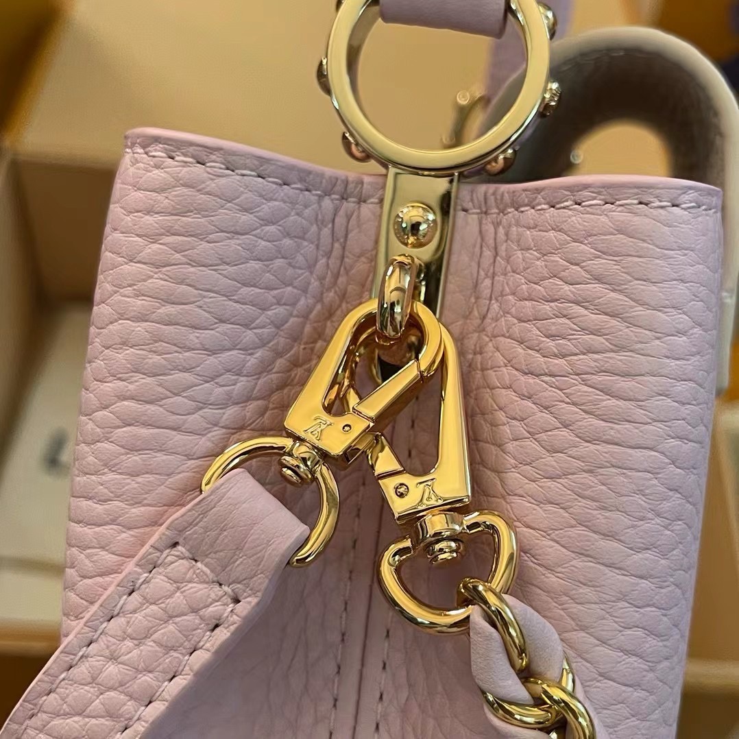 驴家Capucines 纯色釉面效果链条设计铭纹挂锁 Taurillon 皮革 单肩斜挎手提包女款 粉色(CB)