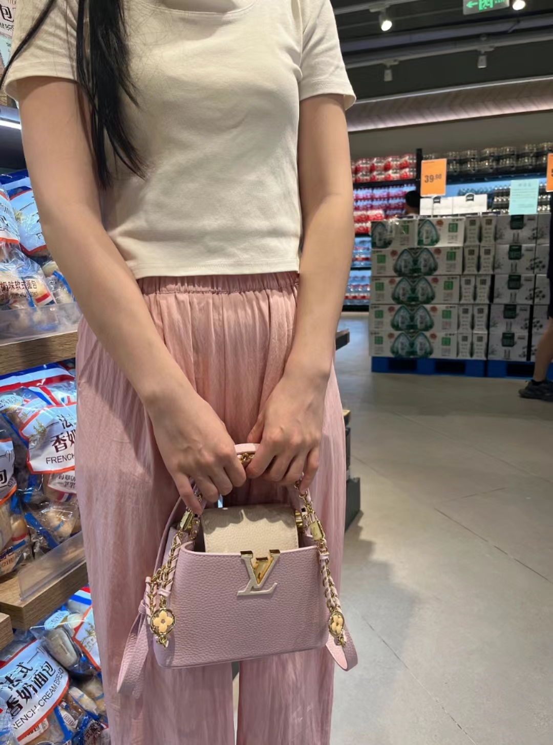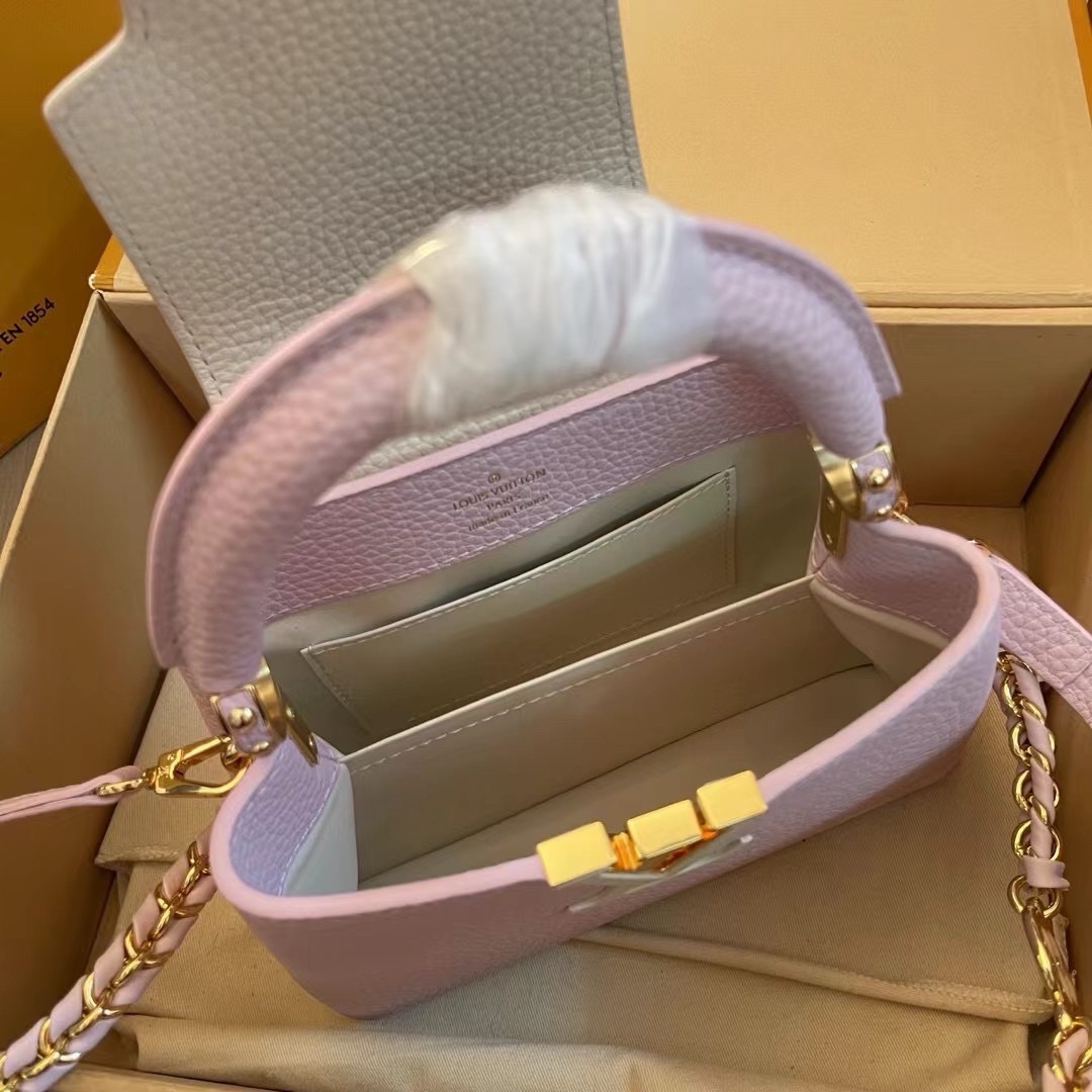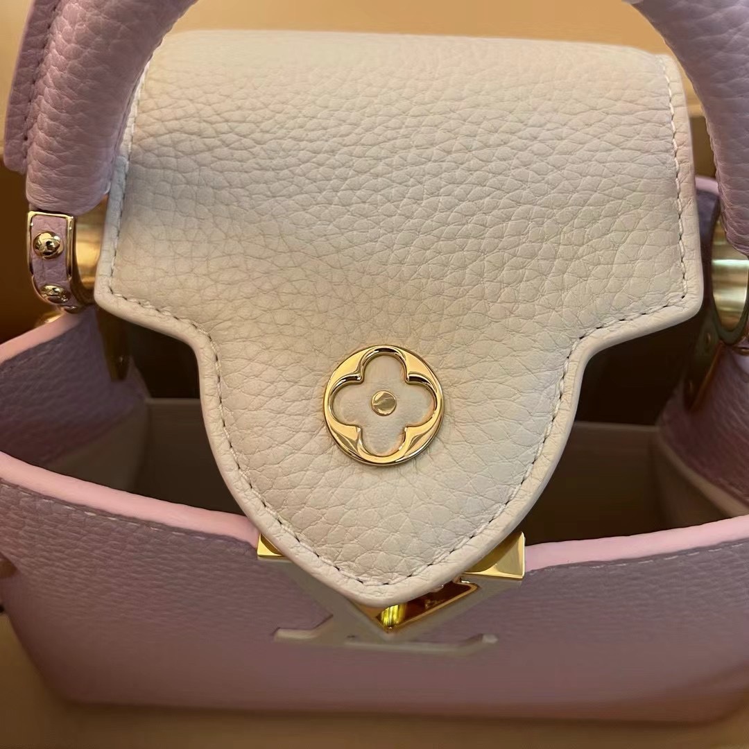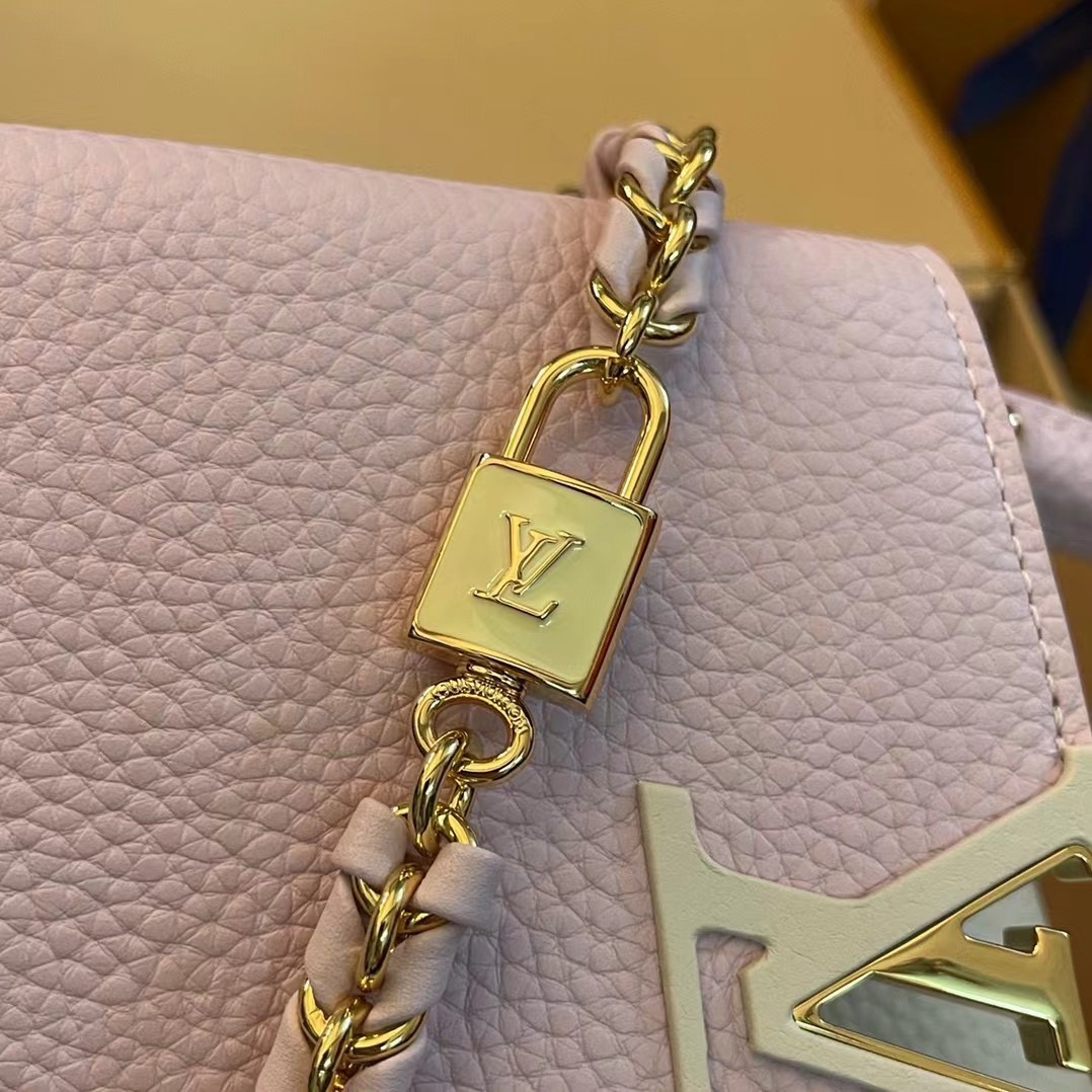驴家Capucines 纯色釉面效果链条设计铭纹挂锁 Taurillon 皮革 单肩斜挎手提包女款 粉色(CB)
