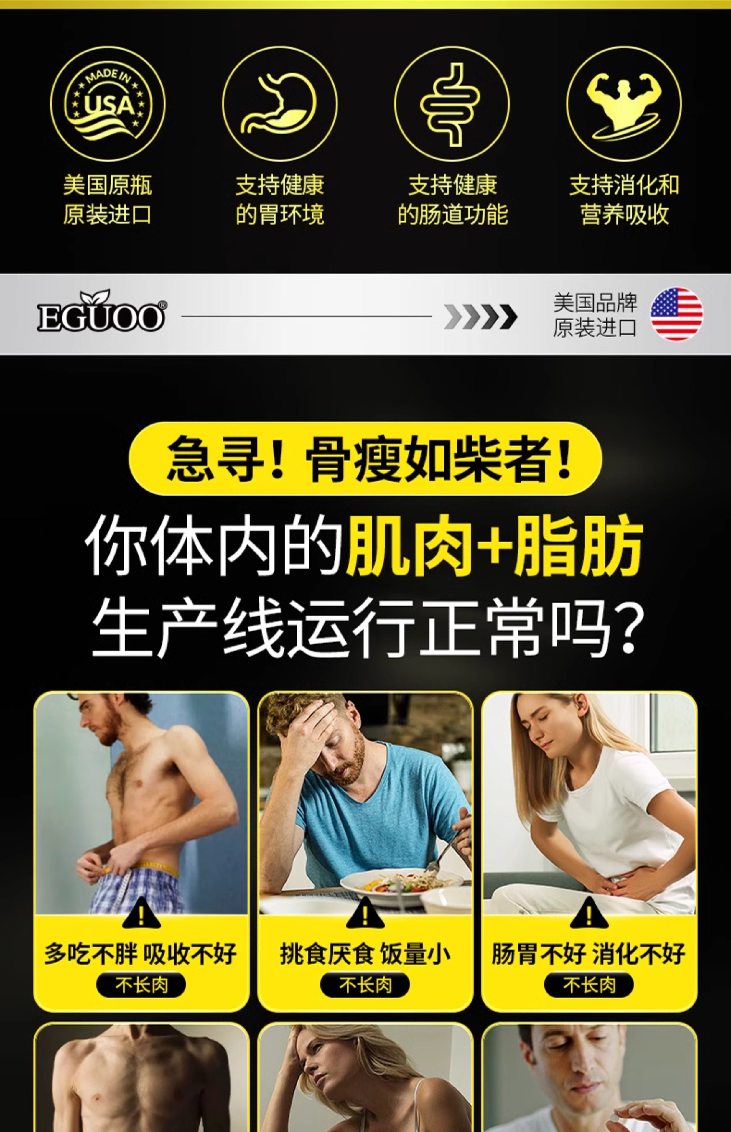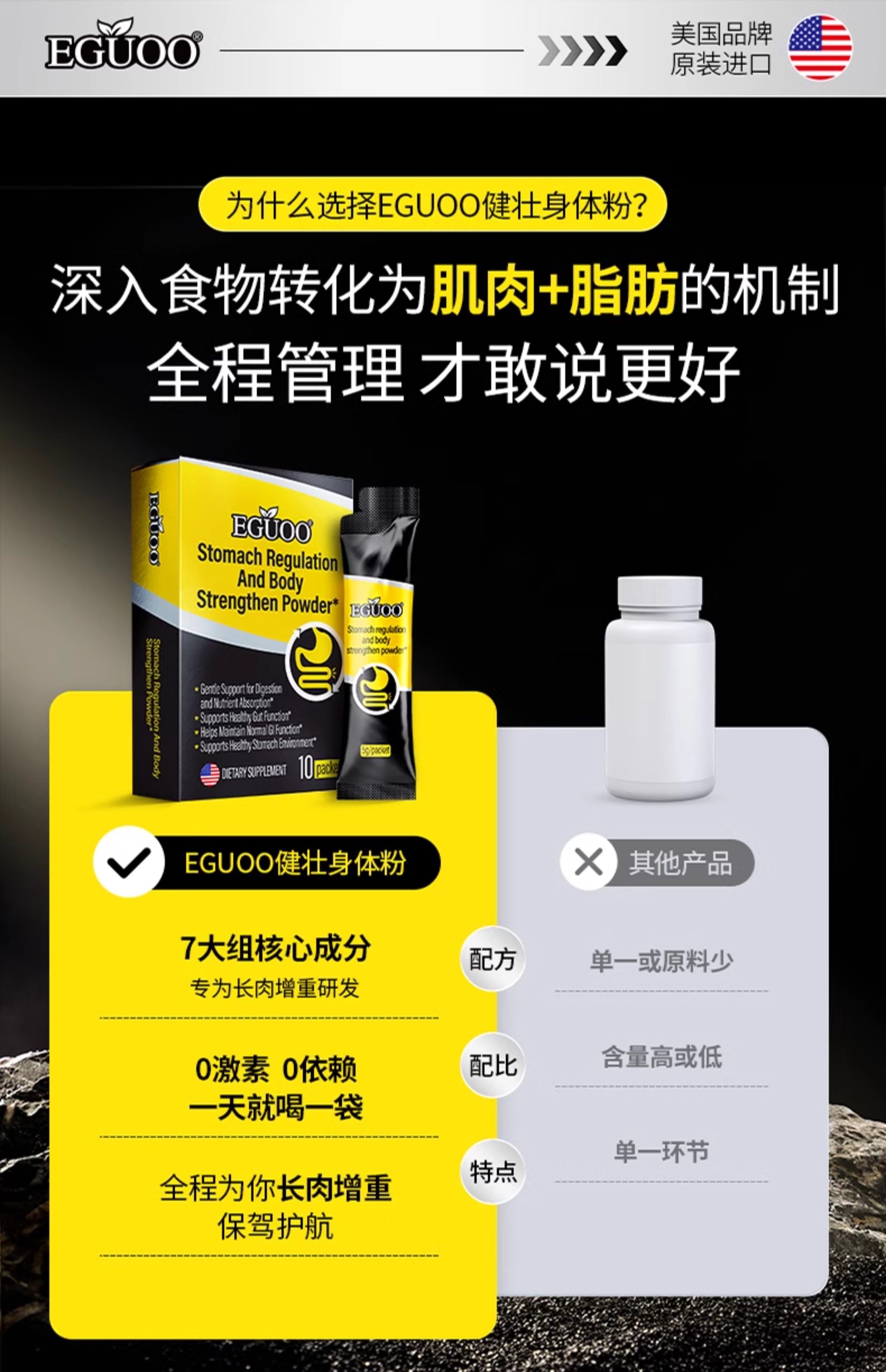 EGUOO美国进口调理肠胃强壮身体粉益生元肠胃肠道增加肌肉变壮实b