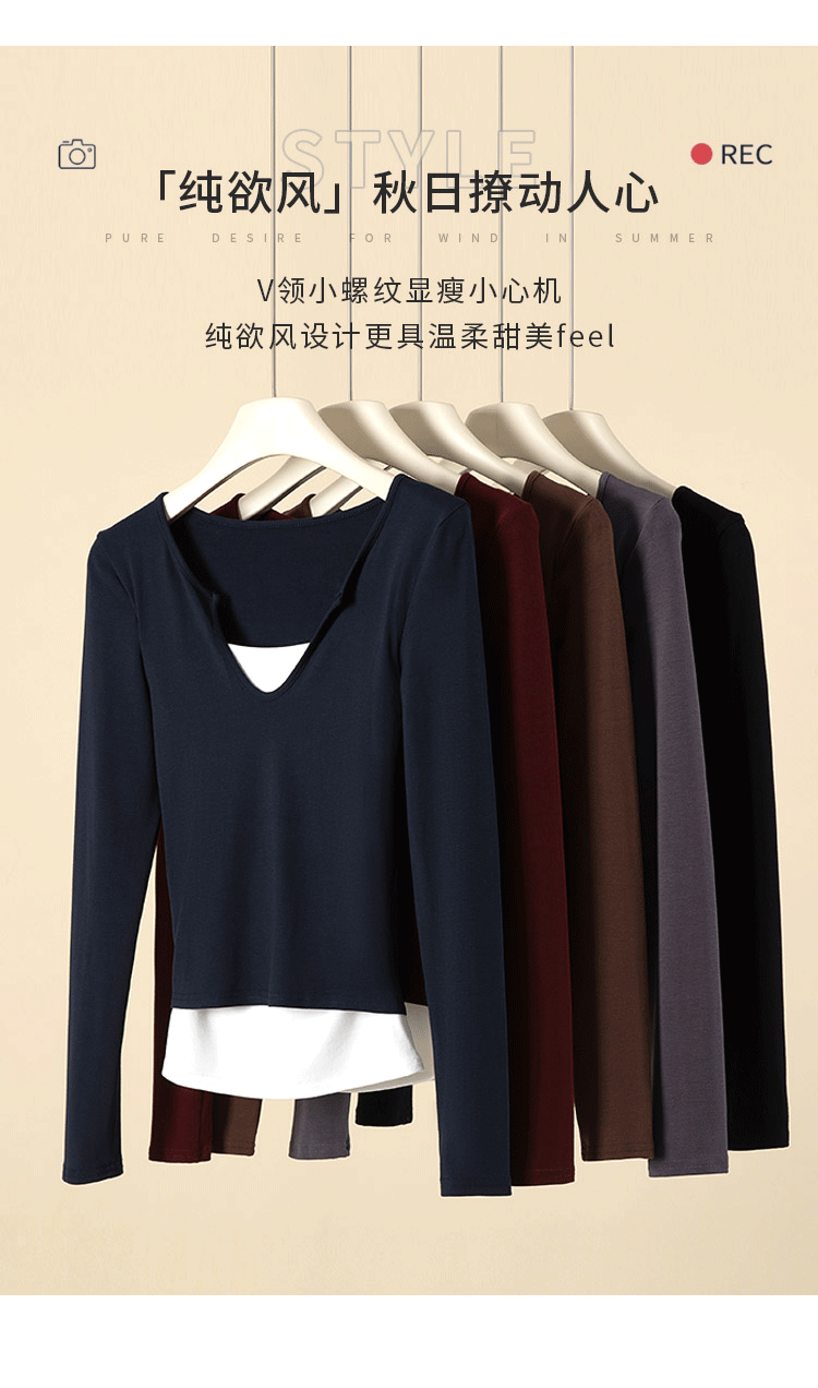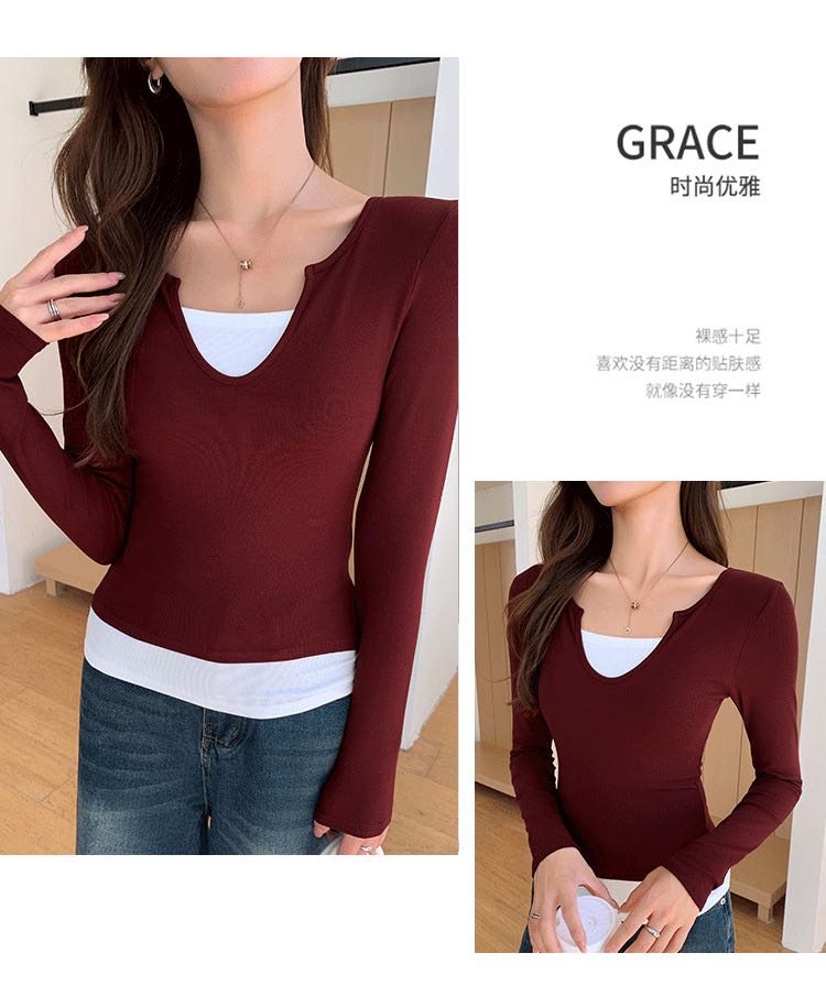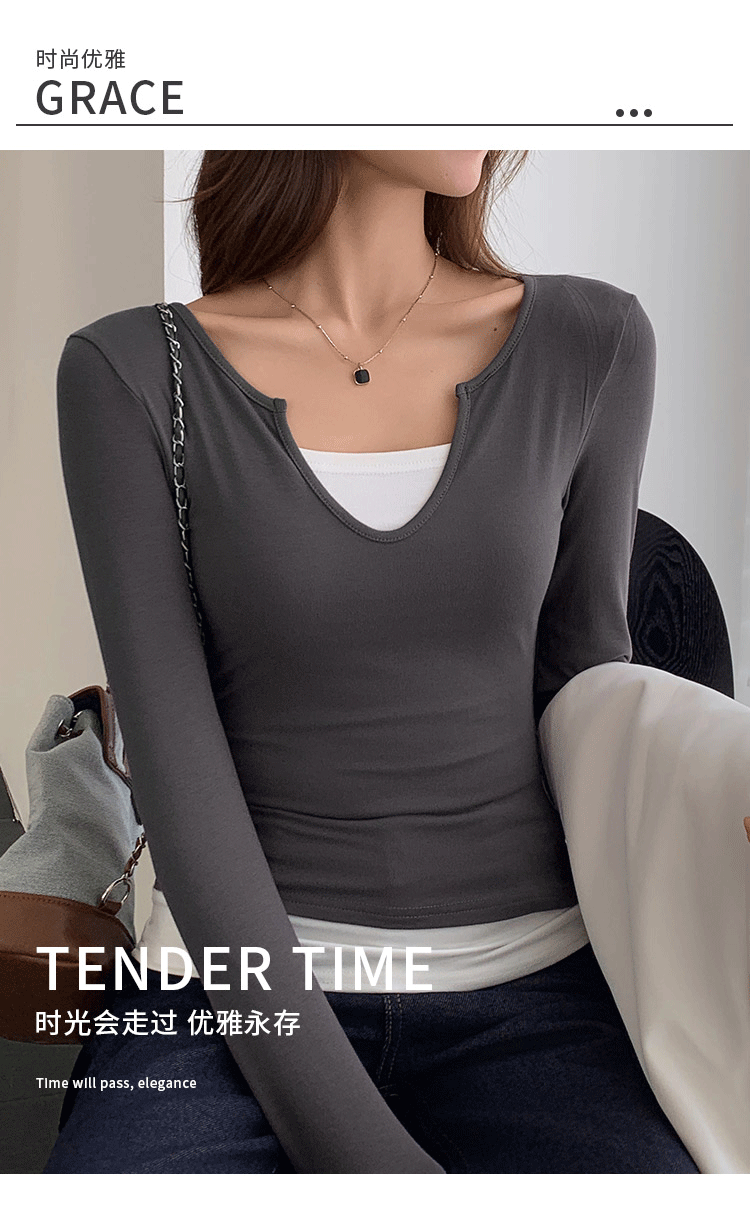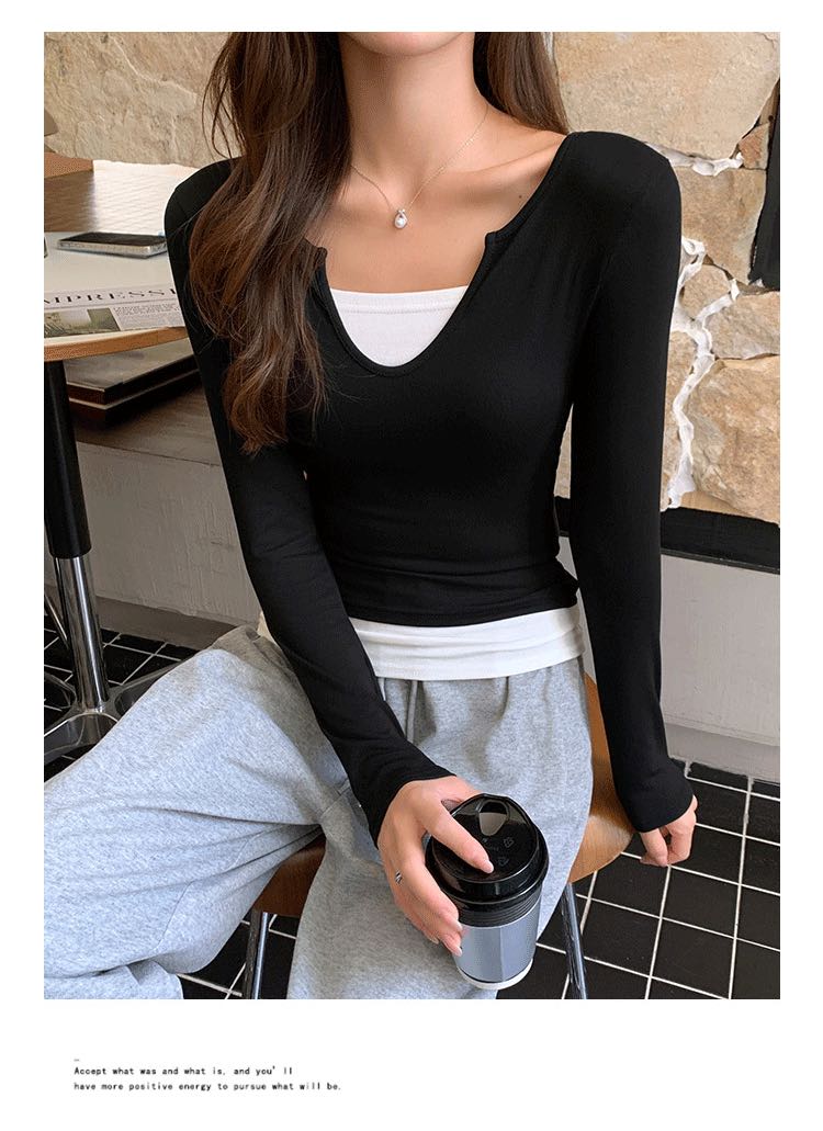 智小姐设计感假两件长袖T恤 商品图0