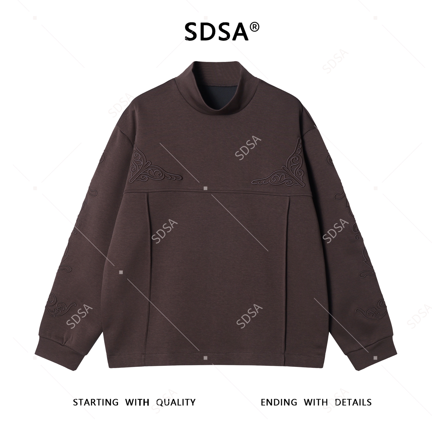 SDSA男士秋冬新款痞帅男装韩版传说刺绣褶皱立领卫衣时尚宽松百搭