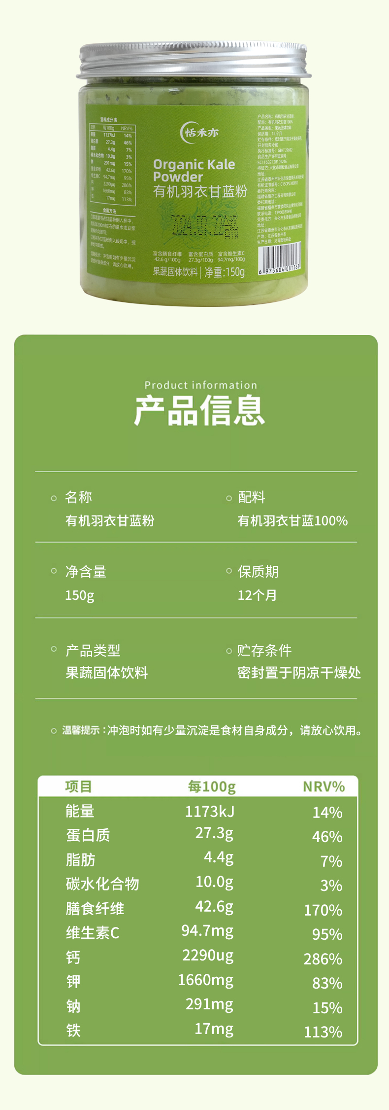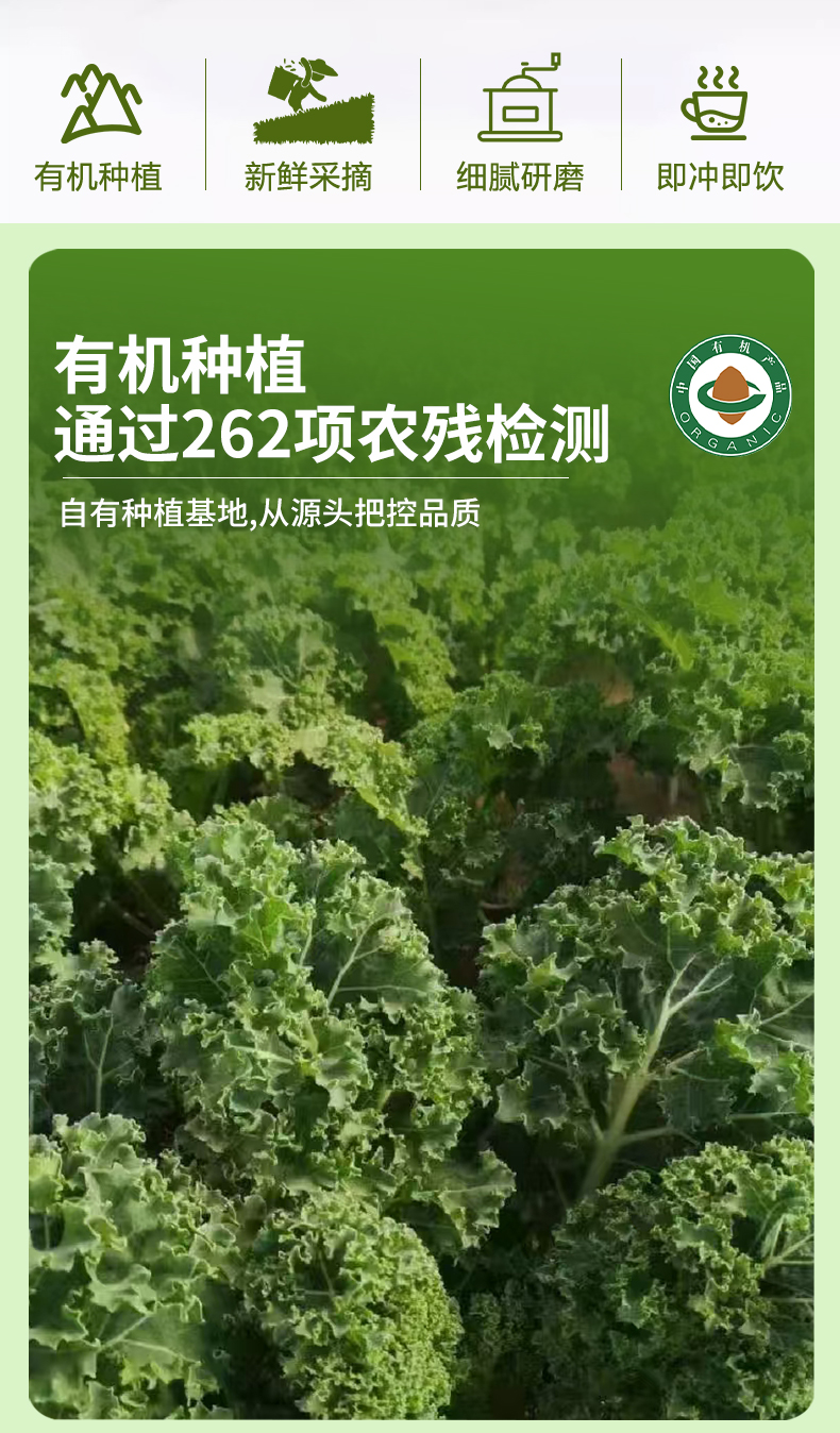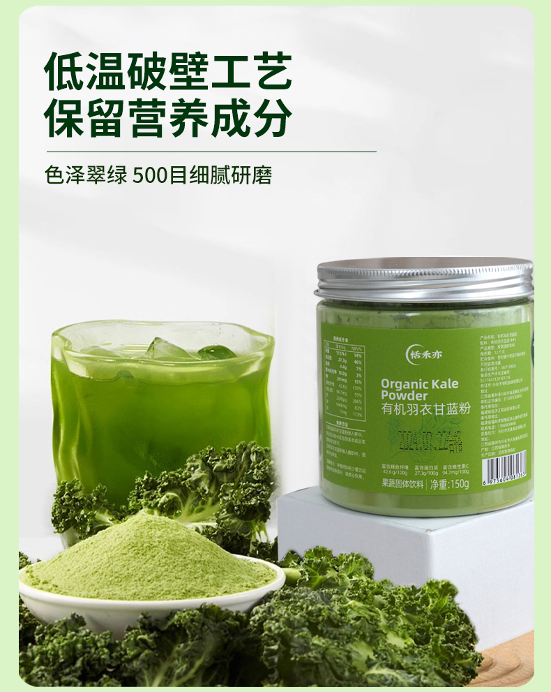 恬禾亦 有机羽衣甘蓝粉 150g 植物萃取 膳食纤维蔬菜粉小红罐小绿罐