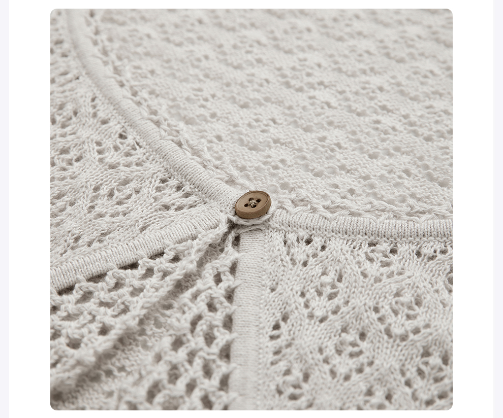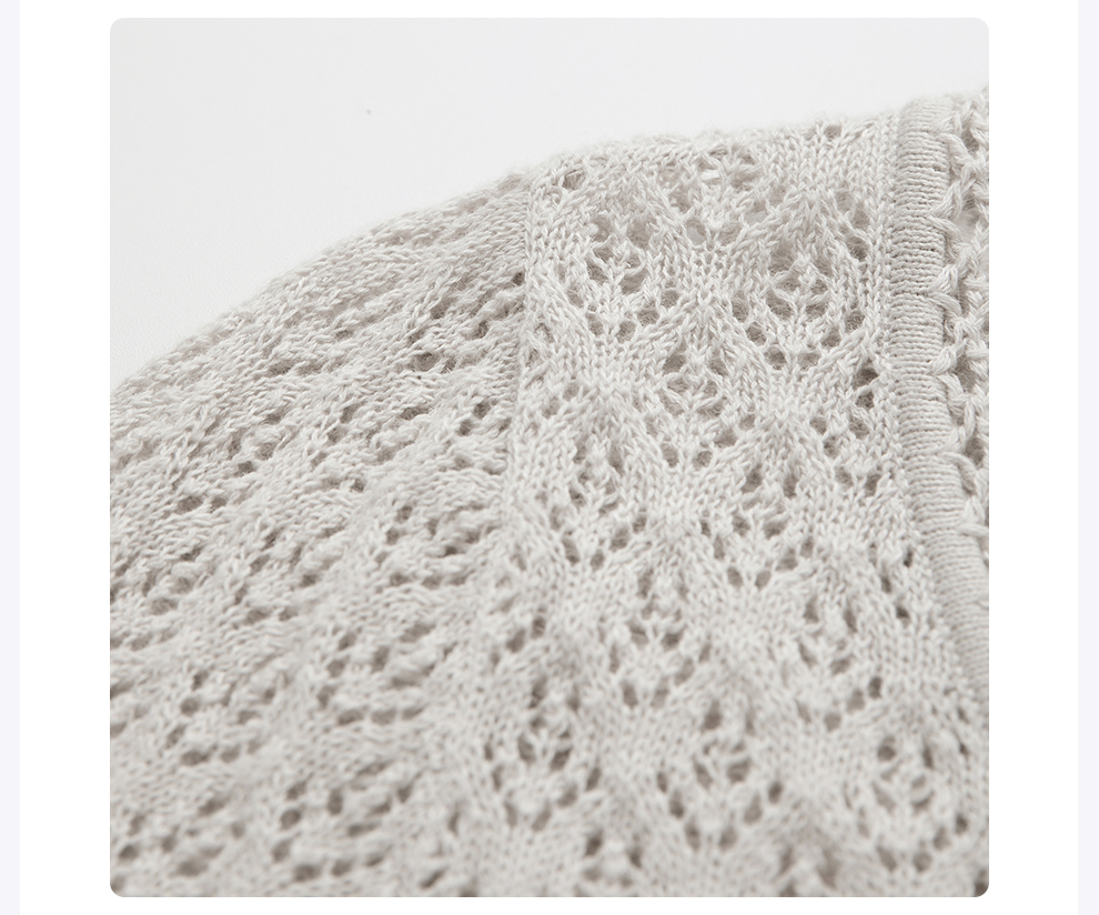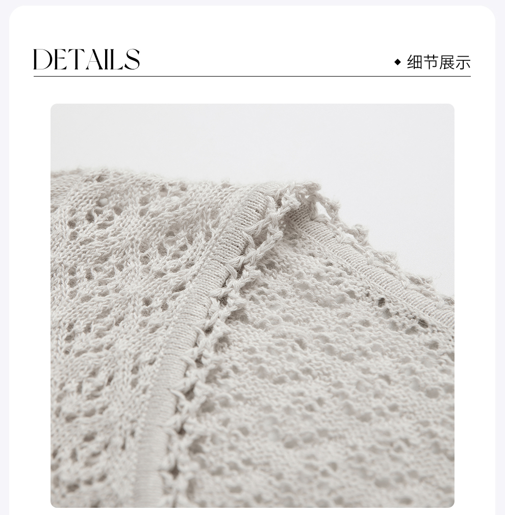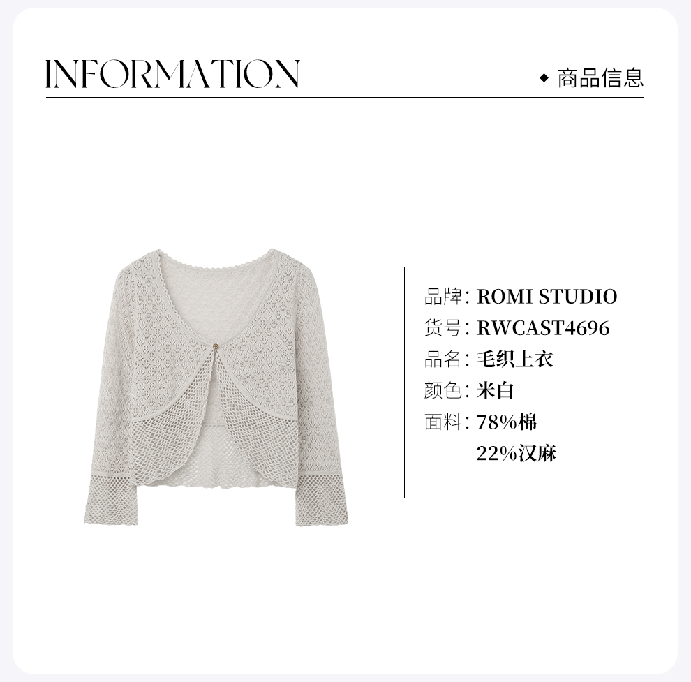 ROMI STUDIO"清新复古"汉麻手工钩织镂空V领开襟毛衫 RWCAST4696