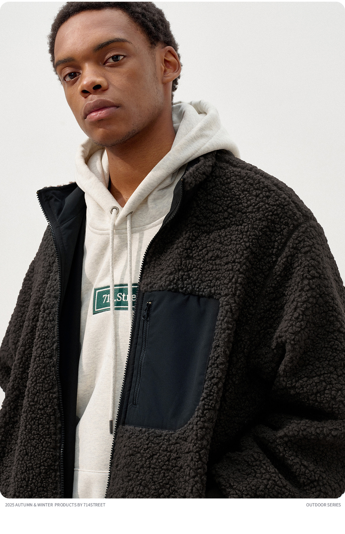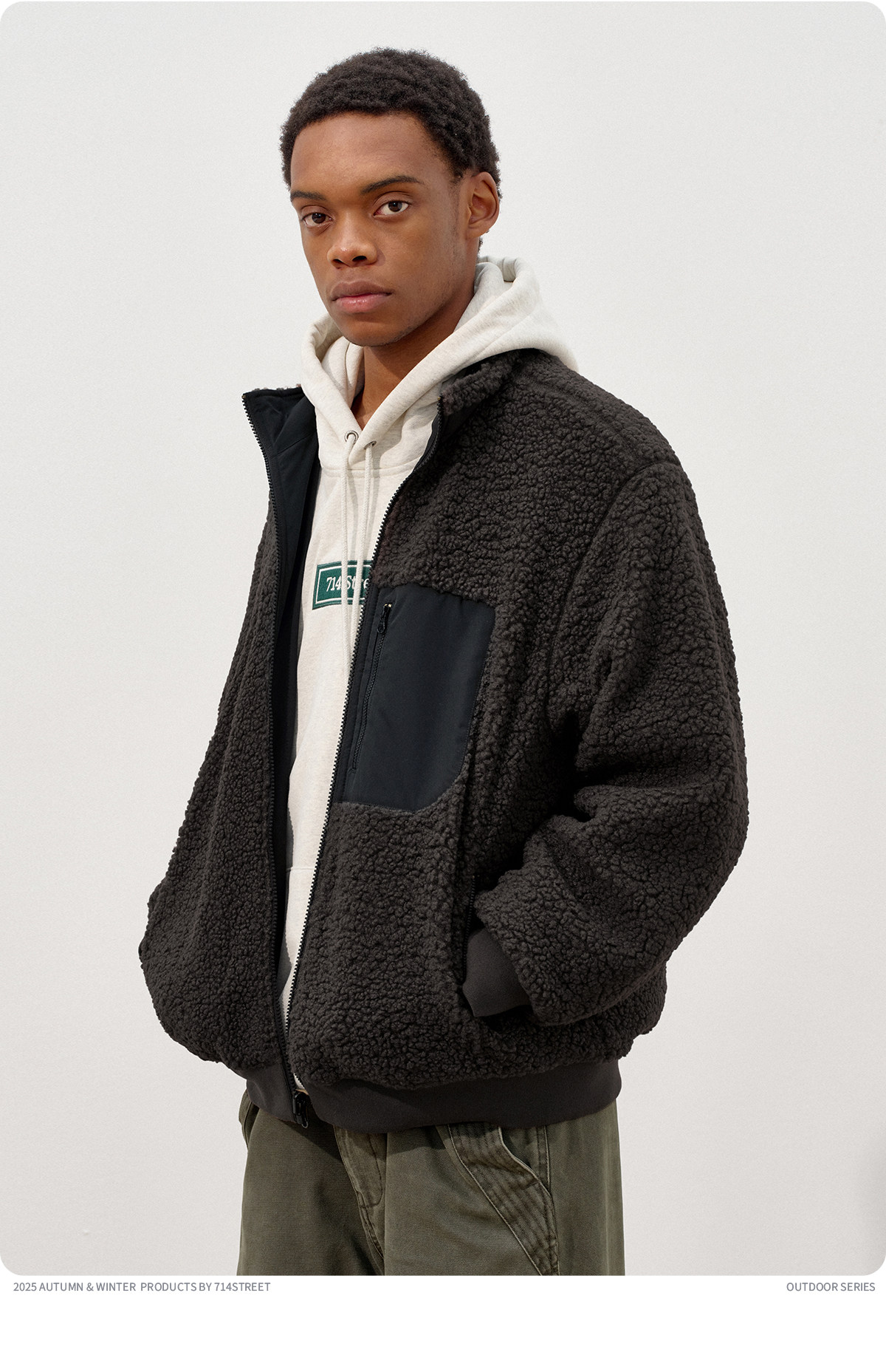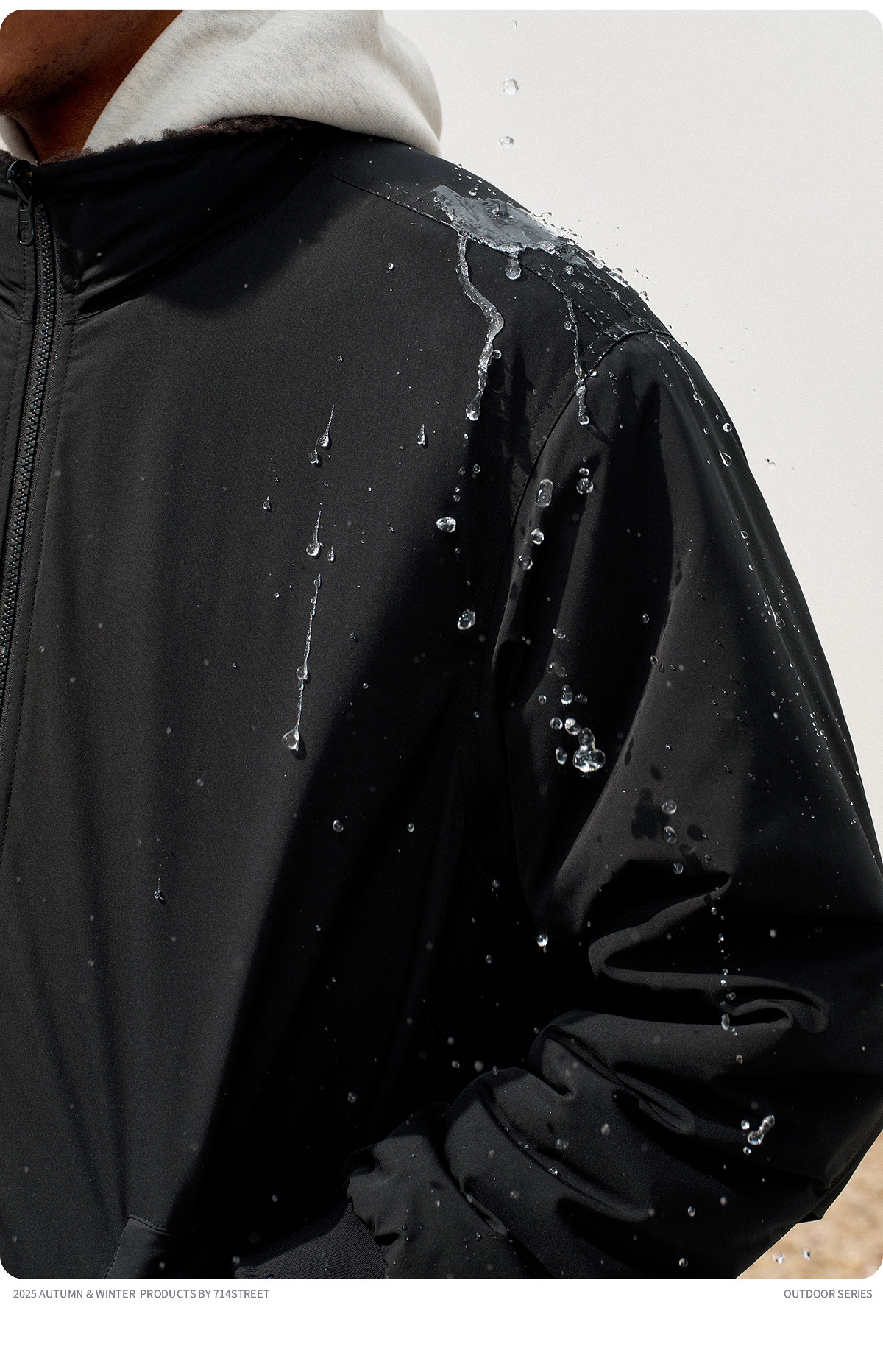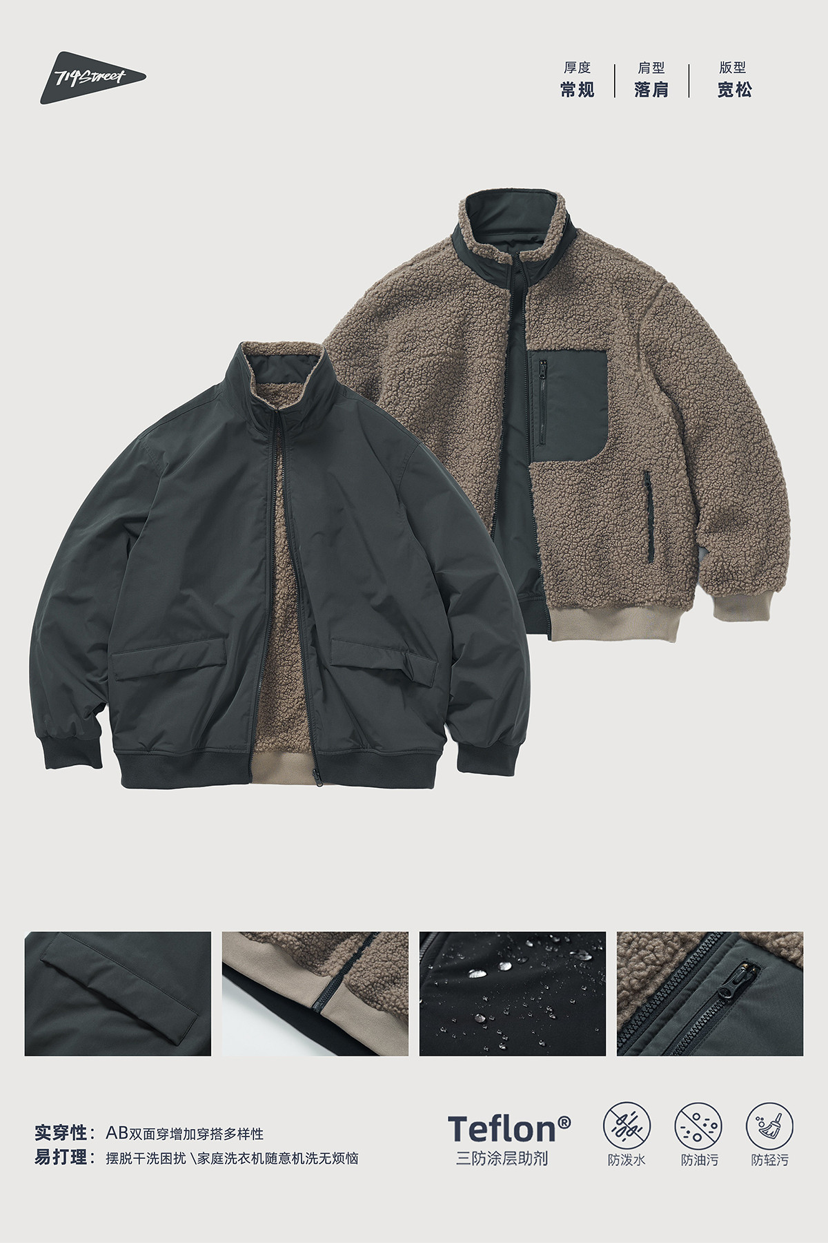 714street【双面穿】户外防水工装夹克2025秋冬宽松羊羔绒外套男