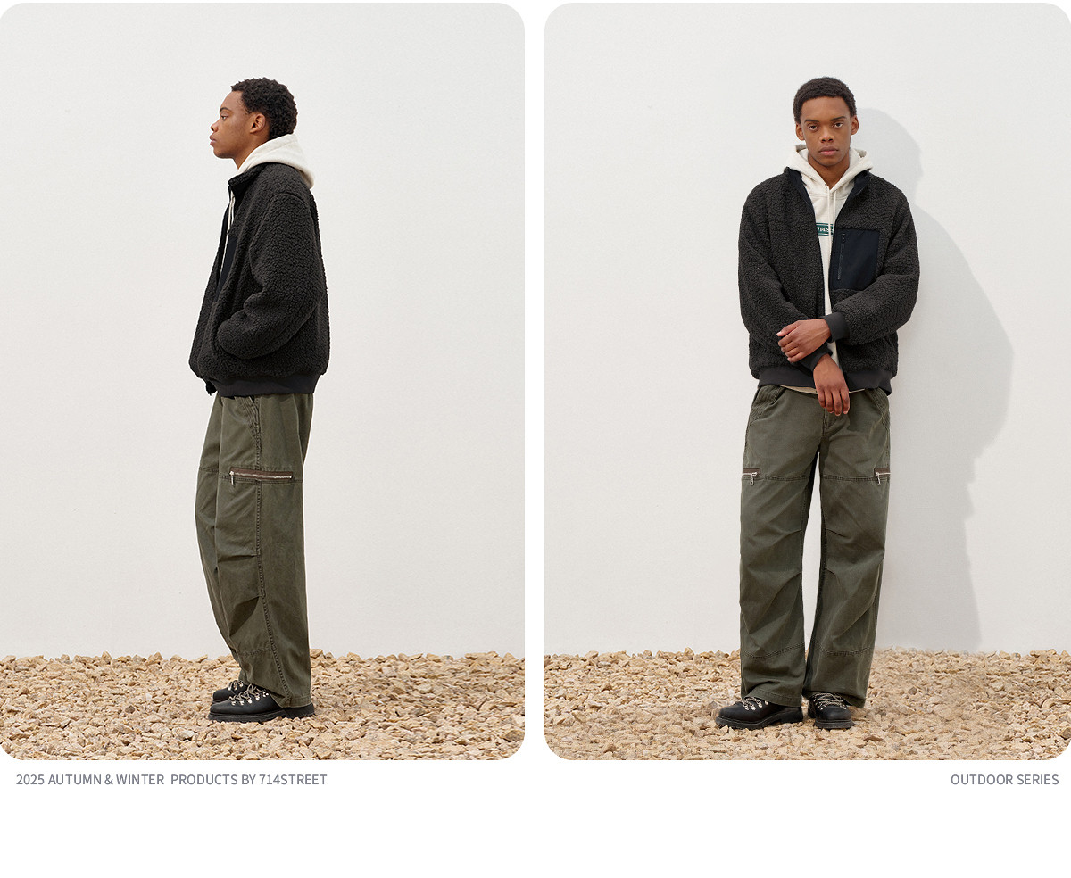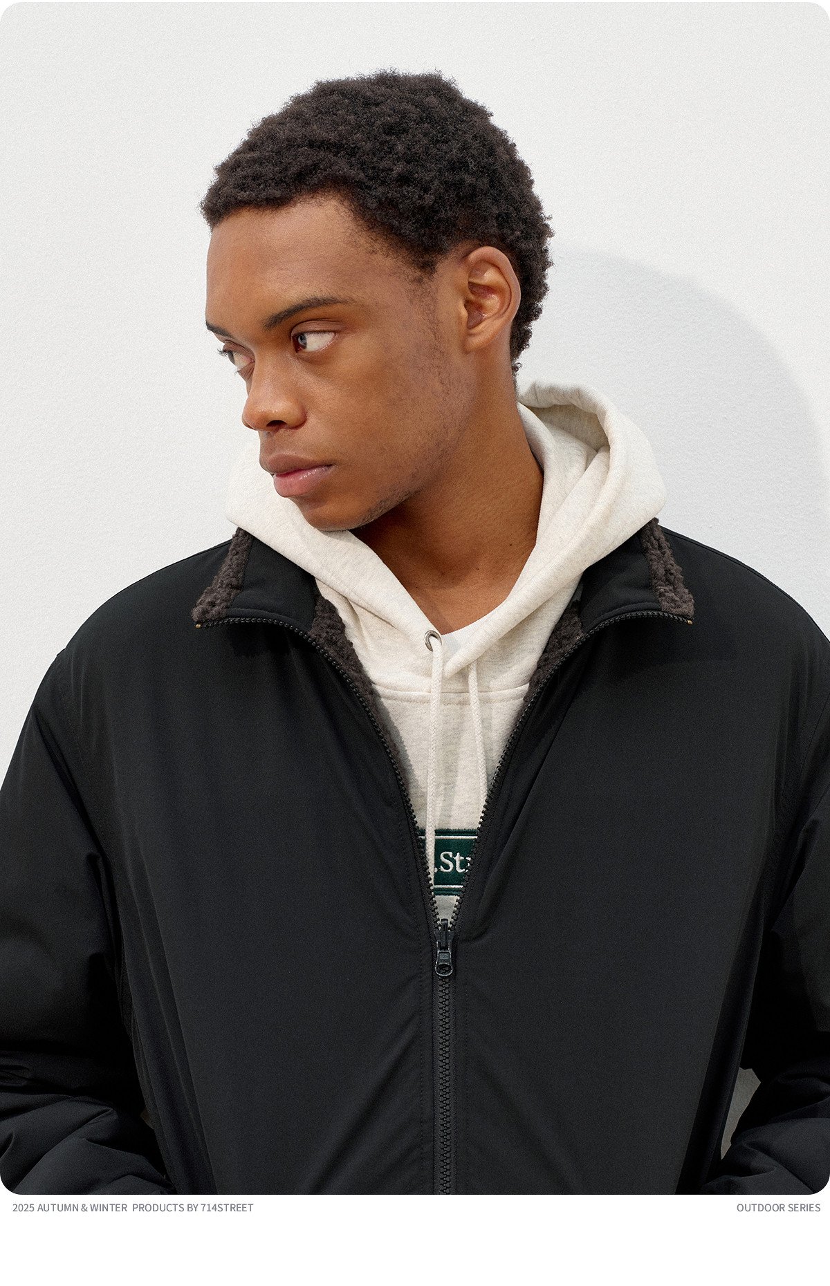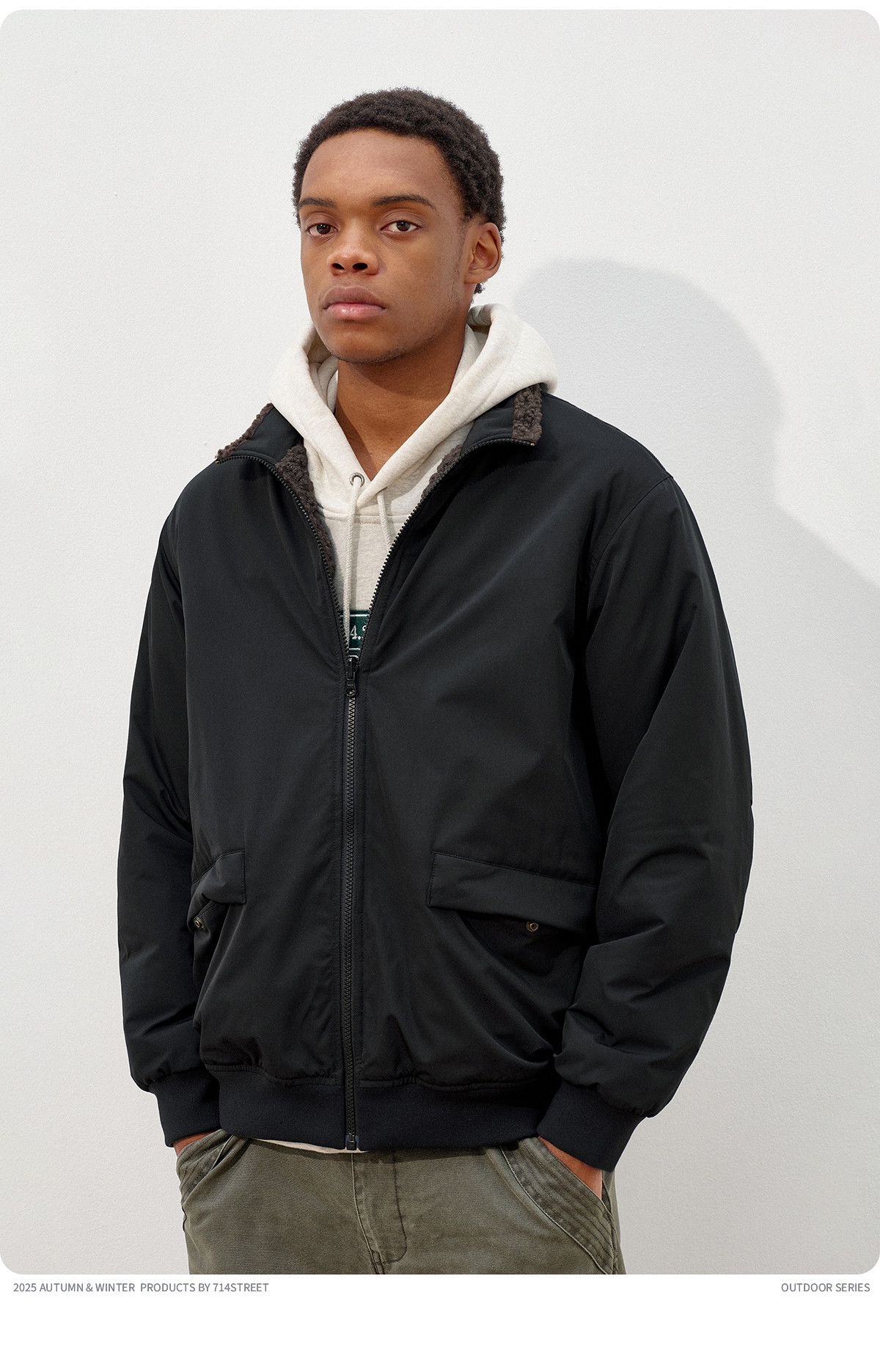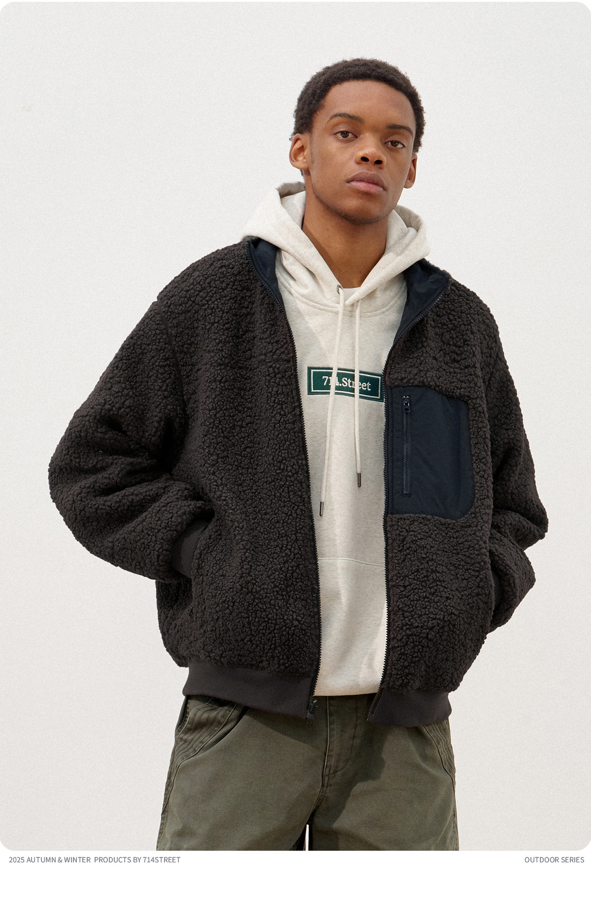 714street【双面穿】户外防水工装夹克2025秋冬宽松羊羔绒外套男