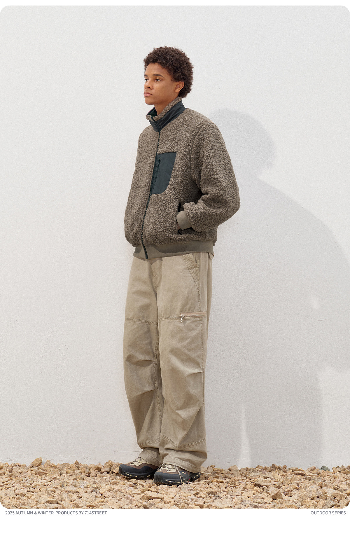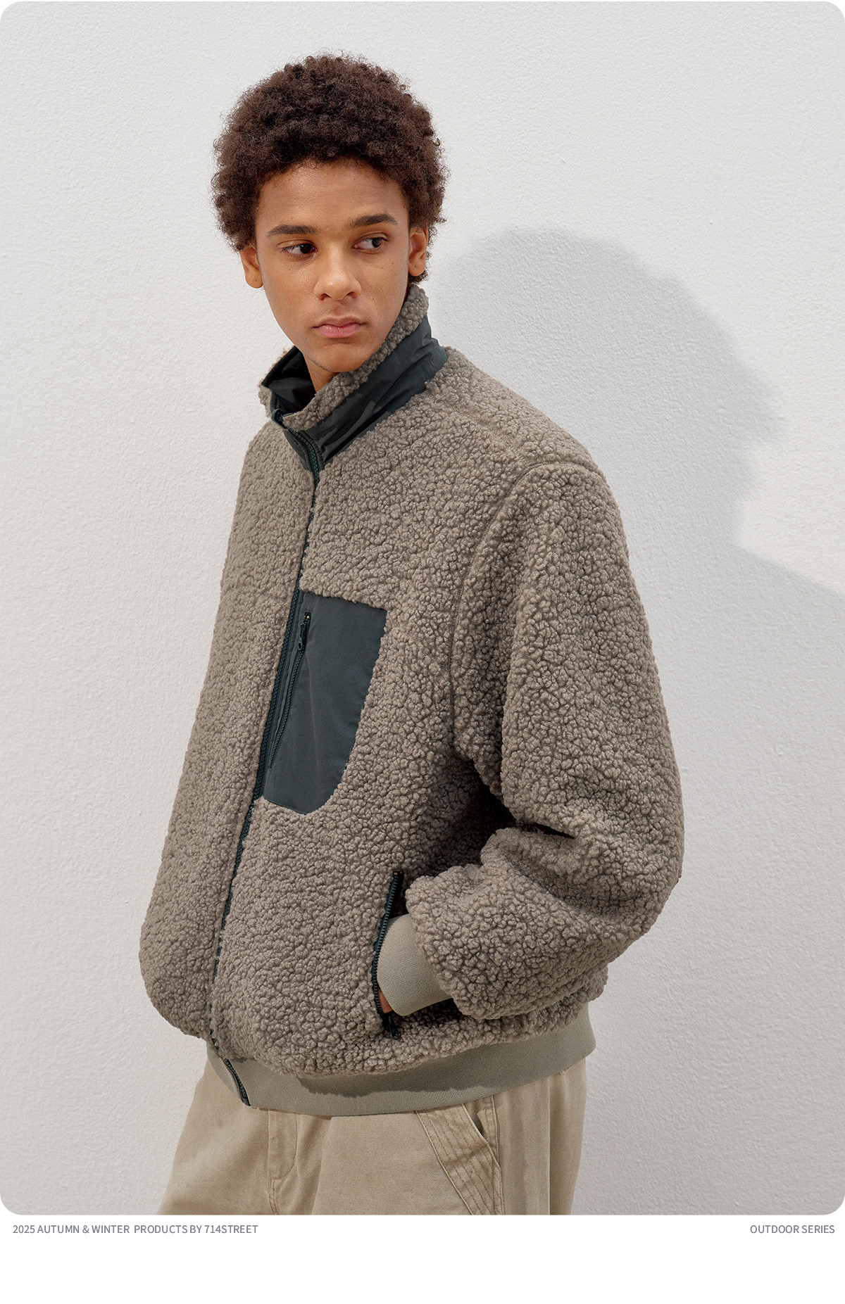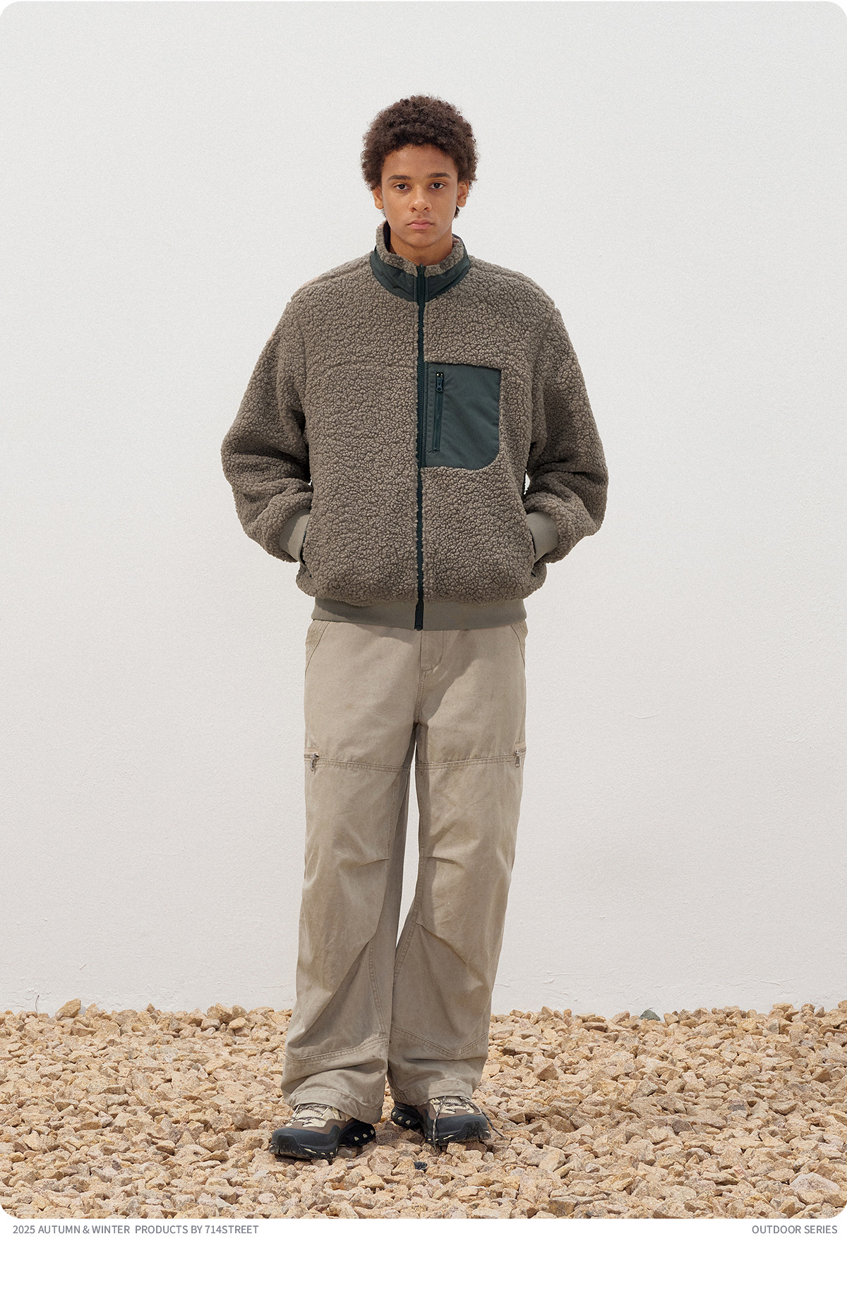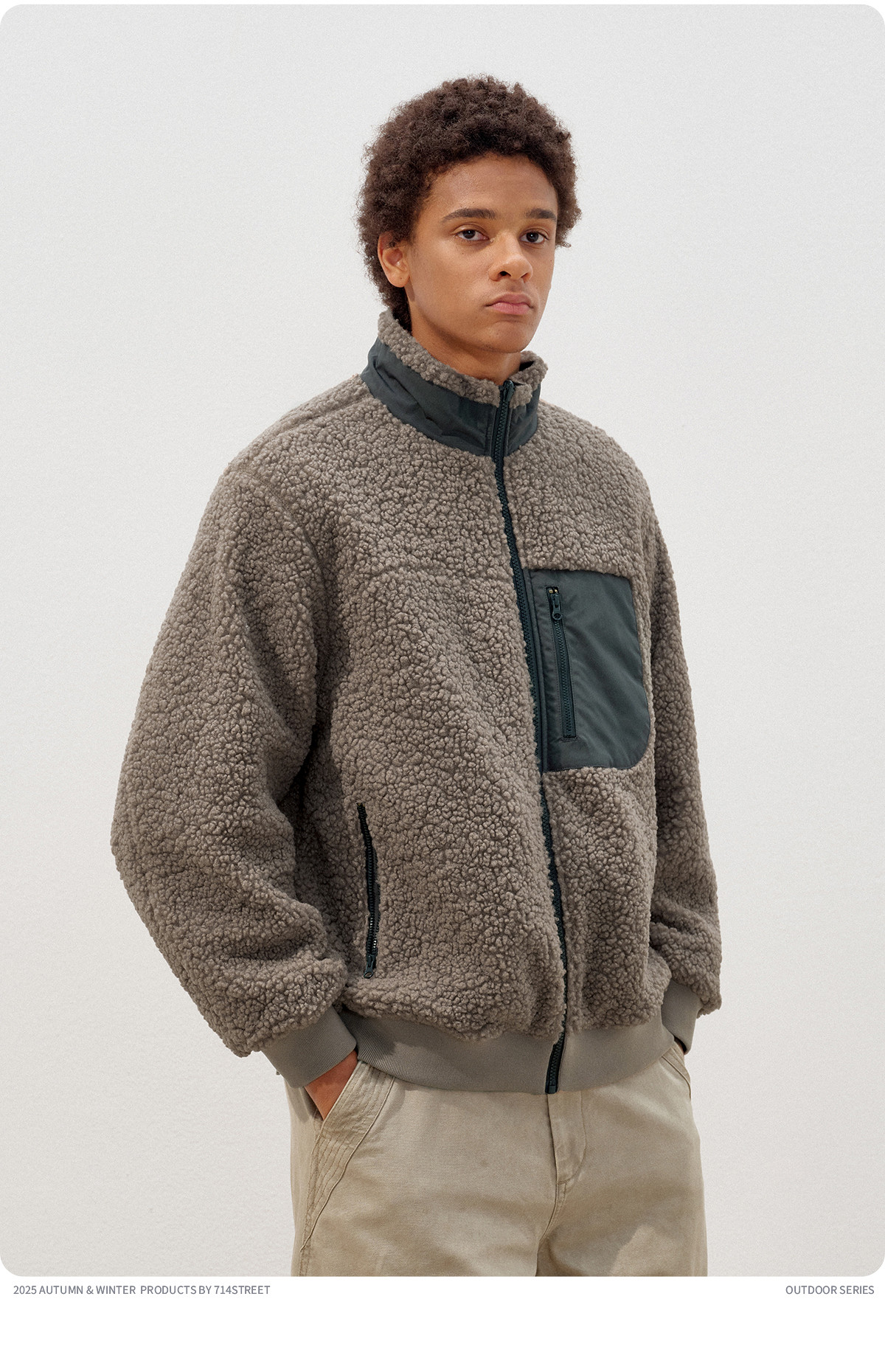 714street【双面穿】户外防水工装夹克2025秋冬宽松羊羔绒外套男