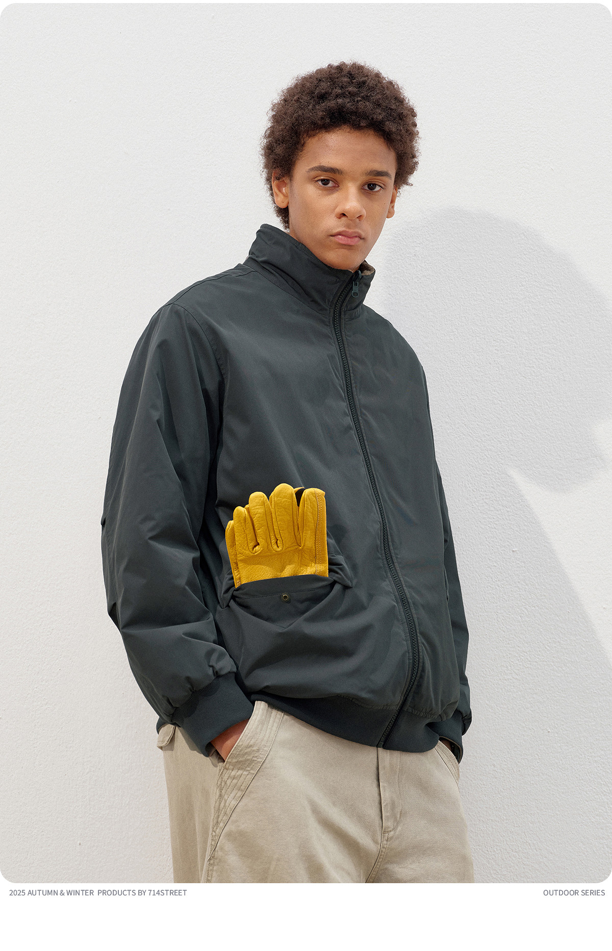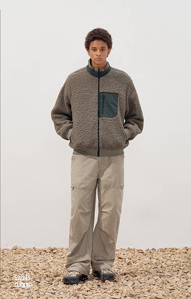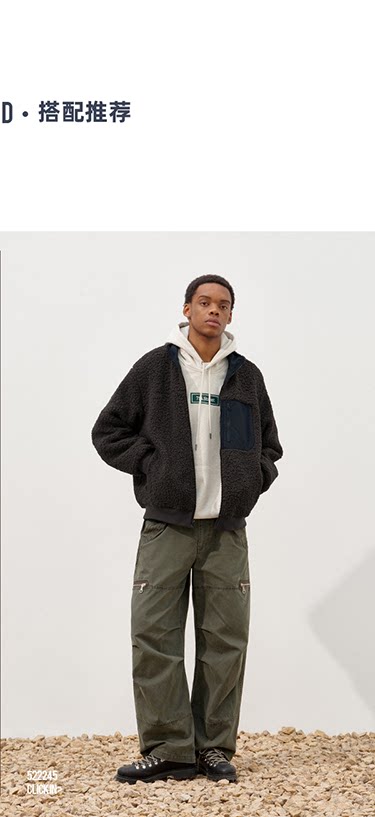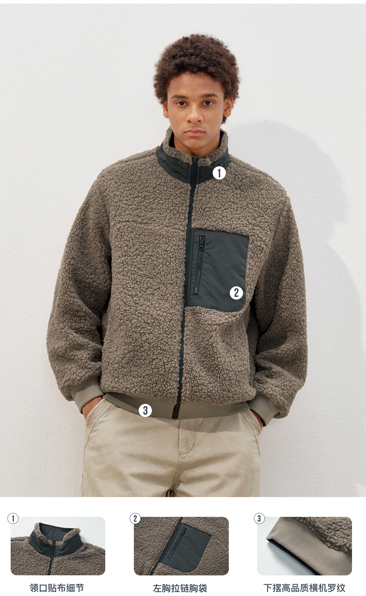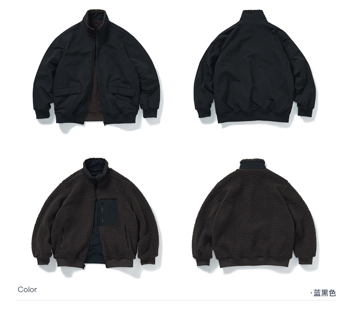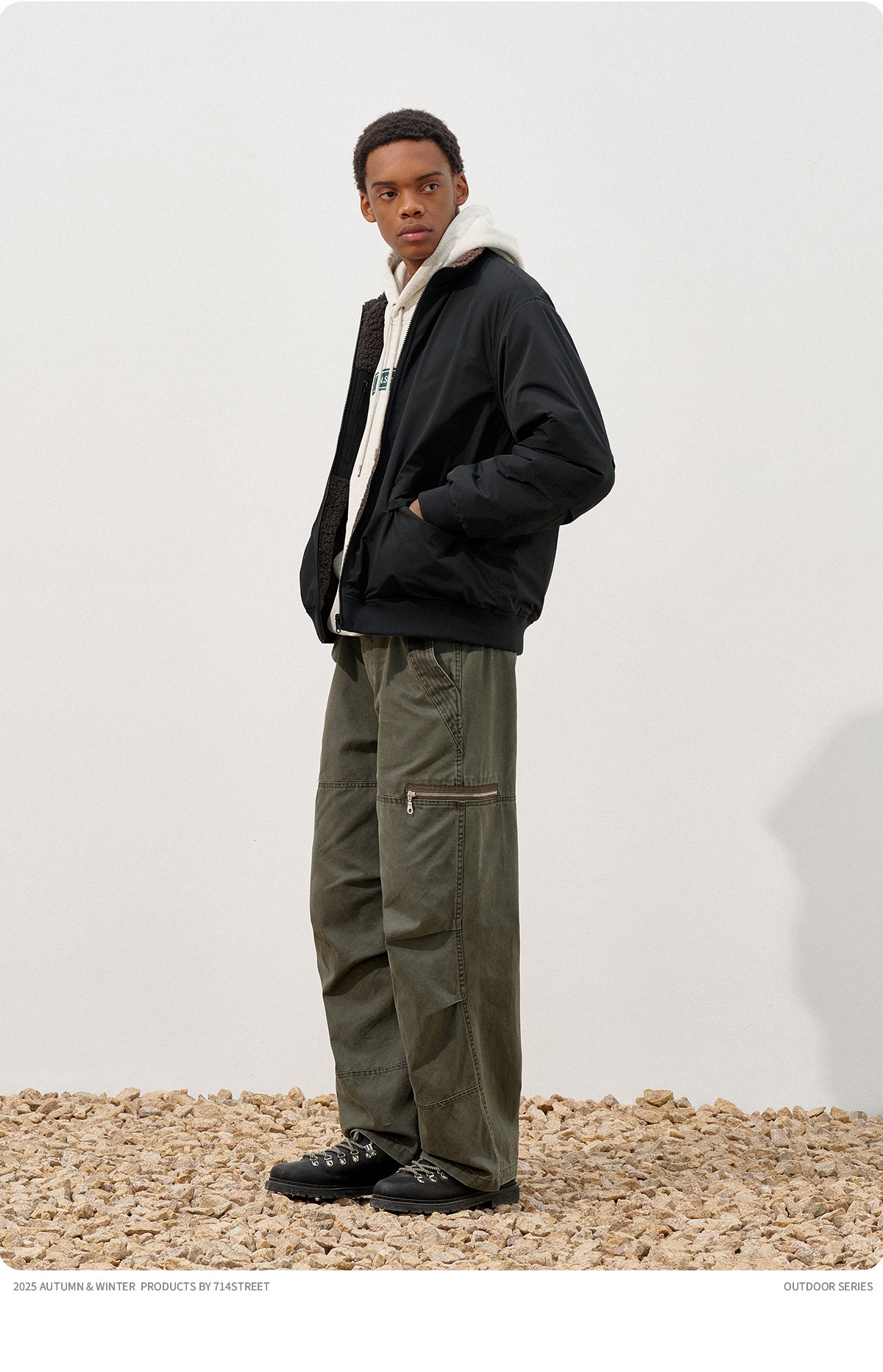 714street【双面穿】户外防水工装夹克2025秋冬宽松羊羔绒外套男