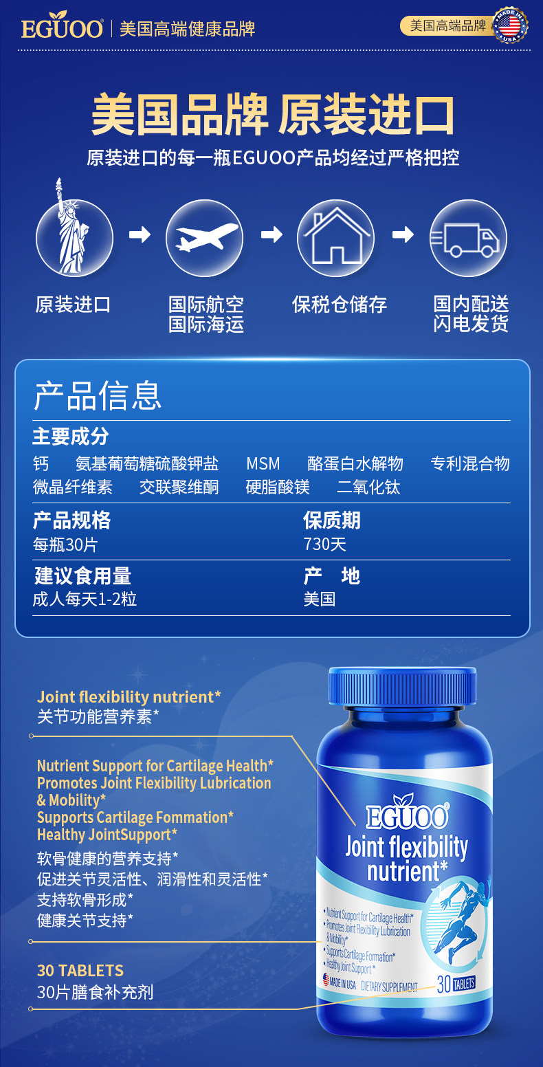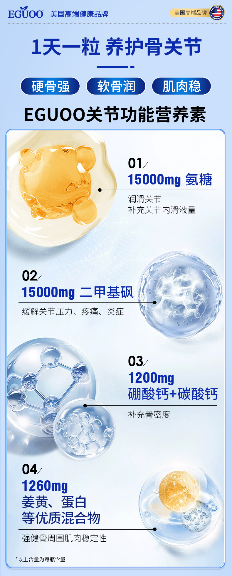 美国进口EGUOO氨糖软骨素钙片维骨力关节膝盖中老年日常养护缓痛l